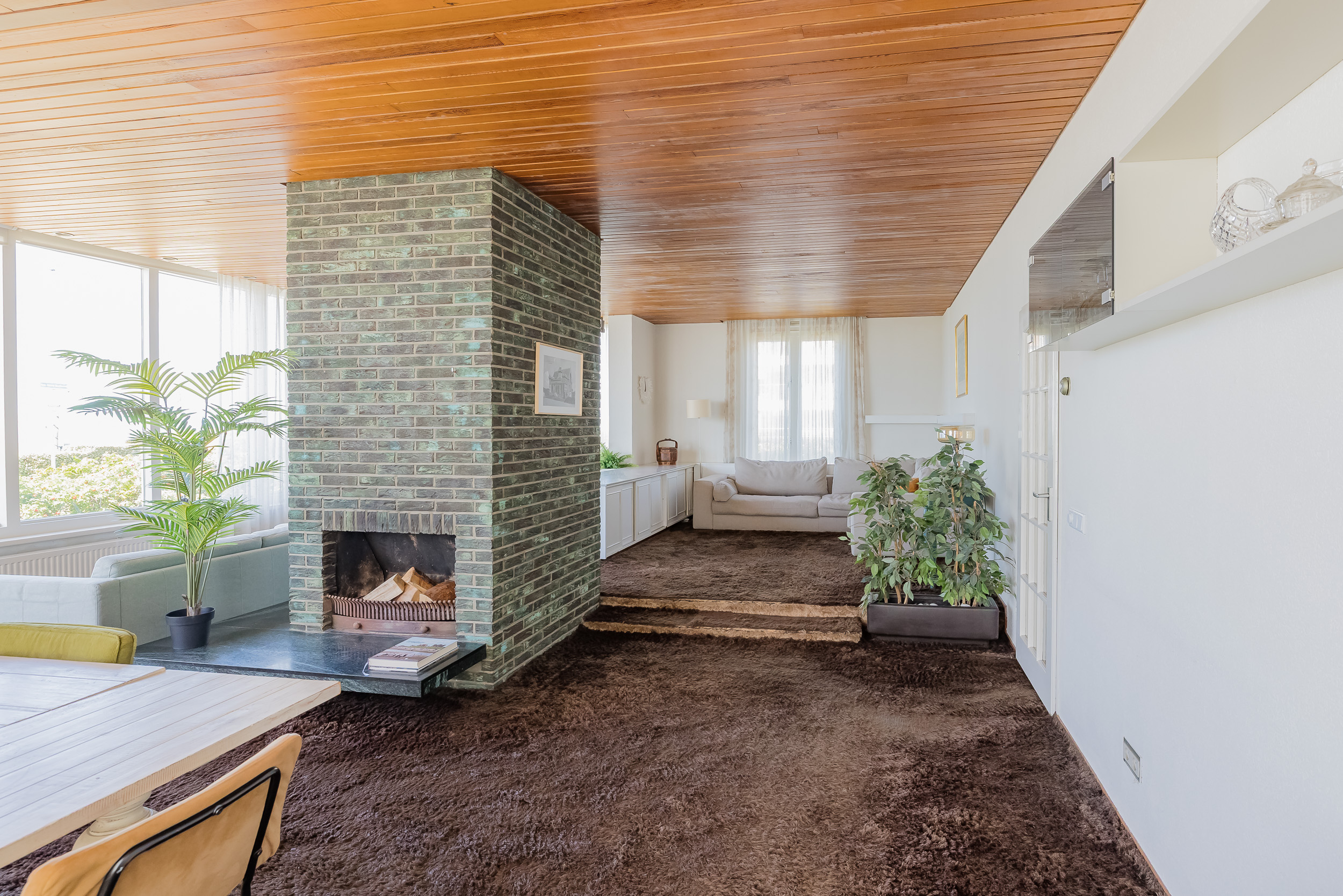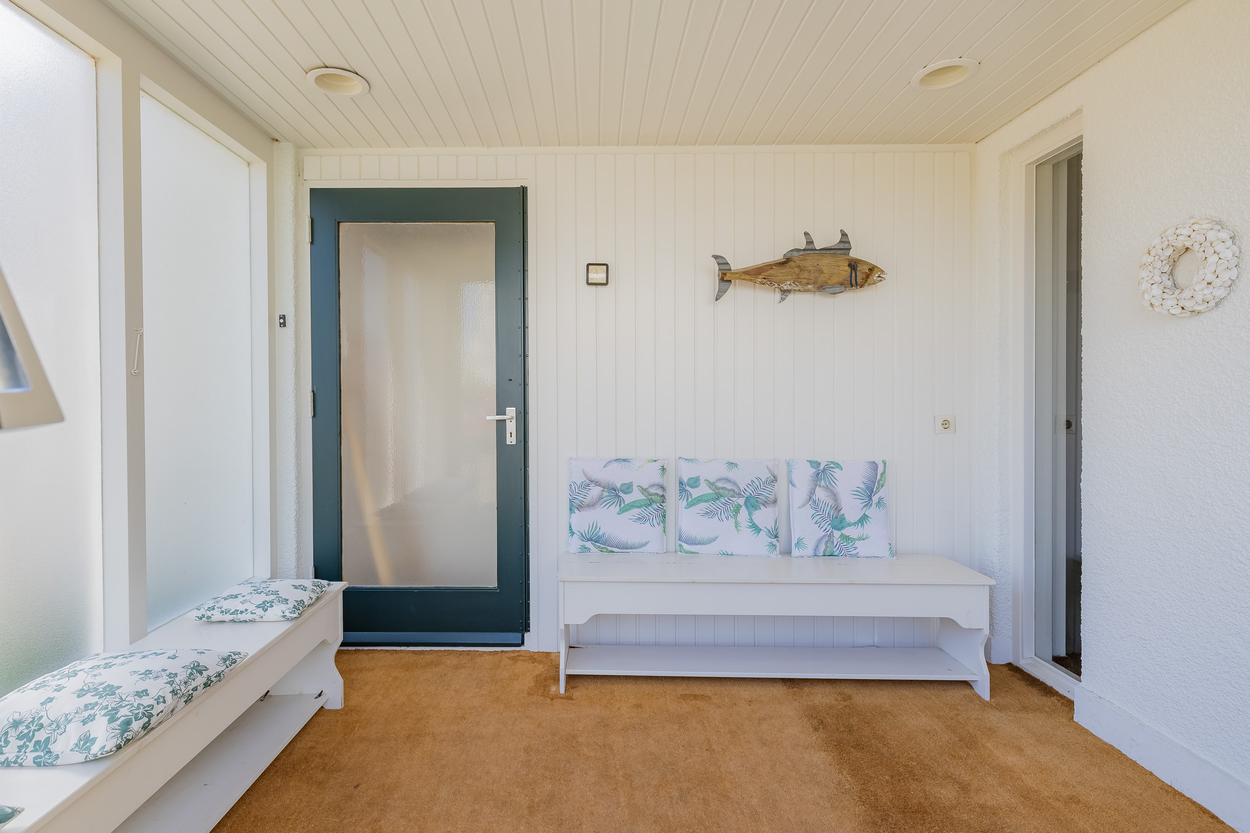 The kitchen, equipped with built-in appliances, is practically furnished with plenty of cupboard space. Furthermore, on the ground floor, you will find a bright second living room with a gas fireplace, ideal for relaxation or as a spacious study. In addition, the ground floor has a comfortable bedroom with a built-in wardrobe. The spacious, sunny south-facing terrace is accessible from both living rooms. The bathroom in the hall is ideal for rinsing off the sand after a day at the beach.
