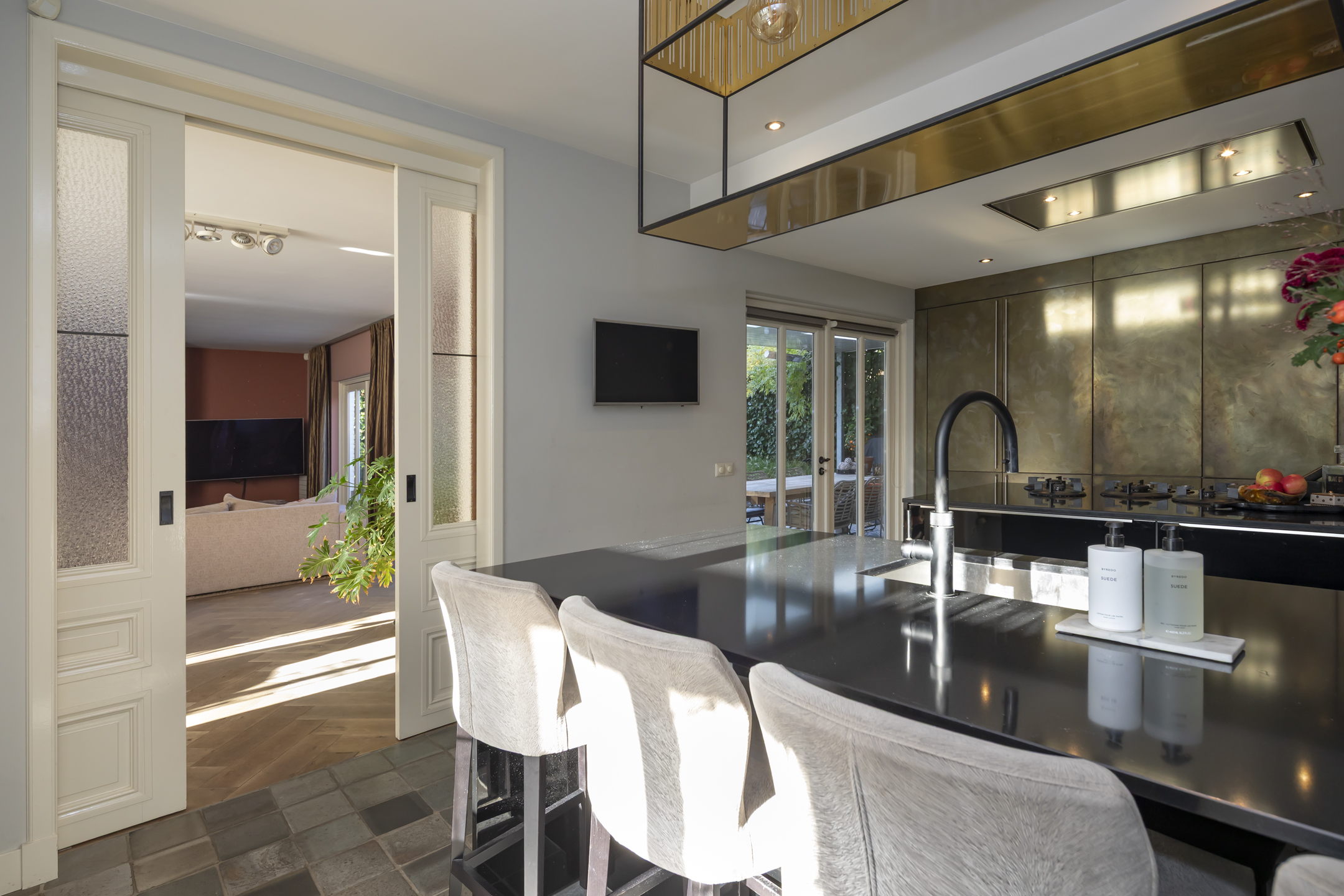 Outside, two distinct gardens allow for year-round enjoyment and complete privacy, with mature planting and stone paving. The property includes off street parking for multiple vehicles behind secure gates, and the garage is accessible from both the front and the rear. Extensive insulation and modern heating underline comfort. The location provides immediate access to natural reserves, cultural destinations, and the vibrant life of Oisterwijk, recognized for its rich amenities and green surroundings.