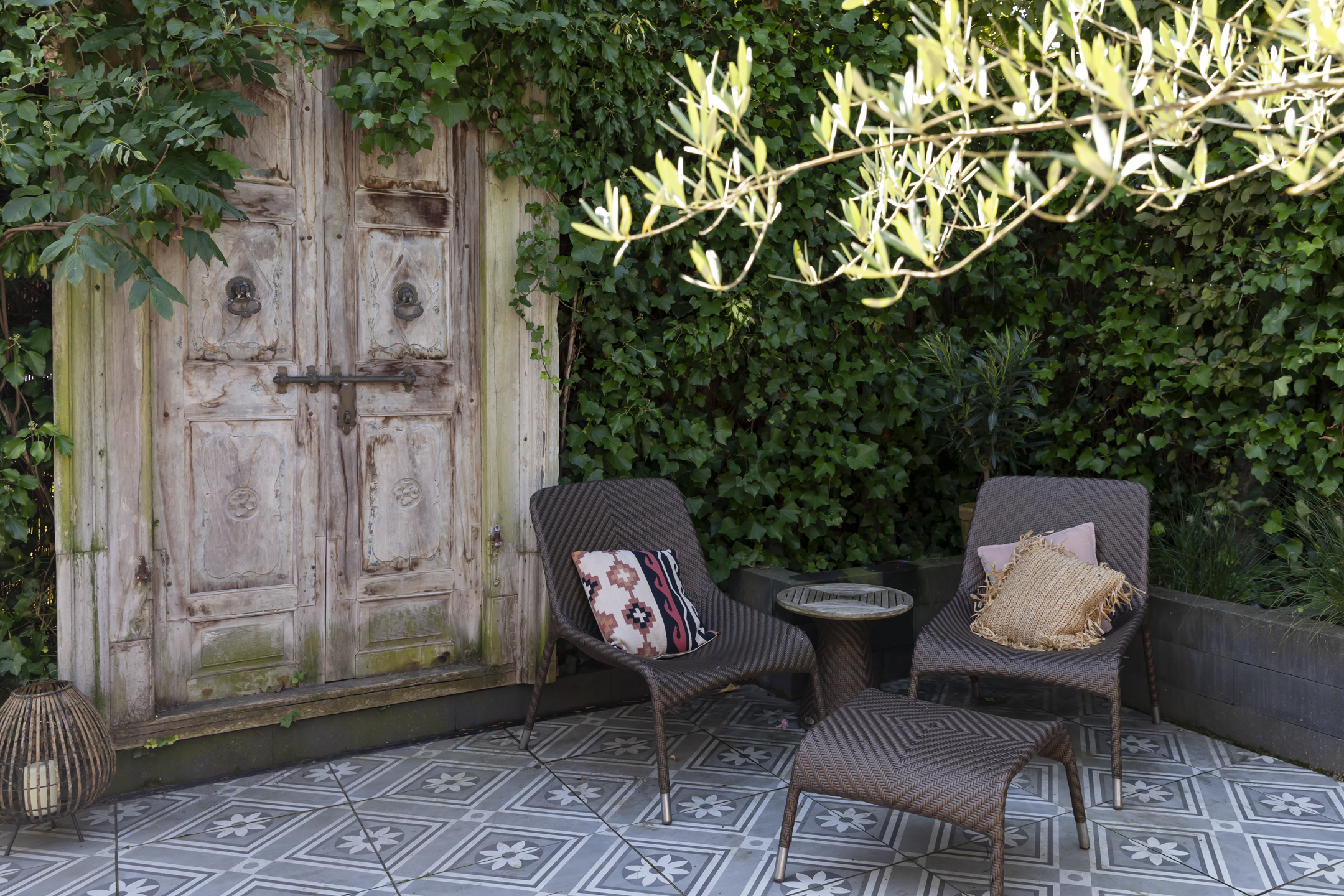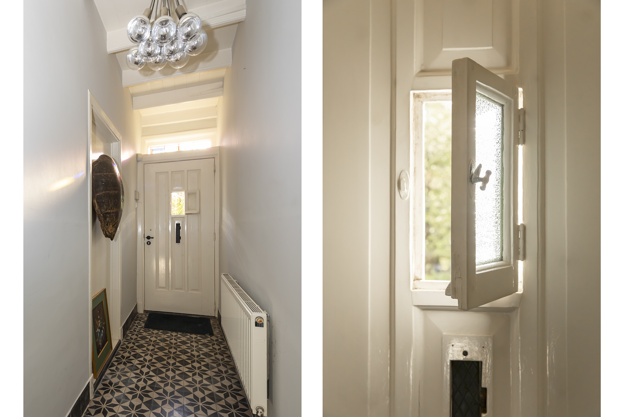 The residence showcases a refined entrance hall with high ceilings, authentic details, and a vibrant floor, setting a tone of understated luxury. The living room is defined by a rich ambiance and a classic fireplace, seamlessly connecting via French doors to a sheltered patio garden. Light flows through beautiful stained-glass en suite doors into the elegant dining room, while an additional multifunctional room offers flexibility for work or play, each with garden access. The contemporary kitchen is equipped with premium appliances, creating a space ideal for both culinary pursuits and informal gathering.