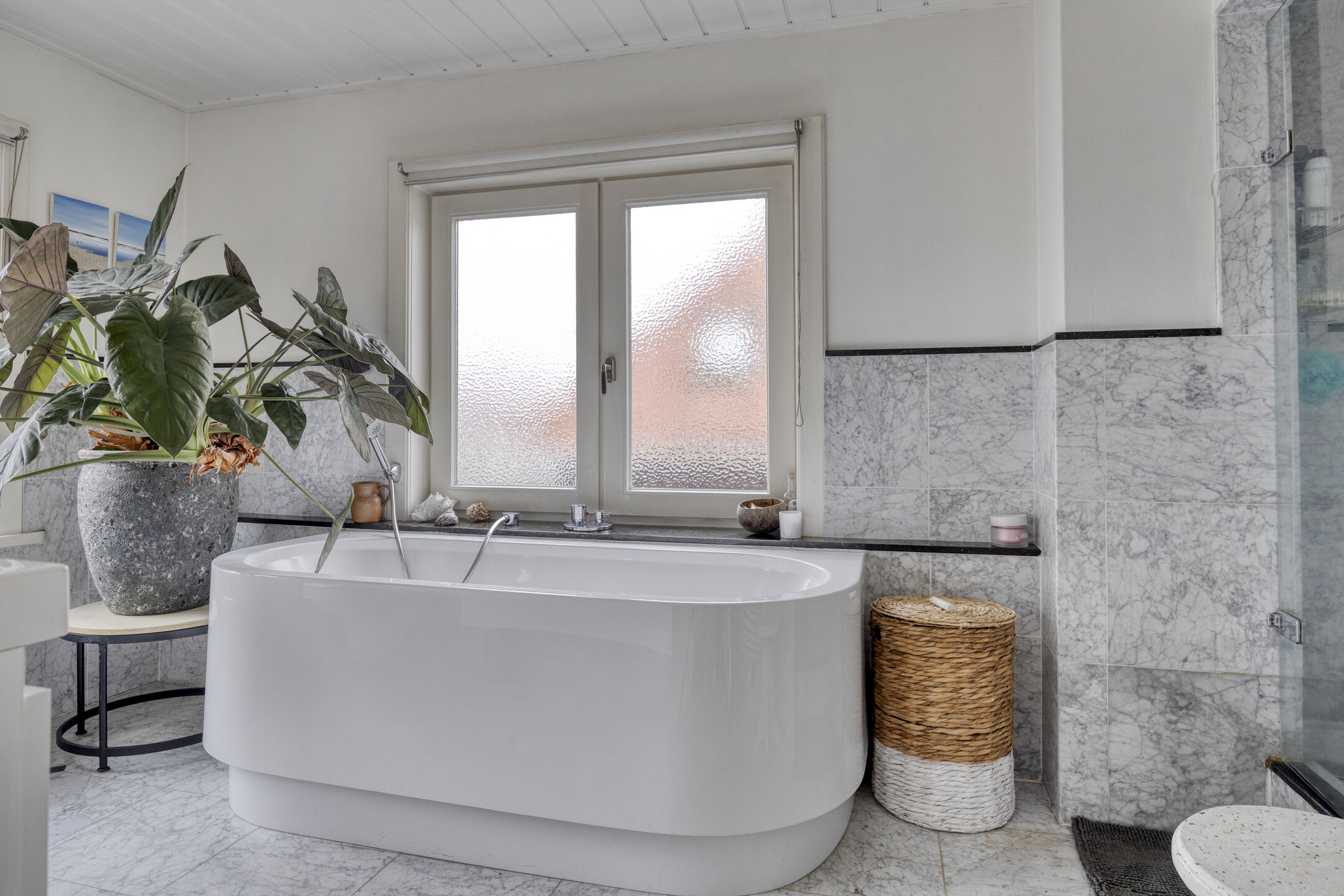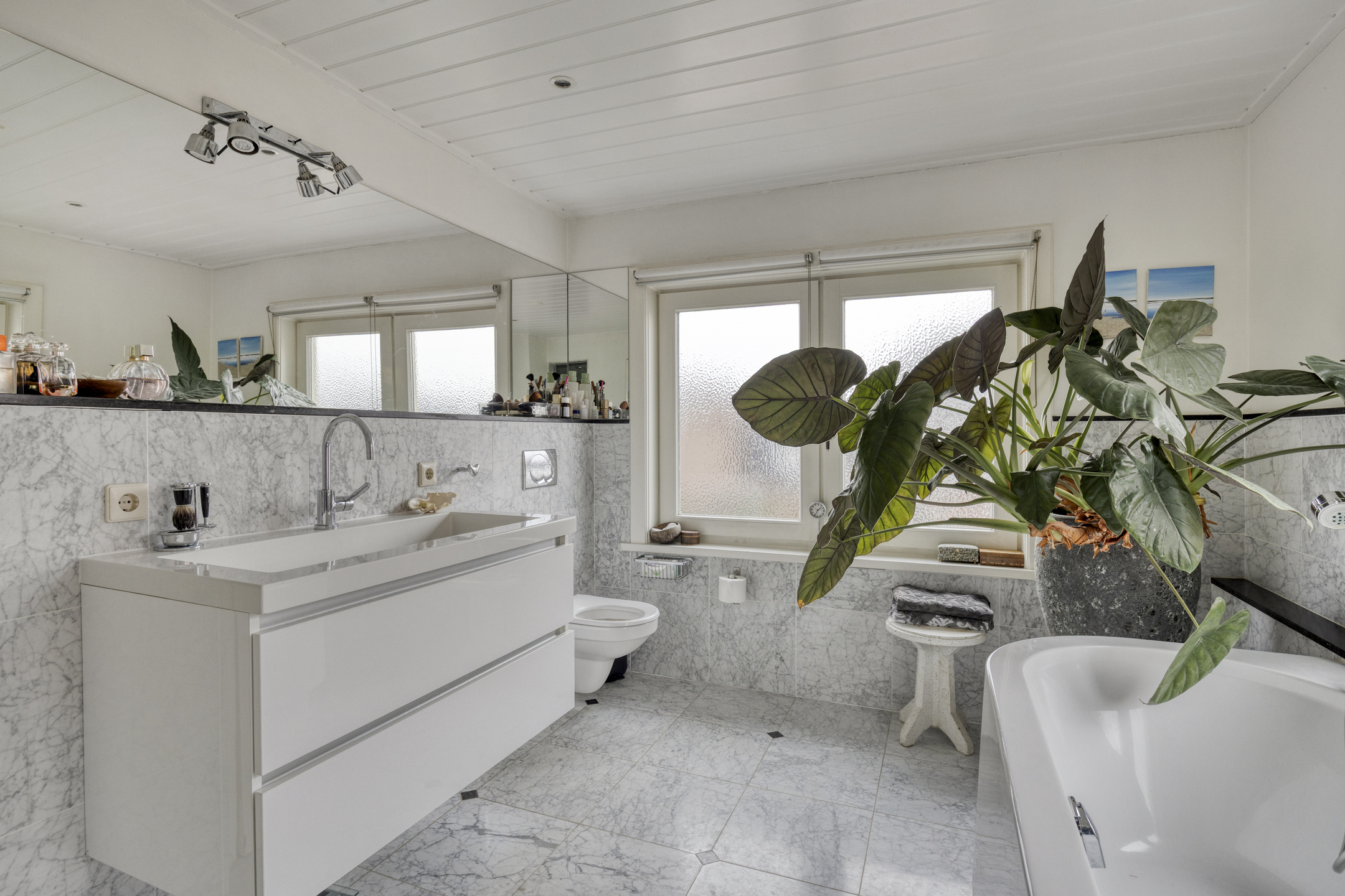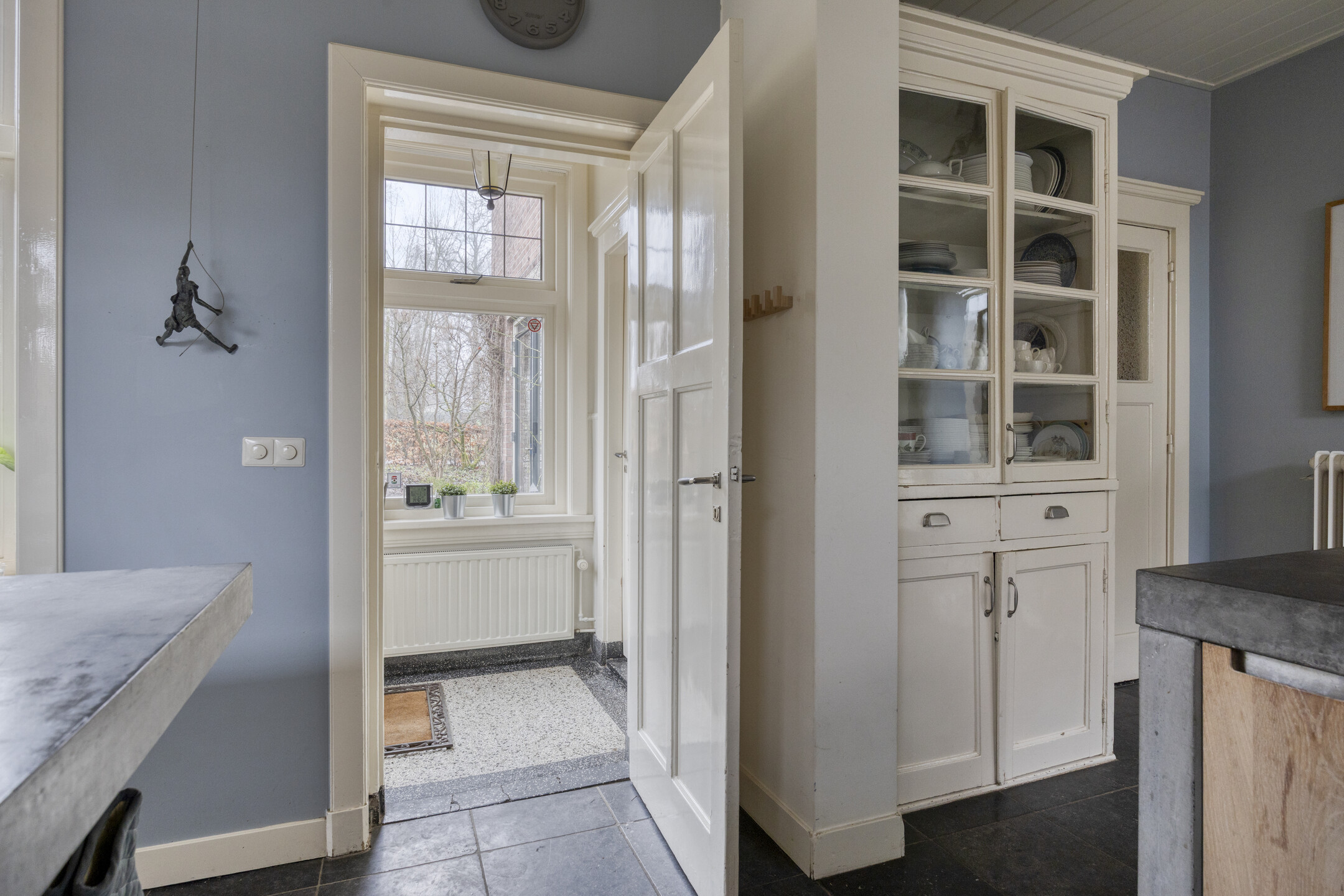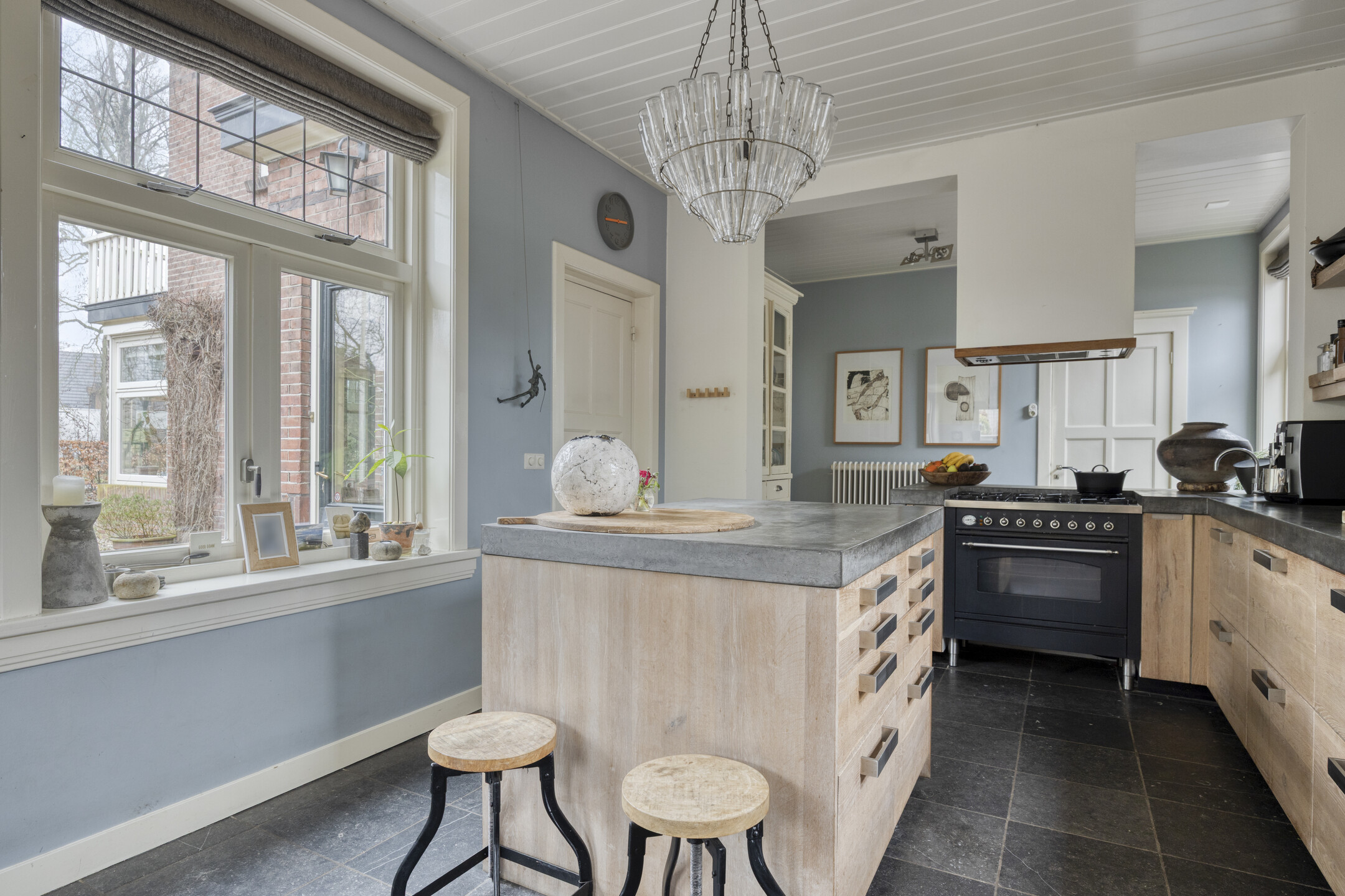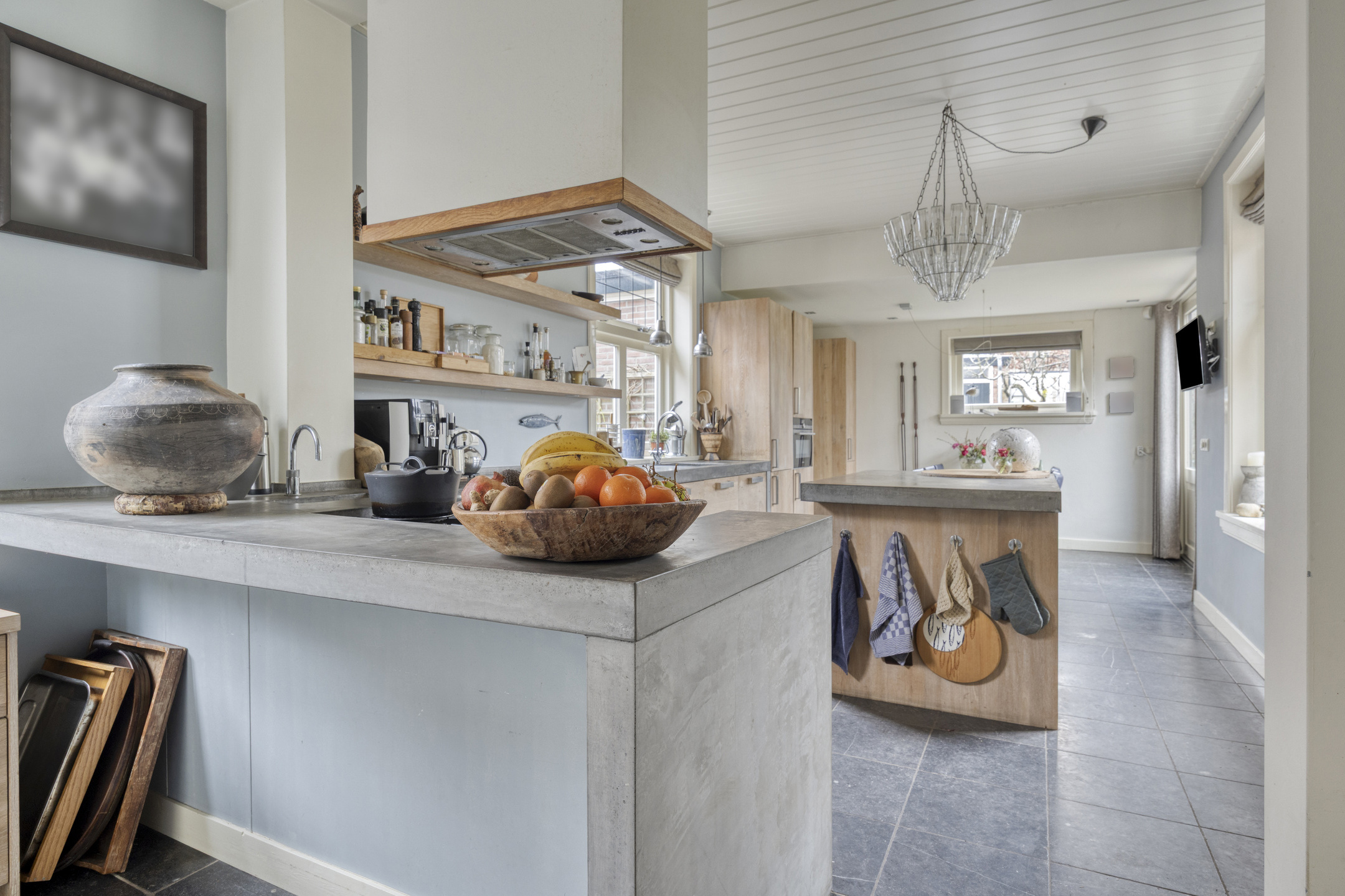 Vanuit de hal bereik je de ruime, sfeervolle keuken, met openslaande deuren naar de tuin. De keuken is uitgerust met diverse inbouwapparatuur, waaronder een 6-pits gasfornuis met oven, afzuigkap, combi- oven, koelkast, vriezer, vaatwasser en een Quooker. Vanuit de keuken bereik je de ruime kelder (met stahoogte) en een praktische bijkeuken met extra aanrechtblad, spoelbak en aansluitingen voor wasmachine en droger. Vanuit de bijkeuken betreedt u het heerlijk overdekte terras met gezellige houtkachel en terrasverwarming. De mooi aangelegde tuin biedt volop groen, privacy en meerdere terrassen om op elk moment van de dag van de zon te genieten.