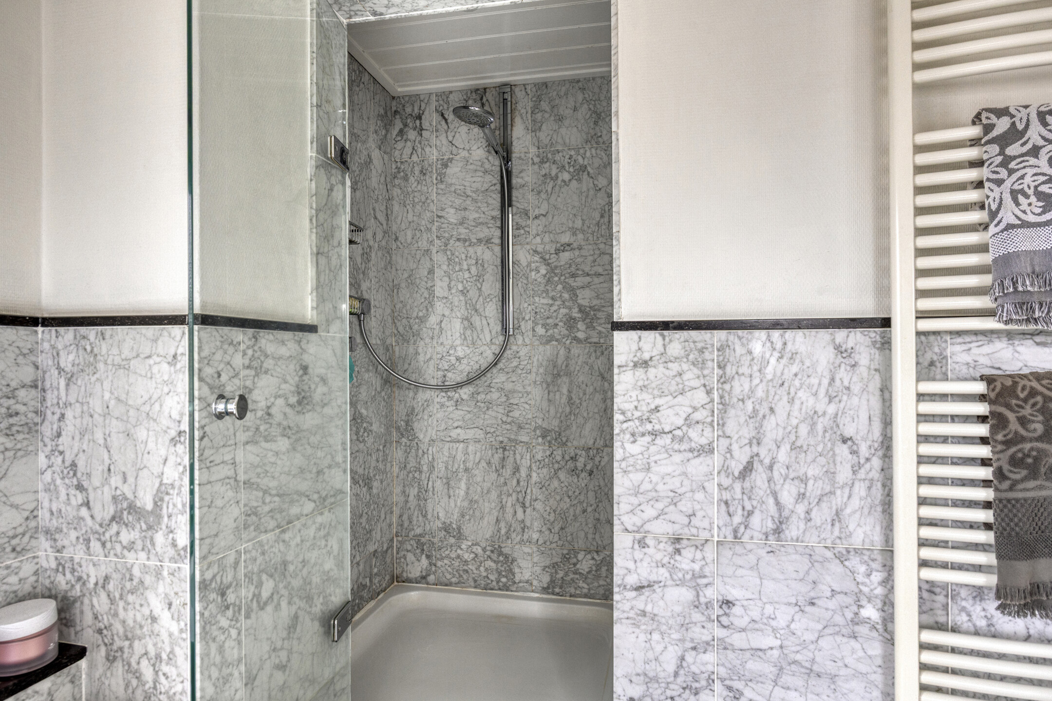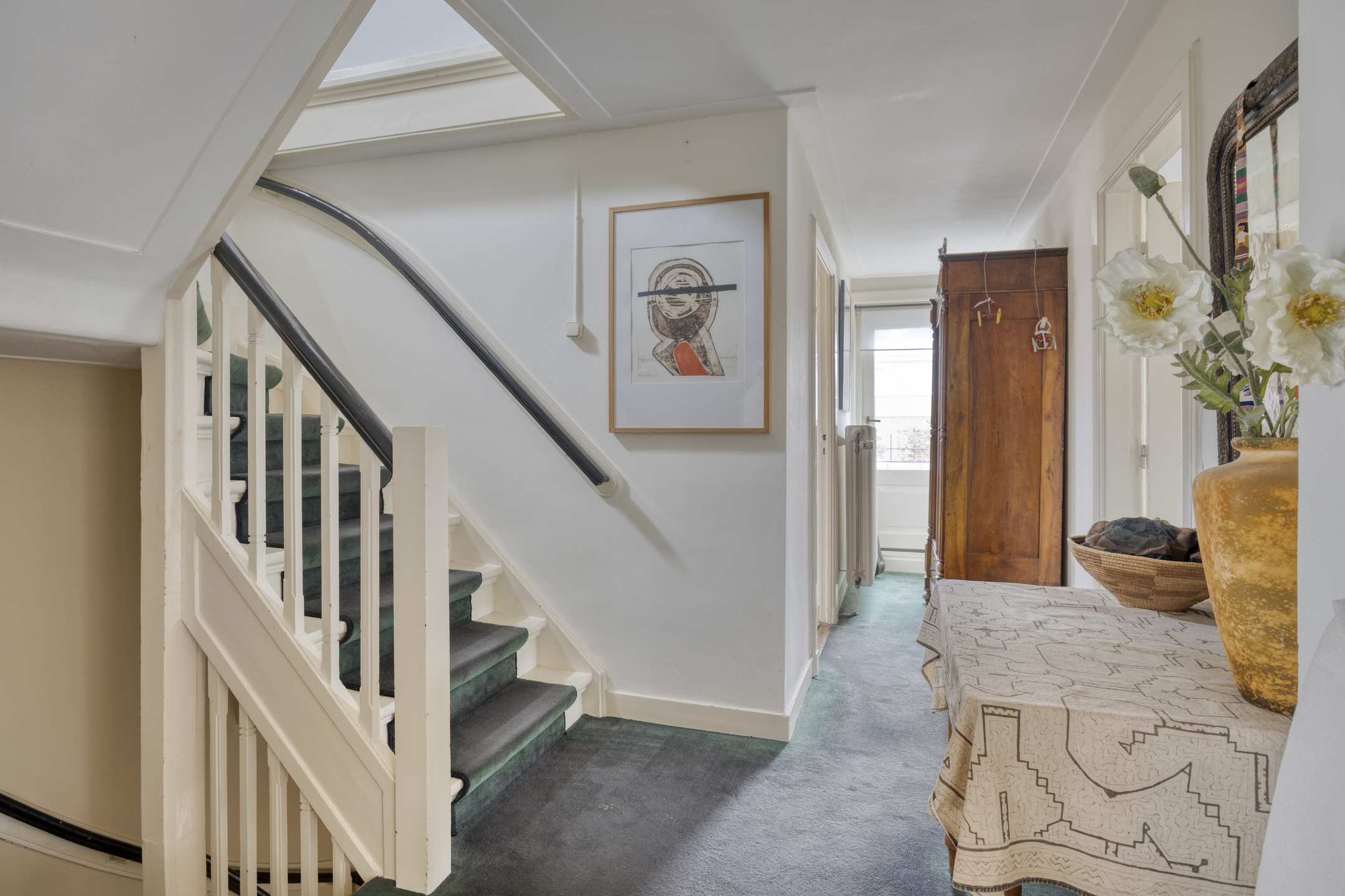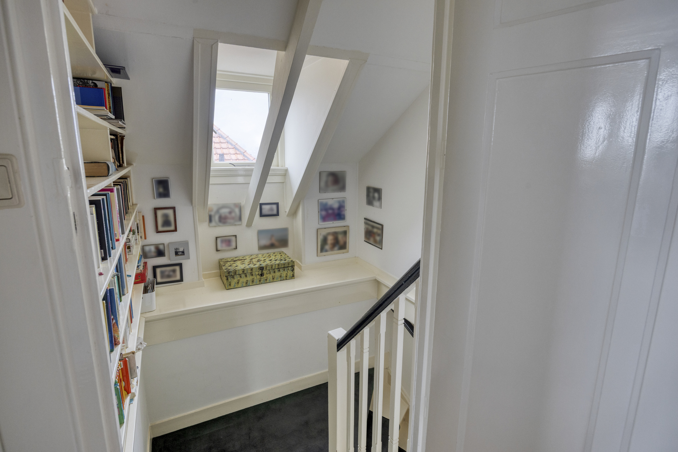 Tweede verdieping: de bordestrap geeft vervolgens toegang tot een mooie sfeervolle tweede verdieping met twee slaapkamers, een badkamer met wastafelmeubel en douche. Daarnaast is er dankzij de knieschotten op de slaapkamers en de overloop voldoende opbergruimte.