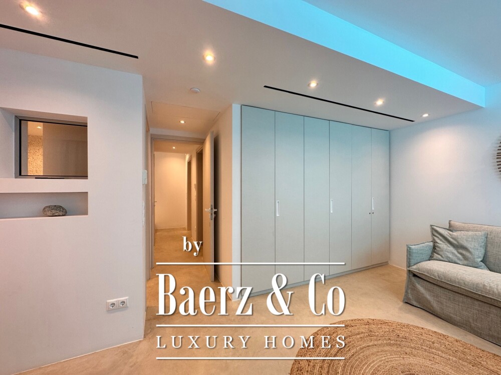 The villa is part of a discreet complex benefitting from security features, a 17-metre communal pool, and practical storage for leisure equipment. Gialova’s heart, with its restaurants, tavernas, and shops, is just a short walk away, and the sandy beach lies only 300 metres from your door. This setting combines access to crystal blue coves, moments of stillness, and a sense of secure seclusion—an exceptional villa for sale in Gialova.