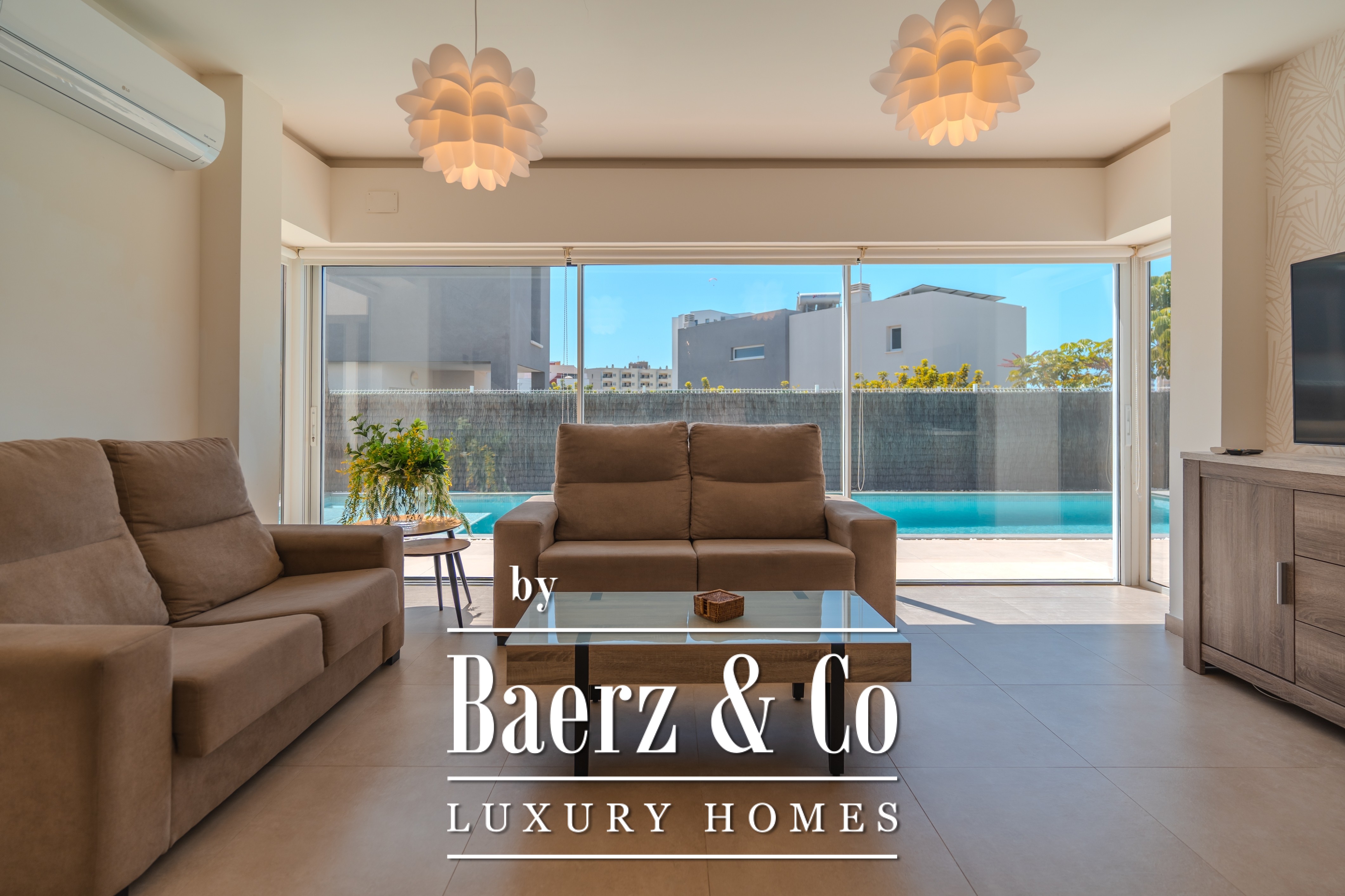 The villa is located in the gated residential complex “Nirvana Paraíso,” opposite the Las Rosas shopping centre with shops, bars, and restaurants. The beach Playa de las Galgas and the Hard Rock Hotel are about a 10-minute walk away.