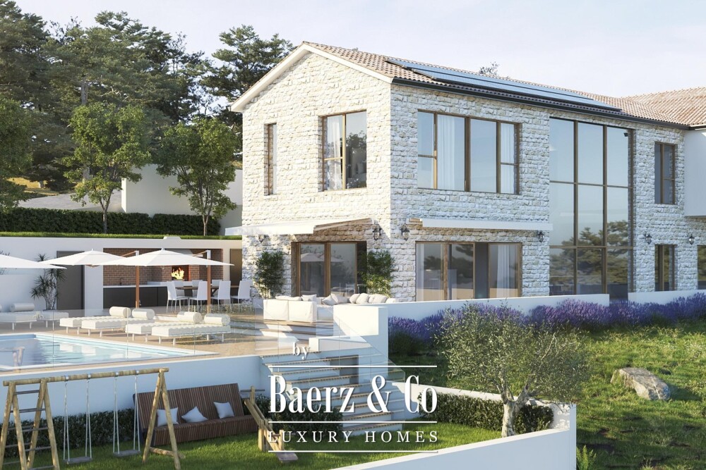 Materials and finishes center on technical precision, featuring smart home systems, photovoltaic panels, underfloor heating, air conditioning and automated shutters. Landscaped Mediterranean gardens, a private olive grove and a spacious pool terrace offer serene spaces for relaxation and gatherings. The outdoor kitchen and traditional konoba extend the living environment, with a double garage and additional parking enhancing everyday functionality.