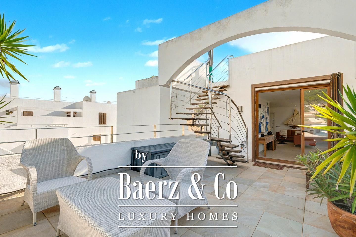 A private staircase ascends to the penthouse’s rooftop terrace, an expansive, sunlit space designed for adaptable outdoor living, balancing views of Port d'Andratx with privacy. Here, possibilities unfold for a lounge, an outdoor kitchen or a jacuzzi, creating a vantage point for year-round enjoyment of the island climate.