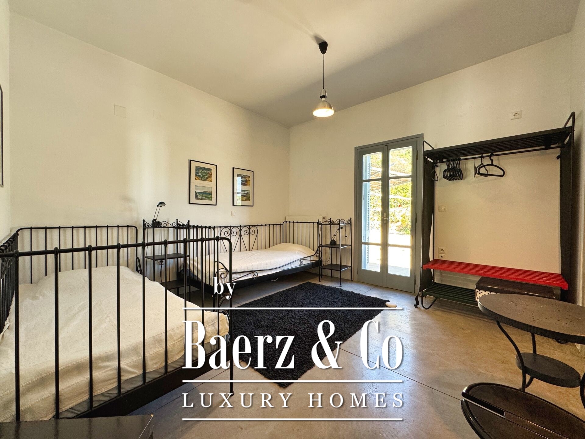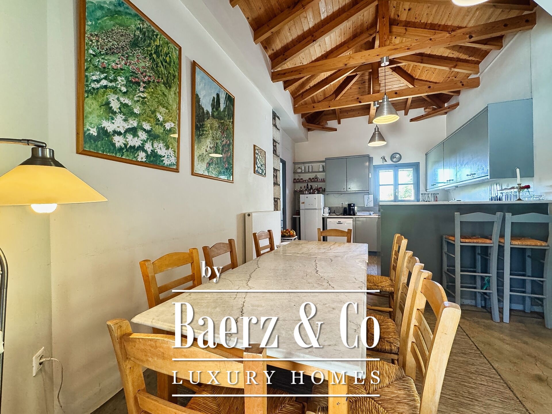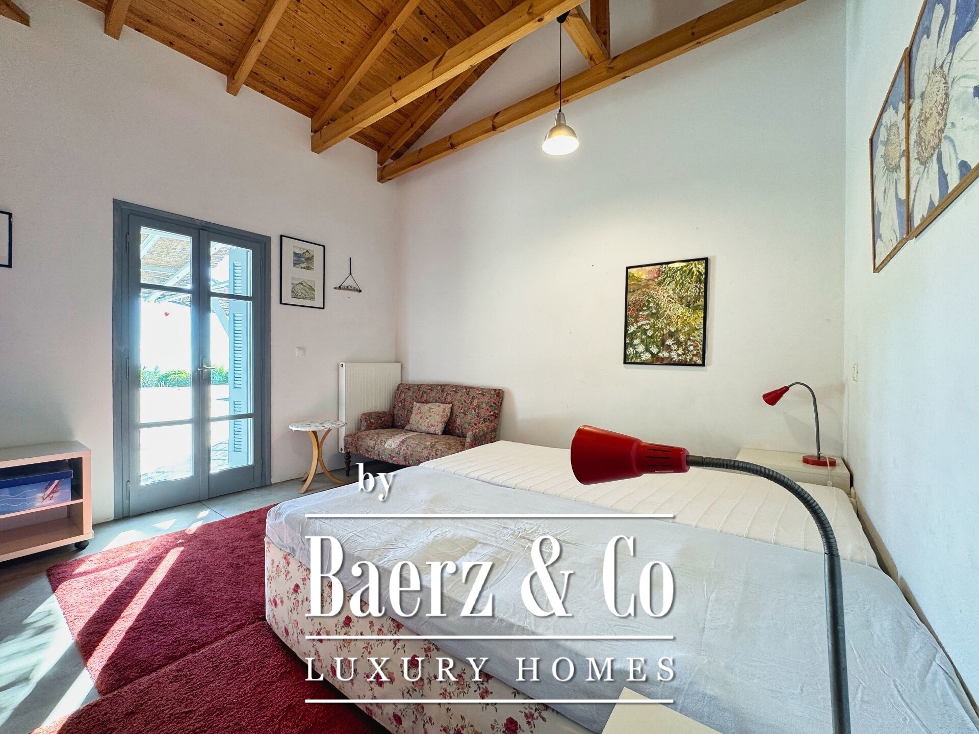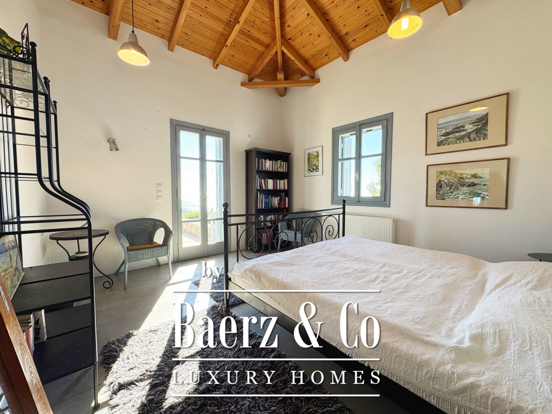 On the same level, a flexible open-plan area with its own bathroom can serve as a guest house, wellness suite, or creative atelier. Outdoors, a private swimming pool frames the mountain-to-sea panorama, inviting quiet reflection. Heating systems—central, oil, solar water, and boiler—support year-round living. This luxury villa for sale in Prosilio honors the Mani tradition, delivering a home of enduring quality, privacy, and serene connection to both land and sea.