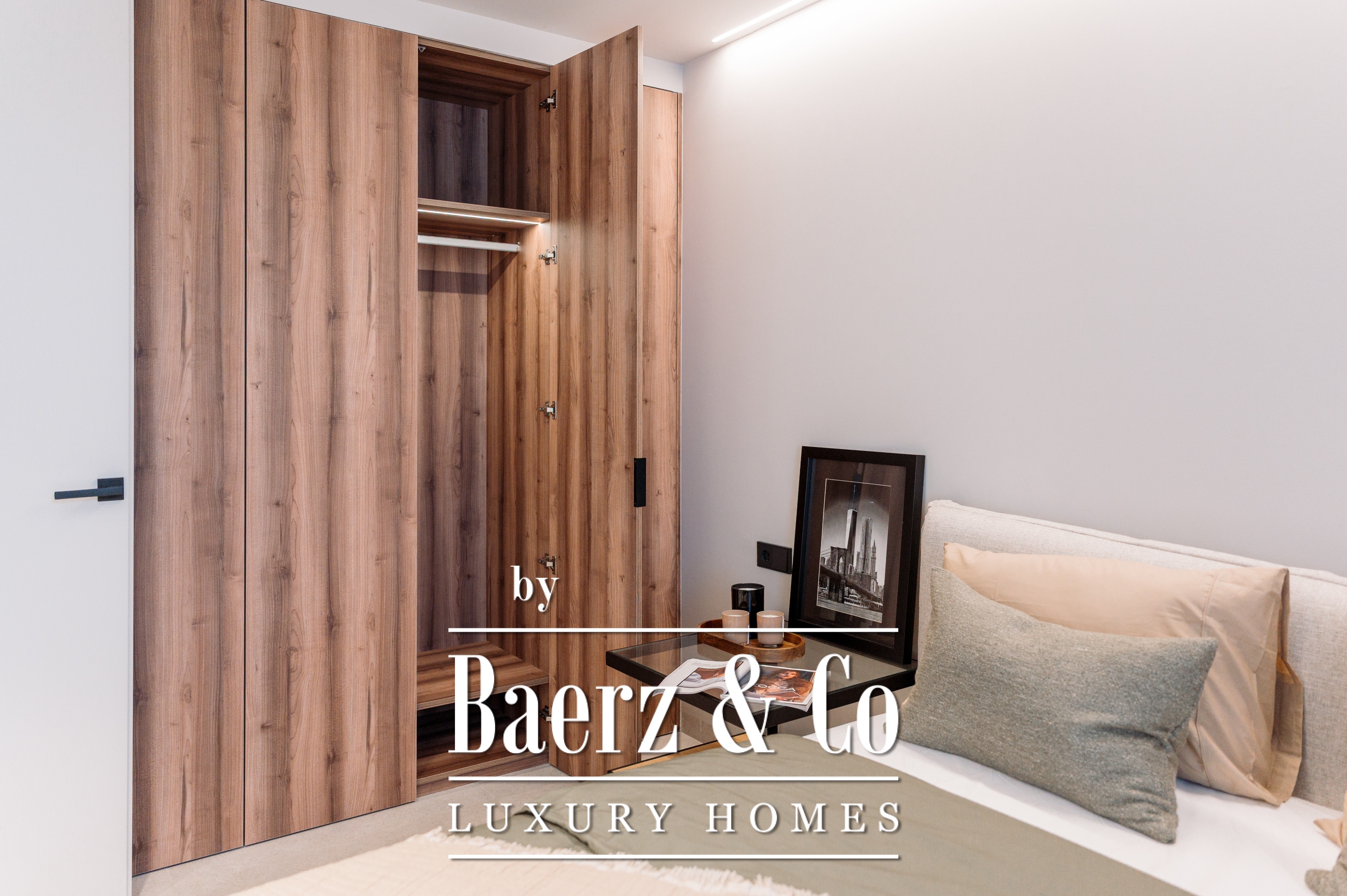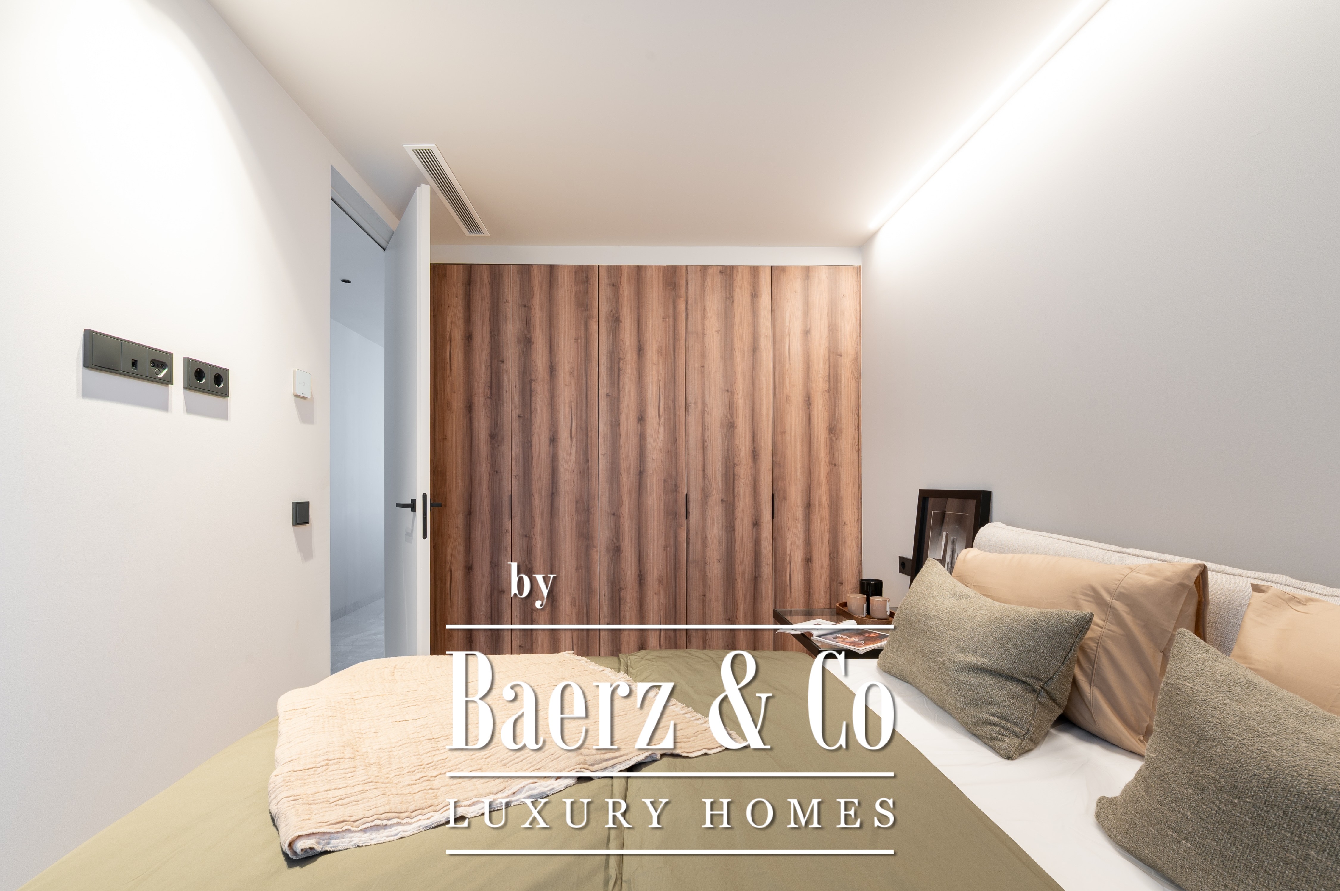 This apartment comprises two bedrooms and two bathrooms, featuring top-brand kitchen equipment and energy-efficient climate systems. Three fitted wardrobes, air-conditioning, lift access, and both a private parking space and an ample storage room address comfort and practicality. The property’s orientation frames the Atlantic, drawing in natural light and the pulse of the ocean.