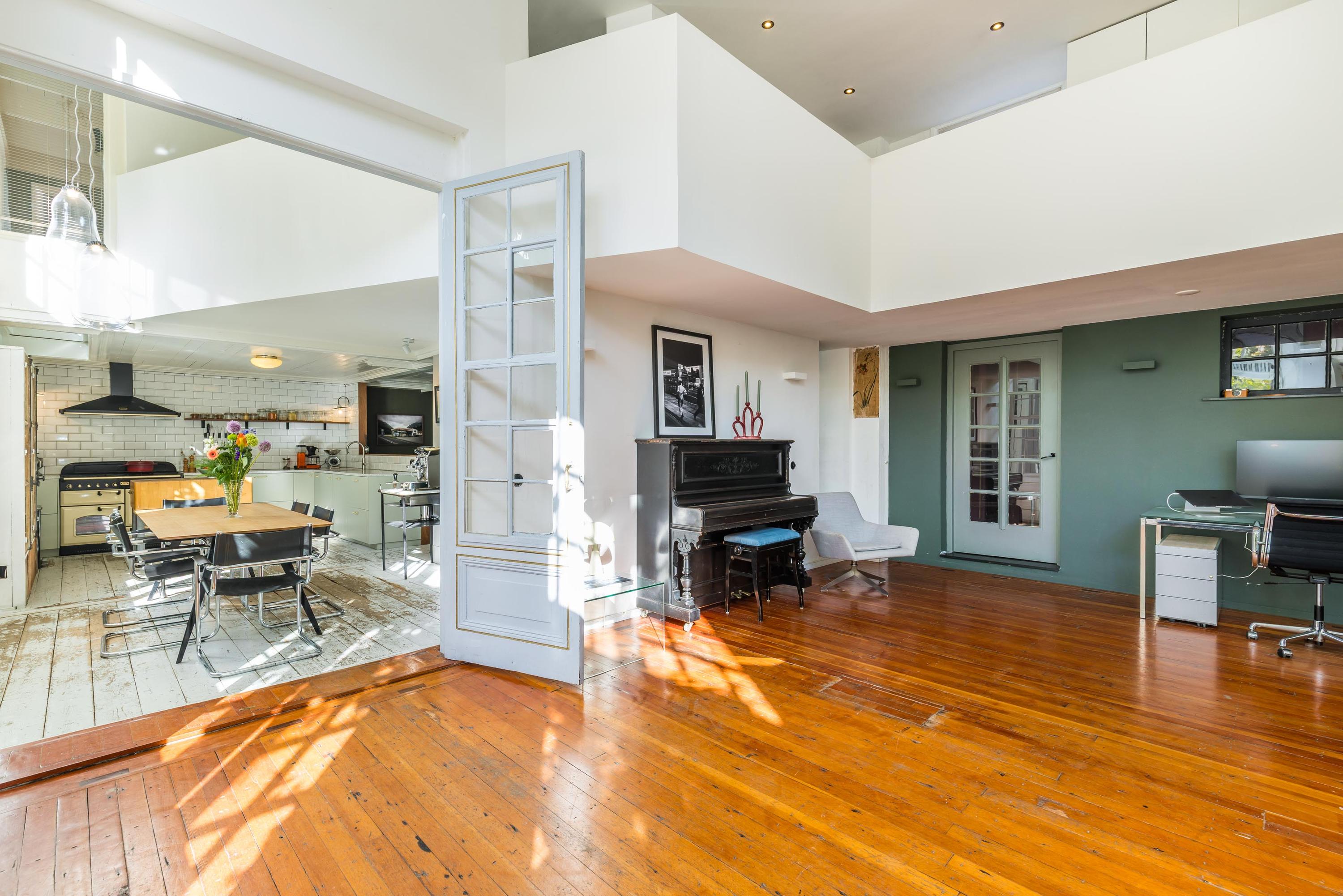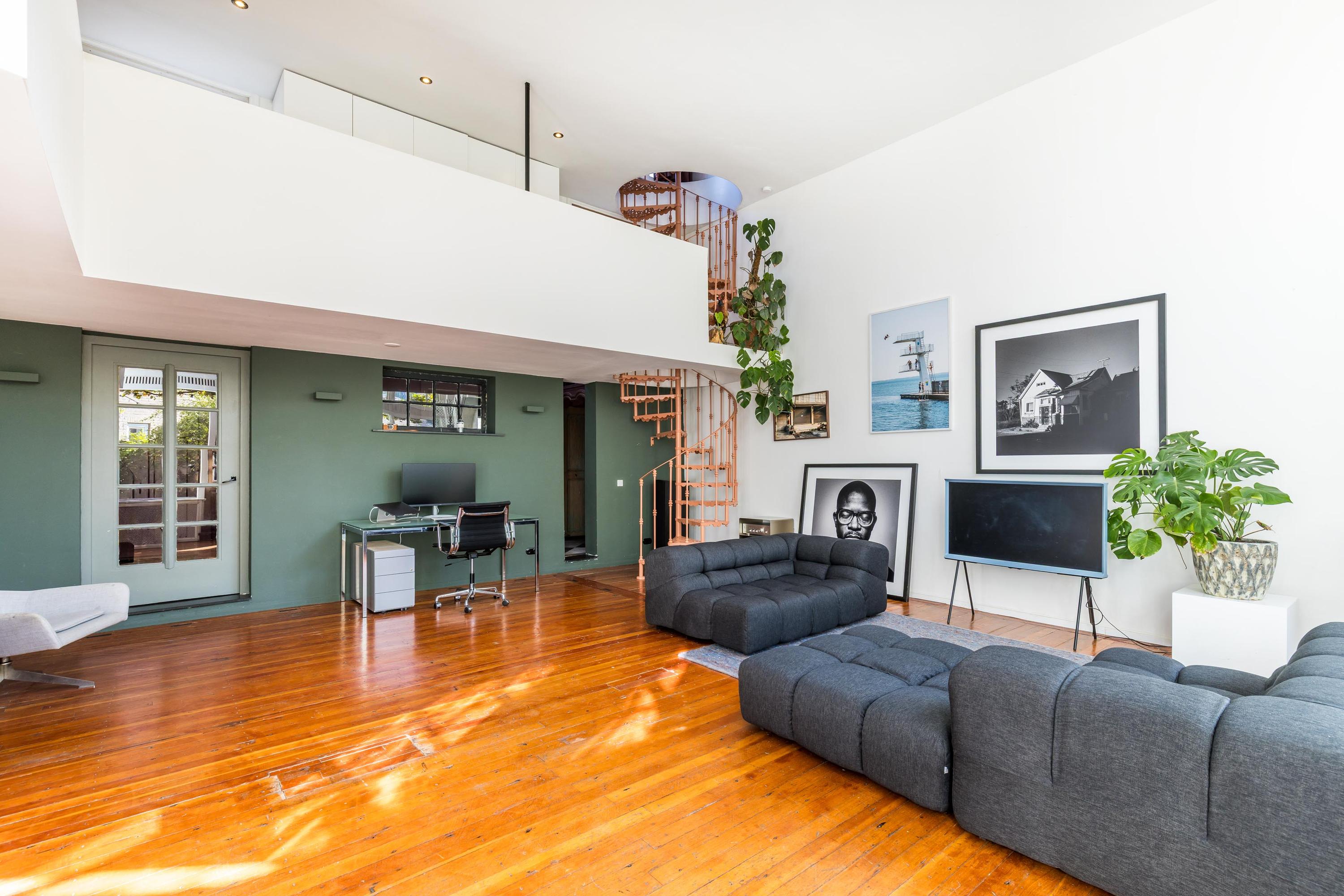 Inside, the living room immediately draws attention: an impressive space with height, light, and distinctive features such as tall doors and a striking spiral staircase. Adjacent is the spacious kitchen-diner the heart of the home featuring a fireplace, a cozy sitting area, and ample space for cooking and dining together.