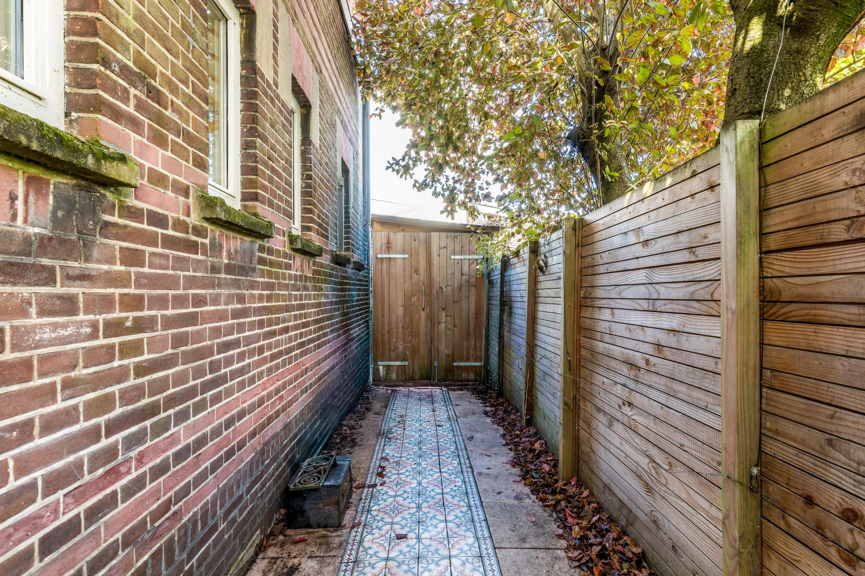 At the front lies a green, secluded garden where you can enjoy peace and privacy in the morning and afternoon sun. A gate provides access to the adjacent schoolyard, which residents are allowed to use as a play area for children or for casual gatherings and barbecues with friends.