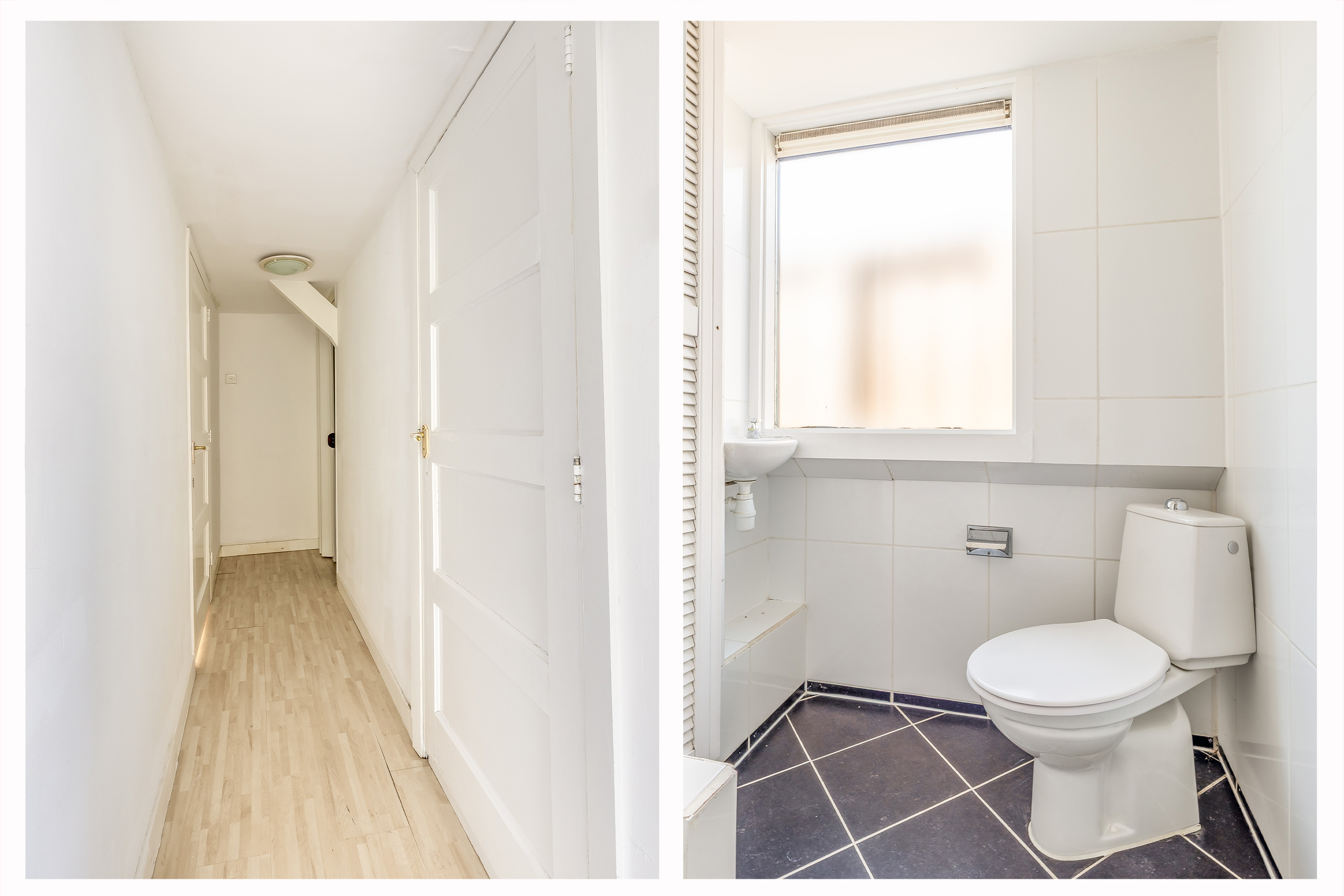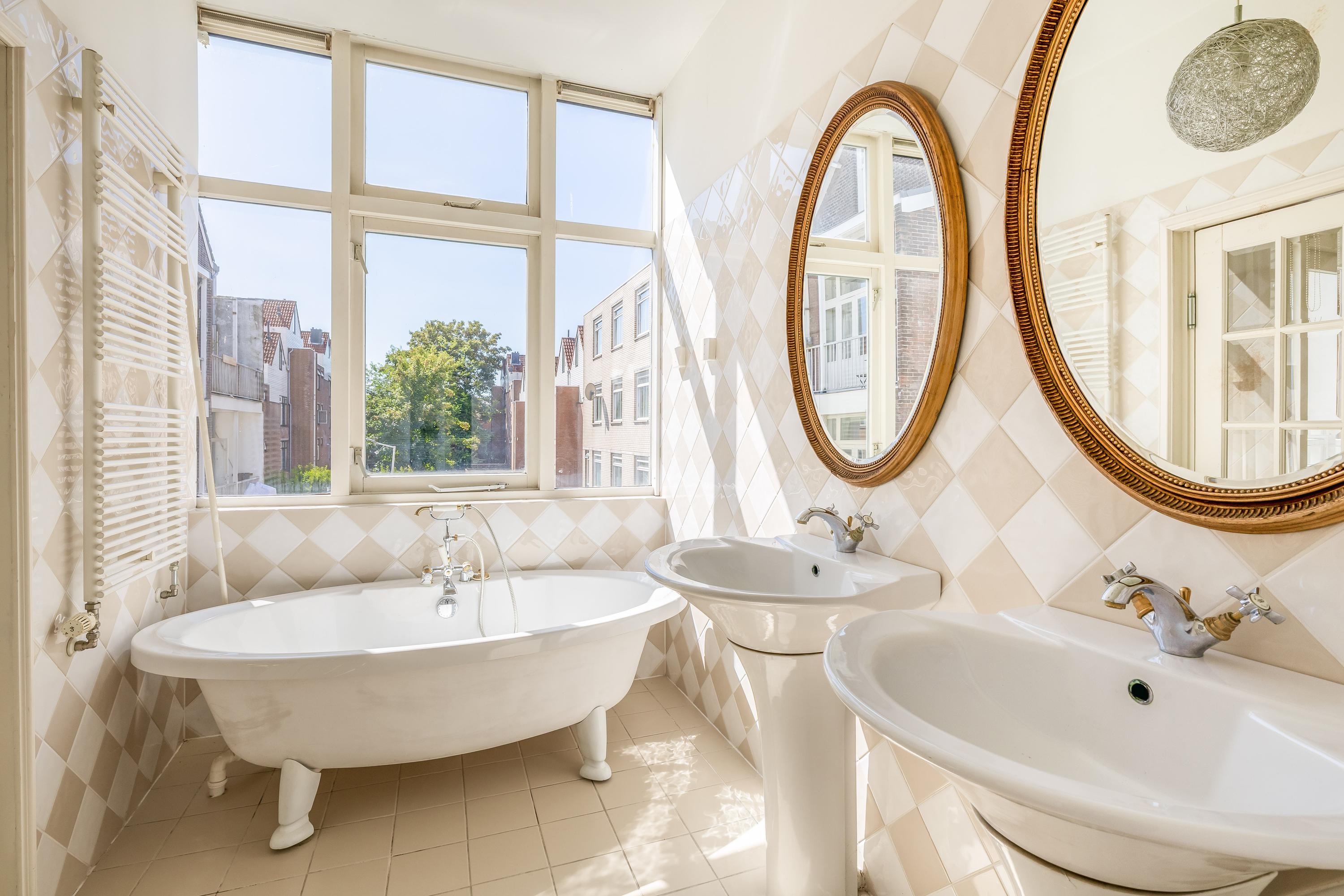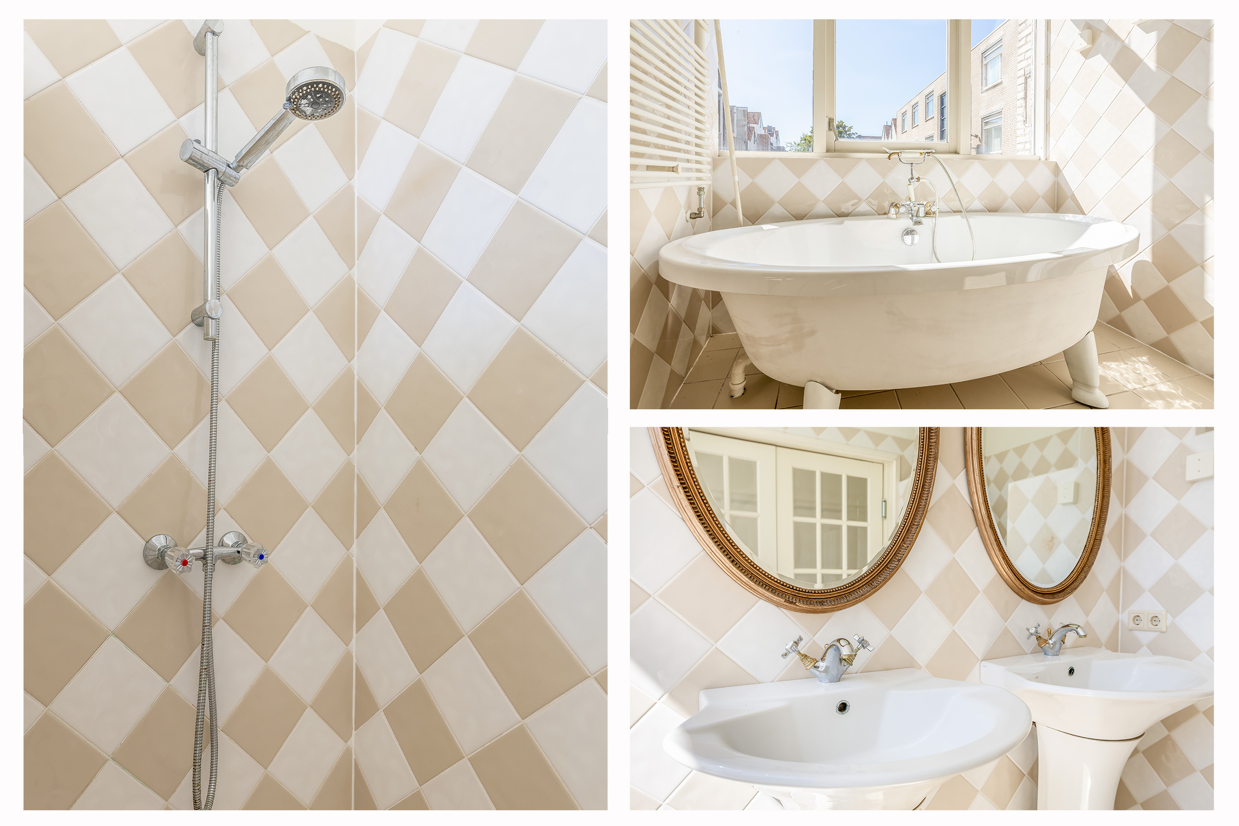 De overloop biedt toegang tot diverse vertrekken. Aan de voorzijde bevindt zich een slaapkamer met ingebouwde kasten en een keukentje. Aan de achterzijde vind je een riante slaapkamer met een brede dakkapel, wastafel en zonnig terras. Op deze etage is er ook een tweede badkamer, voorzien van een ligbad, inloopdouche en wastafel met meubel. Terug in de hal vind je een separaat toilet met wastafel, de opstelling voor de CV-ketels en aansluitingen voor de wasmachine en droger.
