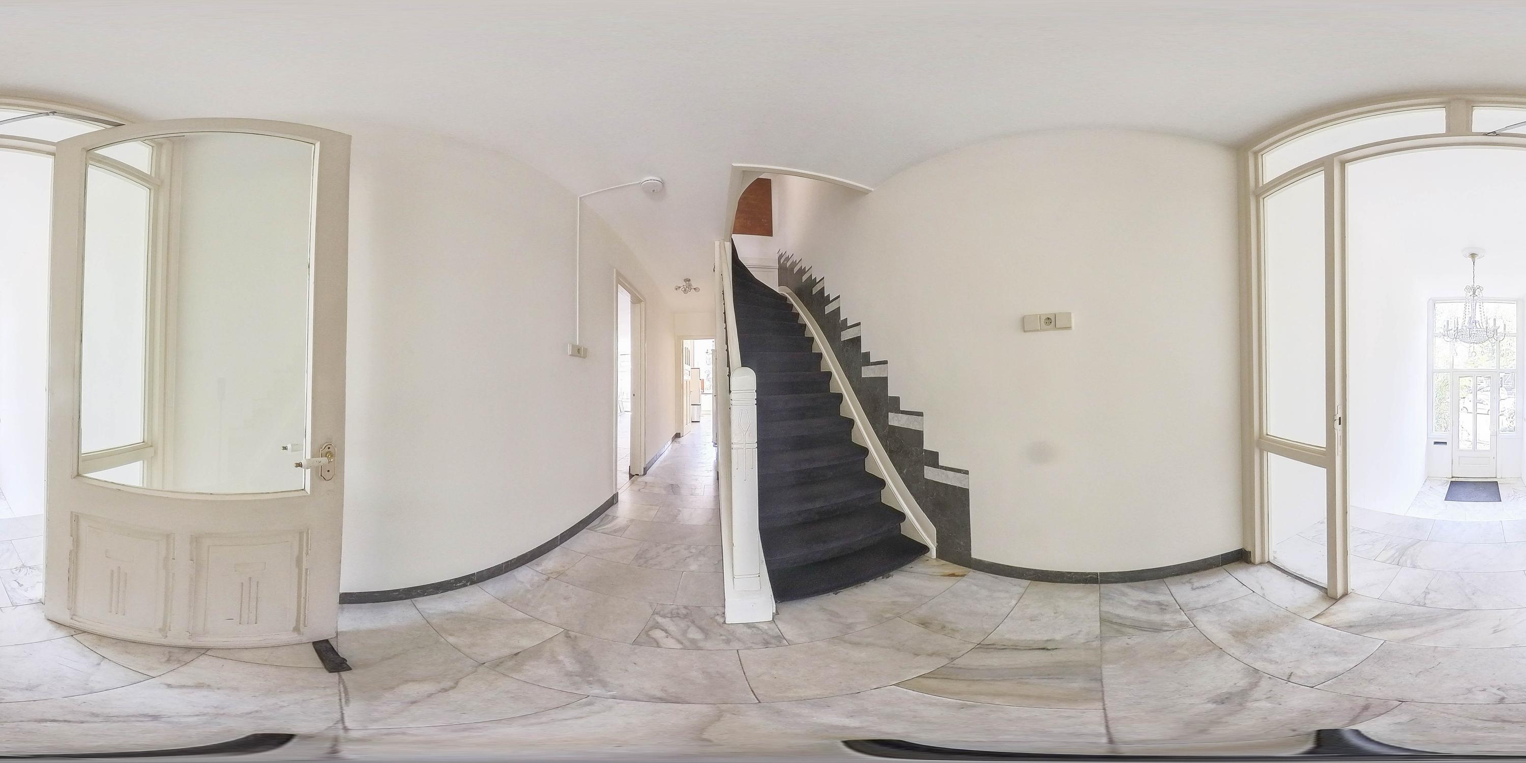 Bij binnenkomst kom je in de imposante entree met marmeren tegels. Vanuit hier is de lange hal met toilet en trapkast toegankelijk, die het leefgedeelte verbindt. Direct valt de hoogte van de plafonds op. De woonkamer van 14 meter lang is momenteel ingedeeld in een zitgedeelte aan de voorzijde en een eetgedeelte aan de achterzijde, met toegang tot de halfopen keuken. Door de ruime indeling heb je voldoende mogelijkheden om de ruimte helemaal naar eigen smaak in te richten. Voorheen was het souterrain bereikbaar via een trap in de eetkamer, maar het is ook mogelijk om deze verbinding opnieuw te realiseren. De keuken is uitgerust met een 5-pits gasfornuis met oven, afzuigkap, vaatwasser, spoelbak en koel-vriescombinatie. Dit is een heerlijke plek waar je tijdens het koken interactie kunt hebben met je gezelschap.