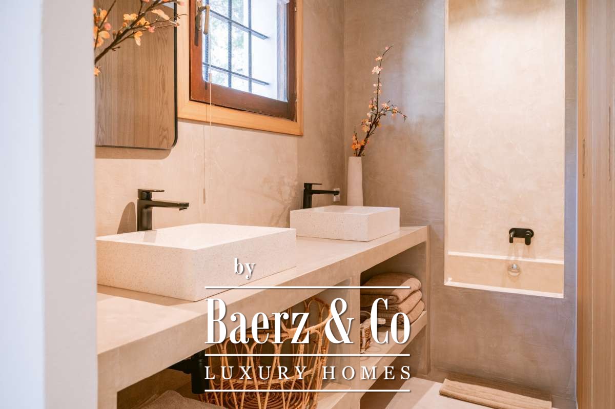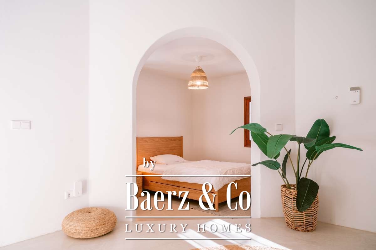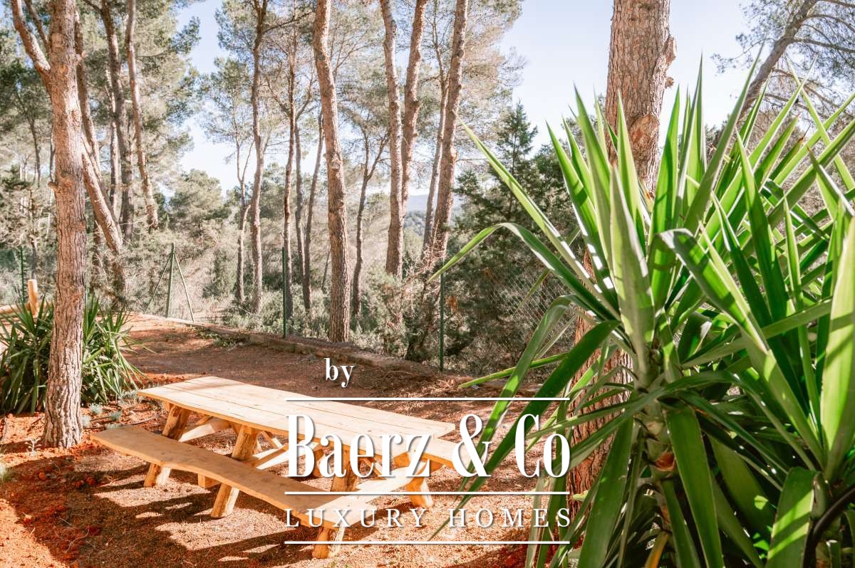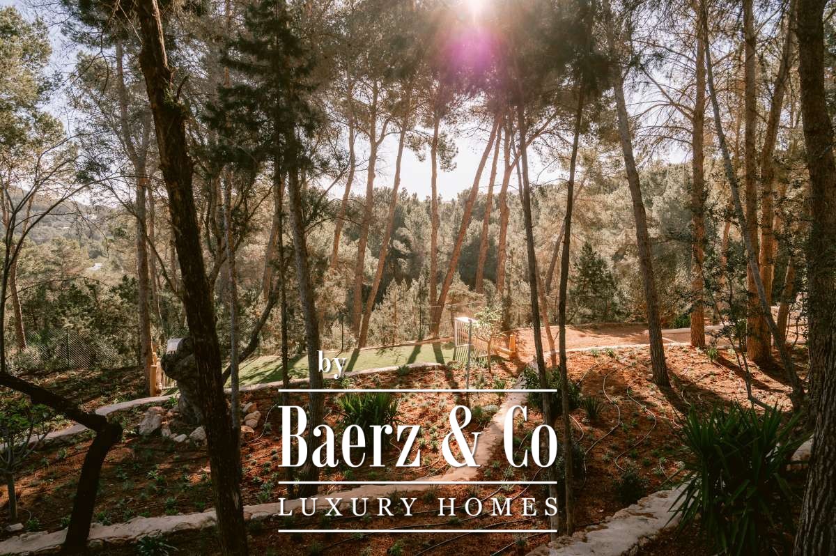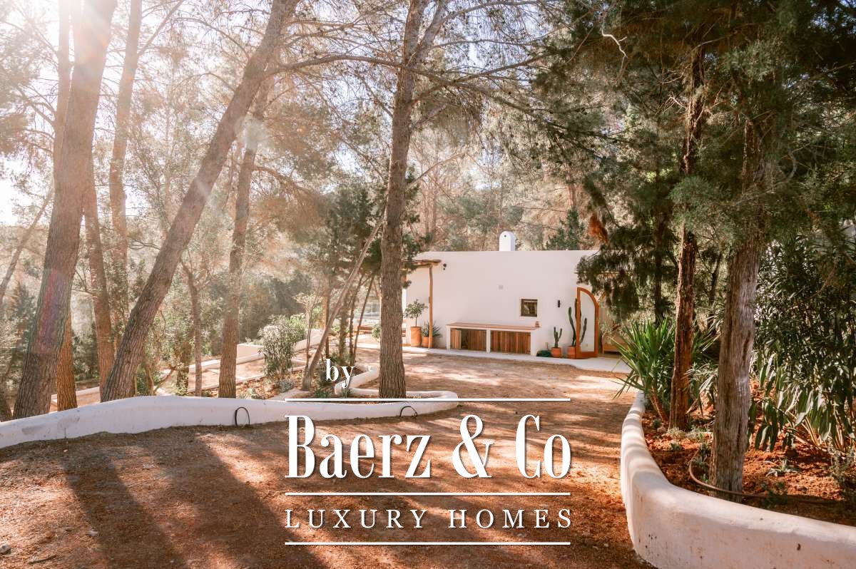 Villa San Agustín Spain connects privacy with effortless outdoor living amid a tranquil forested landscape. This fully renovated villa, with a built area of 175 m² on a private plot of 1,783 m², embraces the enduring spirit of Ibiza while remaining close to local restaurants and some of the west coast’s revered beaches. The setting blends seclusion and centrality, surrounded by the verdant beauty of San Agustín.