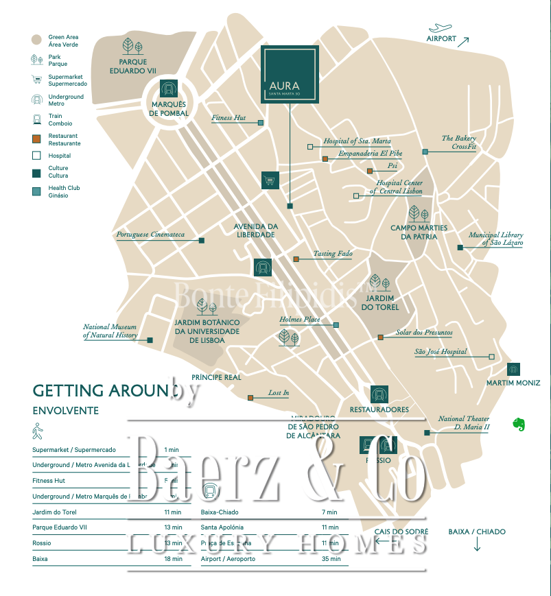 Aura’s architectural presence is at once contemporary and grounded, enveloped by manicured gardens and green spaces rarely found in the city centre. Residents benefit from the serenity of a private 180 m² garden, swimming pool, on-site gym, and secure underground parking. Solar energy solutions subtly underscore the commitment to sustainability. Every aspect of the condominium is curated for discretion, comfort, and well-being, offering a sheltered enclave above Lisbon’s vibrant rhythm.
