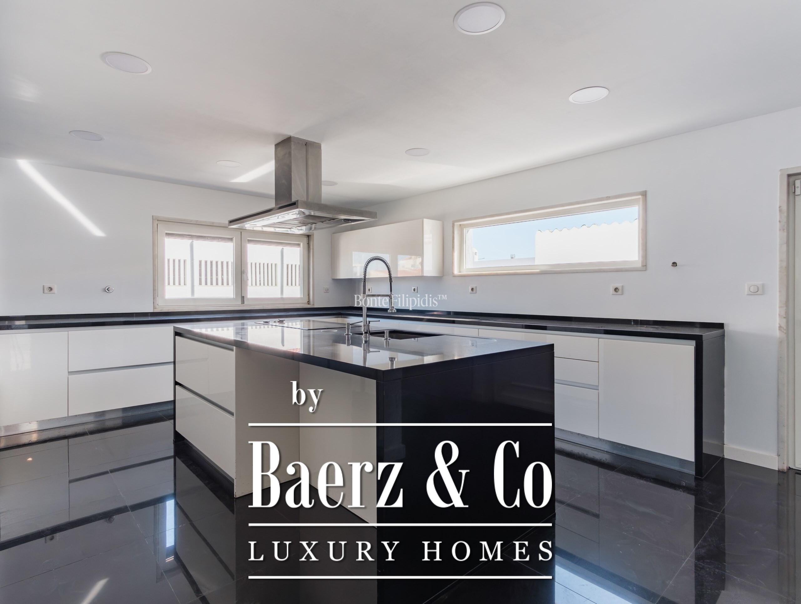 5 bedroom villa Tires Cascais offers an exceptional residential setting on a 556 m² plot, enveloped by light through its south-facing orientation. The property extends across approximately 450 m² of interior space distributed over three floors, all conveniently serviced by an elevator. The villa includes five bedrooms, highlighted by a 40 m² suite with walk-in closet, and two large living rooms of 42 m² each, creating a sense of openness and versatility. A fully equipped kitchen of 27 m² serves both daily life and entertaining demands.