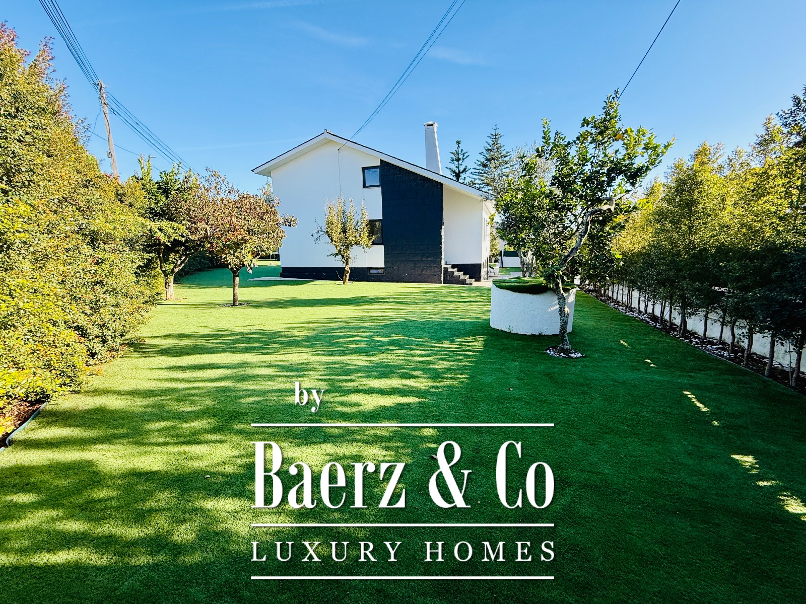 This house Sintra harmonizes contemporary renovation with a sense of privacy and calm, occupying 357 m² on an 868 m² plot. Natural light moves from east to west throughout its three levels, each thoughtfully arranged for both family life and quiet retreat. The ground floor offers a guest bedroom, additional bedroom, storage with a window, a laundry room, and an internal garage for one car. Upstairs, an American-style kitchen with a double refrigerator supports entertaining and everyday rhythm. The adjoining dining and living spaces feature a fireplace and open onto a terrace that leads directly to the heated swimming pool and garden. Two bedrooms on this level provide fitted wardrobes and are served by a well-appointed bathroom. The upper floor holds a principal suite with a walk-in closet and private bath, another suite with wardrobes, and an extra room for flexibility. Air conditioning throughout ensures comfort in every season, with the living spaces quietly set along a tranquil street. From here, Tasis School is ten minutes away, Caisl School twelve minutes, and the center of Lisbon within twenty-five kilometers, connecting daily life to the best of Sintra and the Portuguese capital. This house for sale in Sintra brings together refined practicality with understated elegance.