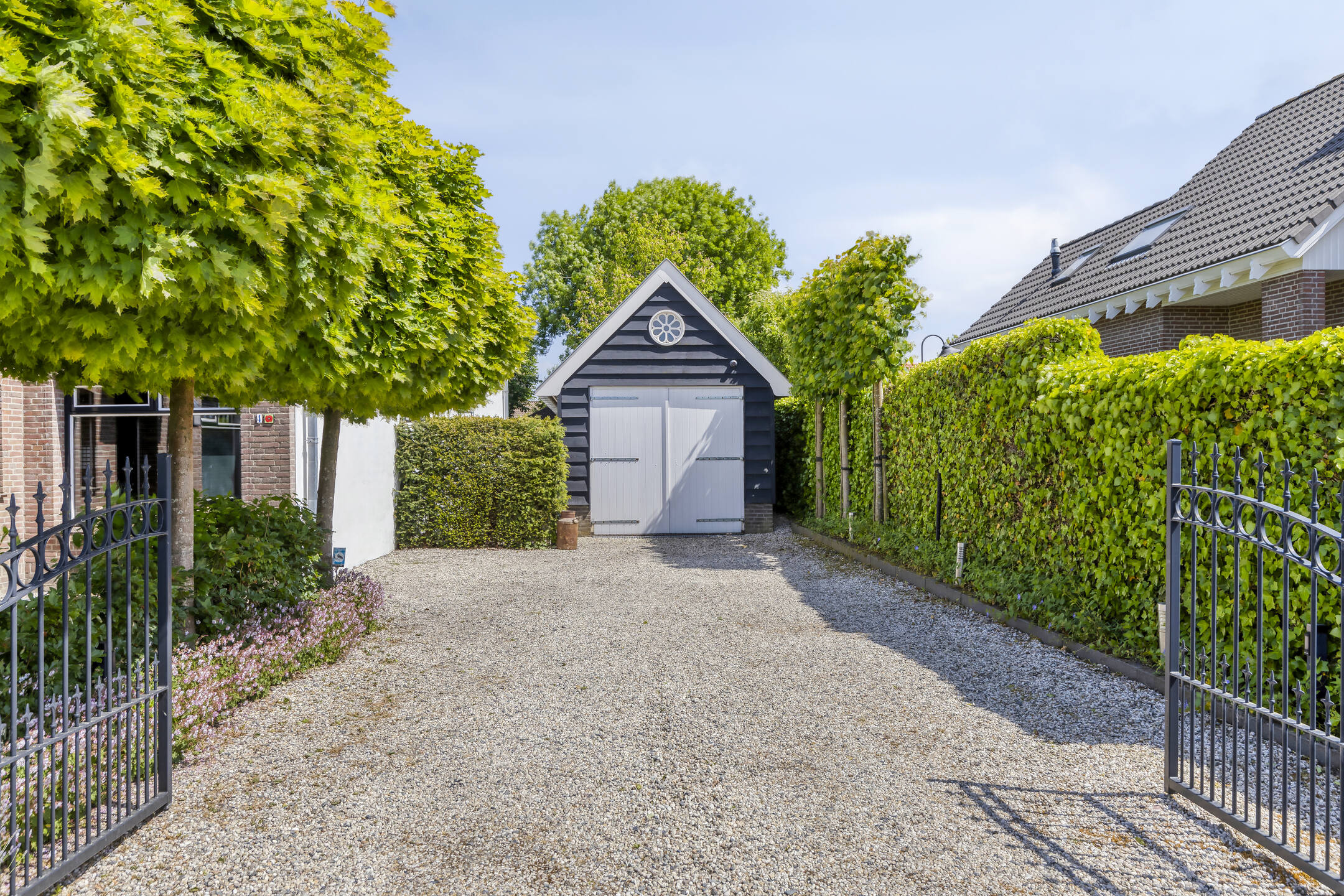De tuin aan de achterzijde is prachtig aangelegd met veel privacy en o.a. een overkapping, berging, tuinkas, terras, etc. Aan de voorzijde is een afsluitbare oprit aangelegd met parkeergelegenheid voor meerdere auto’s. Tevens is er een geïsoleerde hobbyruimte en verwarmde garage t.b.v. stallen van 2 auto’s, welke is voorzien van alle voorzieningen.