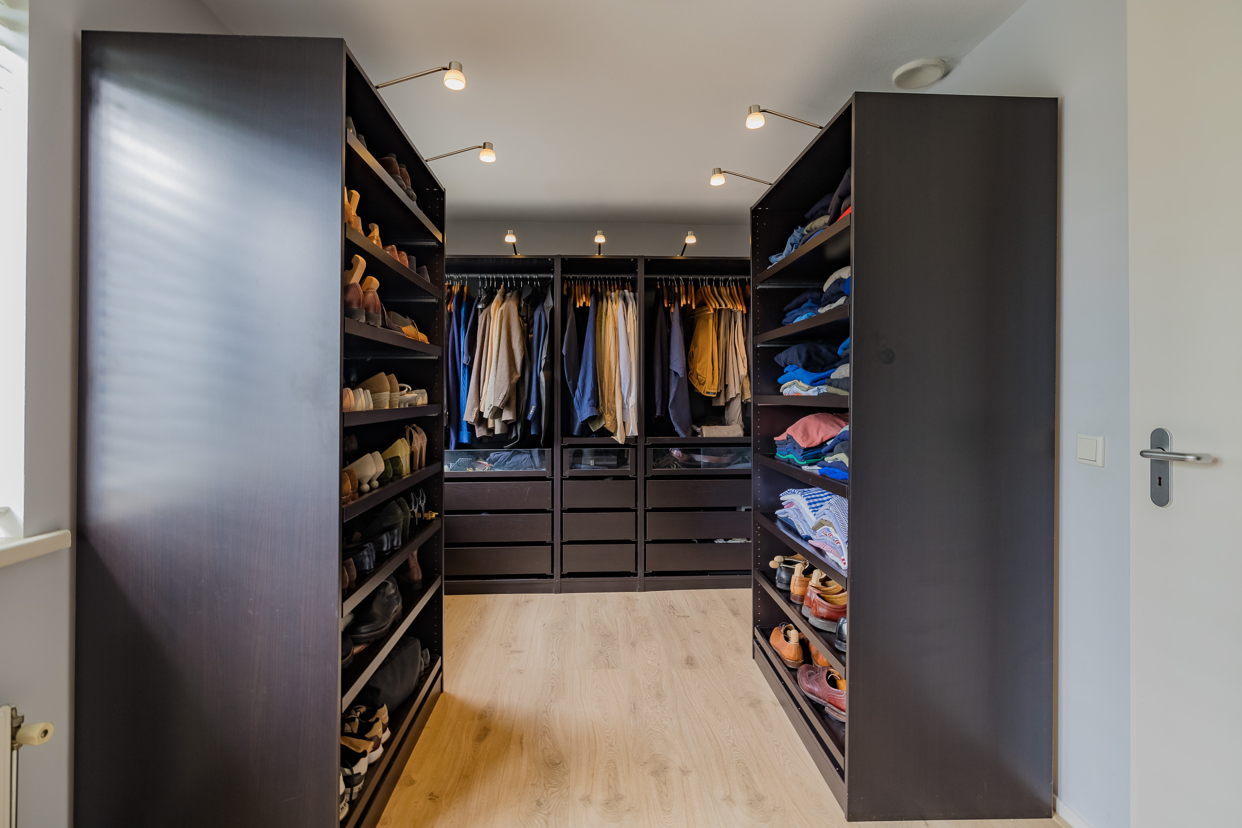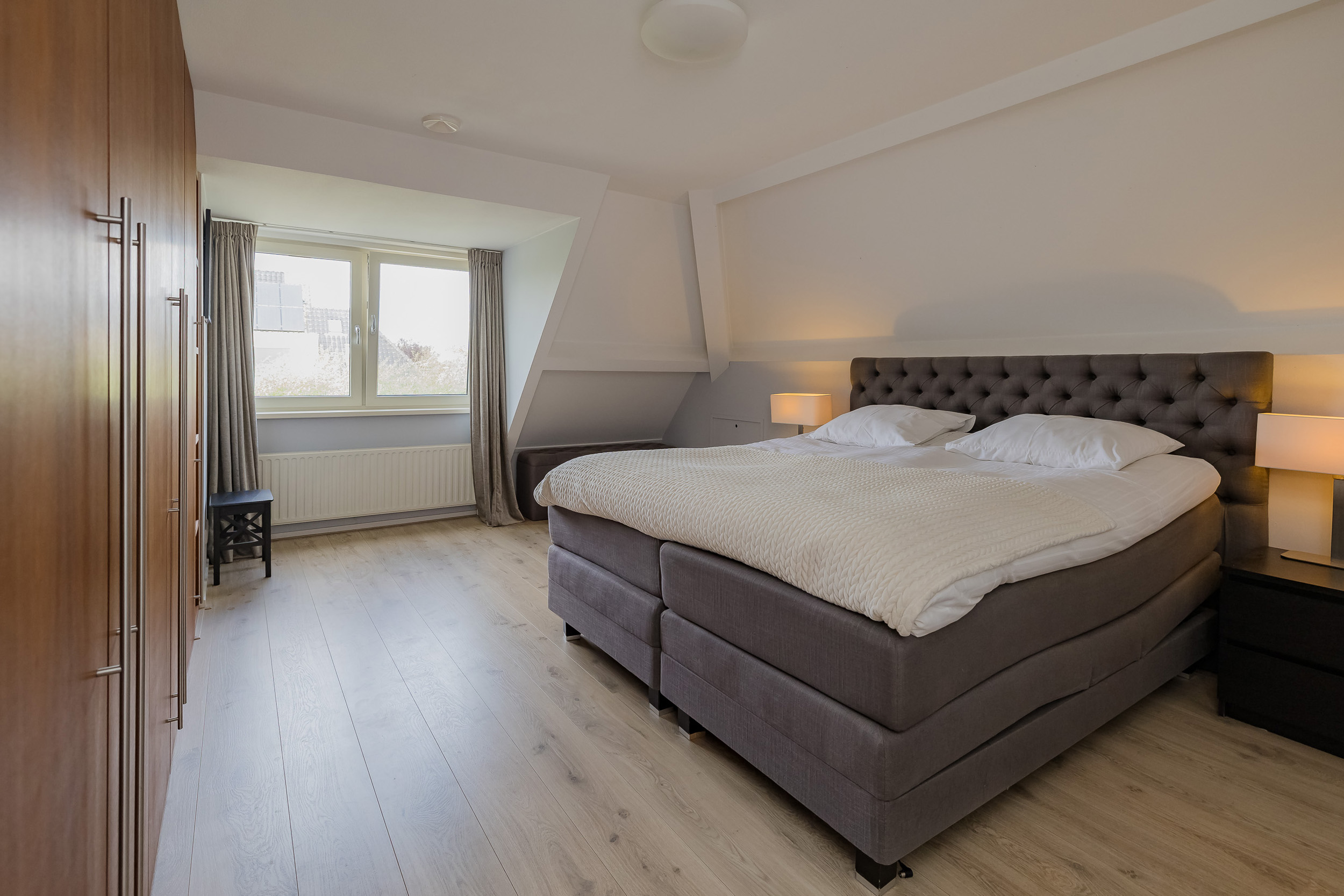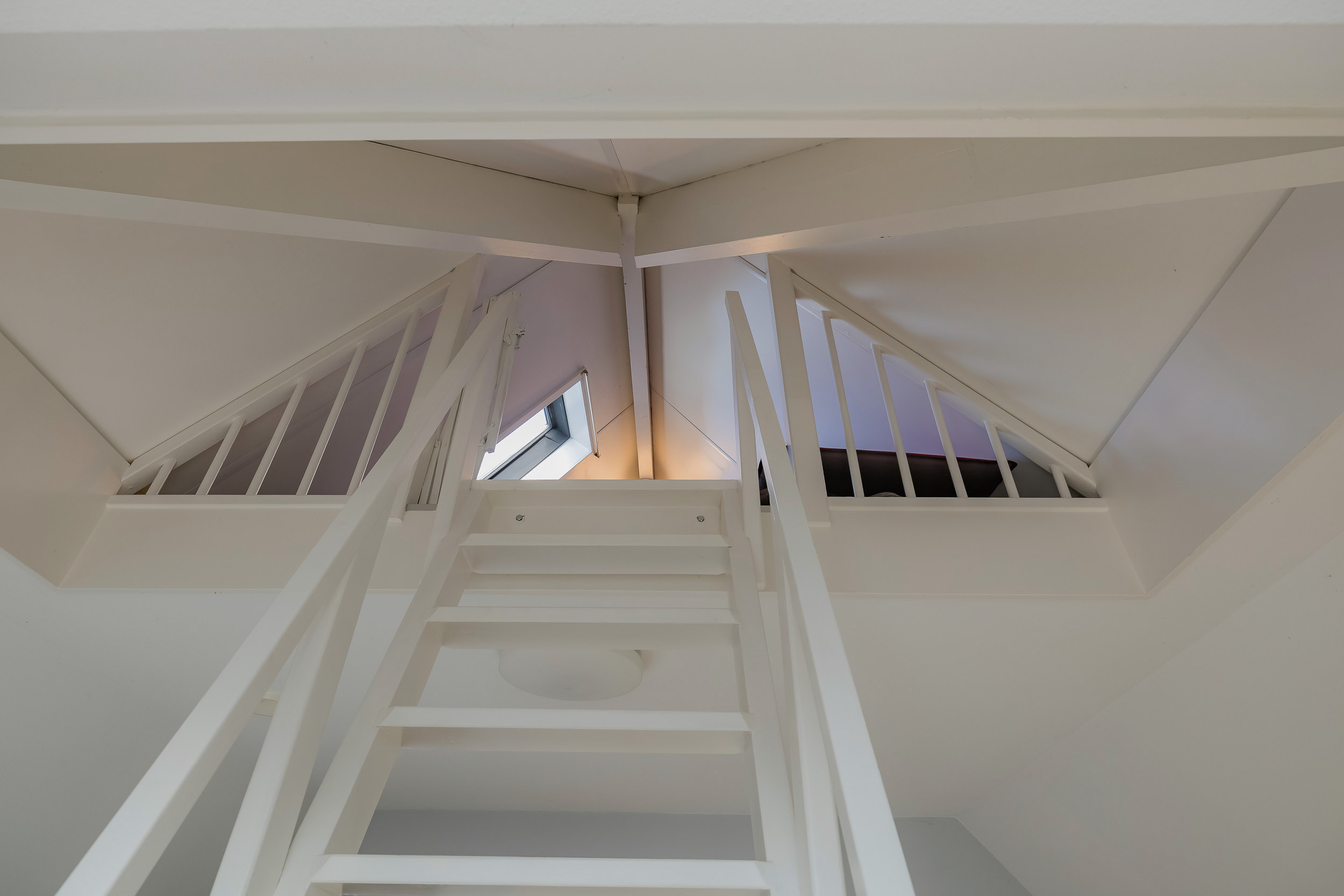 A fixed staircase leads to the second floor with two more (bed)rooms, which are currently used as office space. From the back room, you have access to the boiler room with central heating system (2016) and the heat recovery ventilation system.