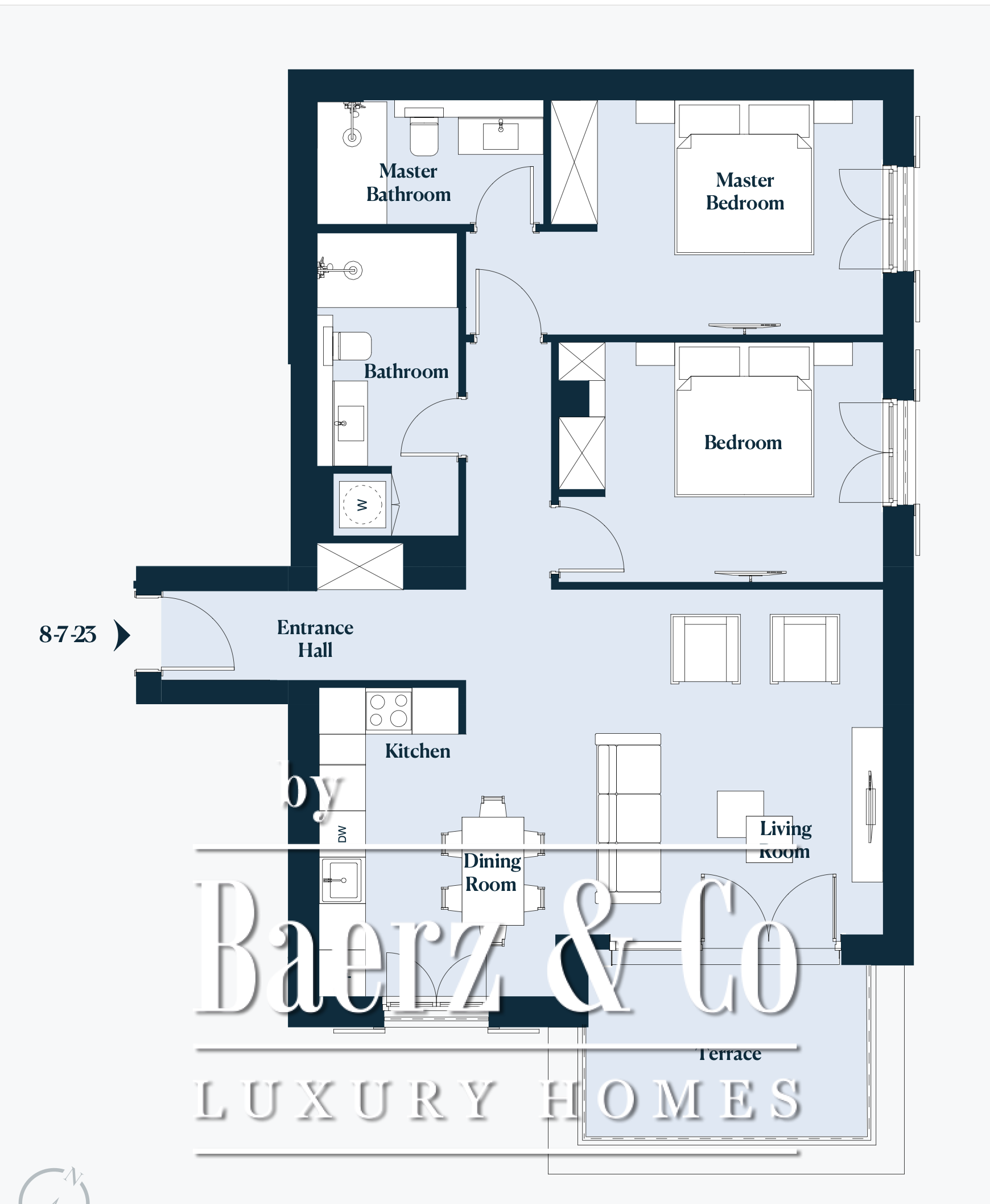 Two bedroom apartment Tivat offers a refined residence where panoramic sea and mountain views frame everyday living. The apartment spans 84 m², defined by open-plan living and dining areas that flow seamlessly onto spacious balconies and terraces. Bright interiors are elevated by custom made fitted furniture, floor-to-ceiling wardrobes, internal storage, and underfloor heating in both bathrooms. A wind-free air-conditioning system ensures year-round comfort, while every surface and detail reflects high quality finishes and sophisticated design.