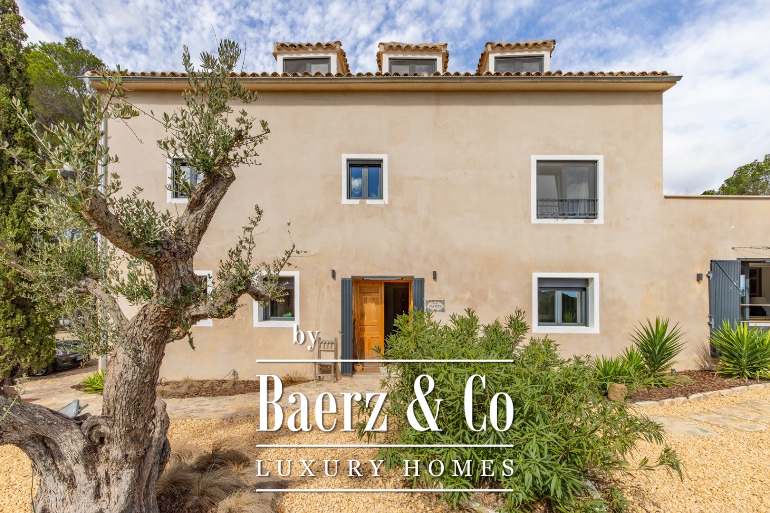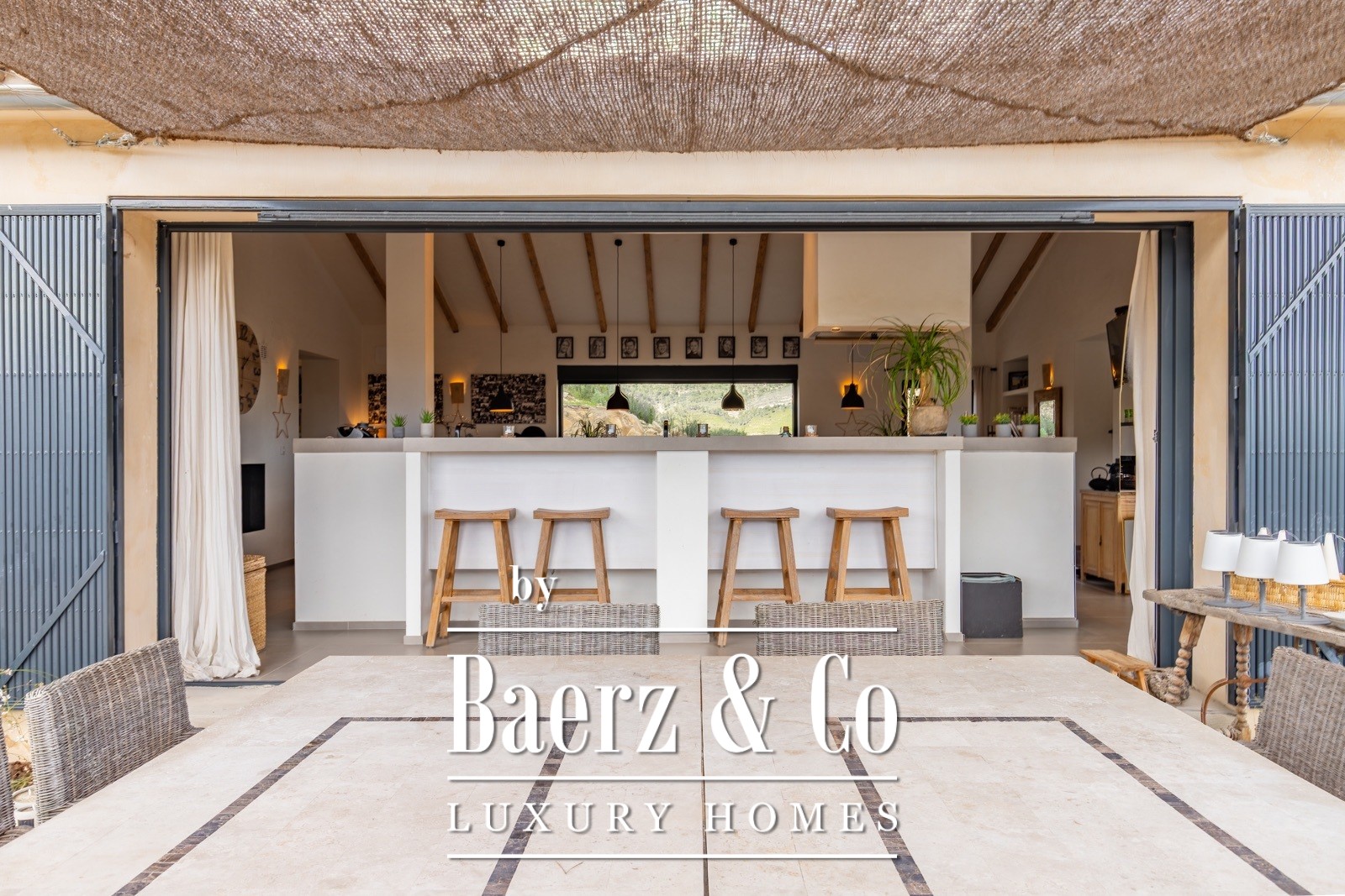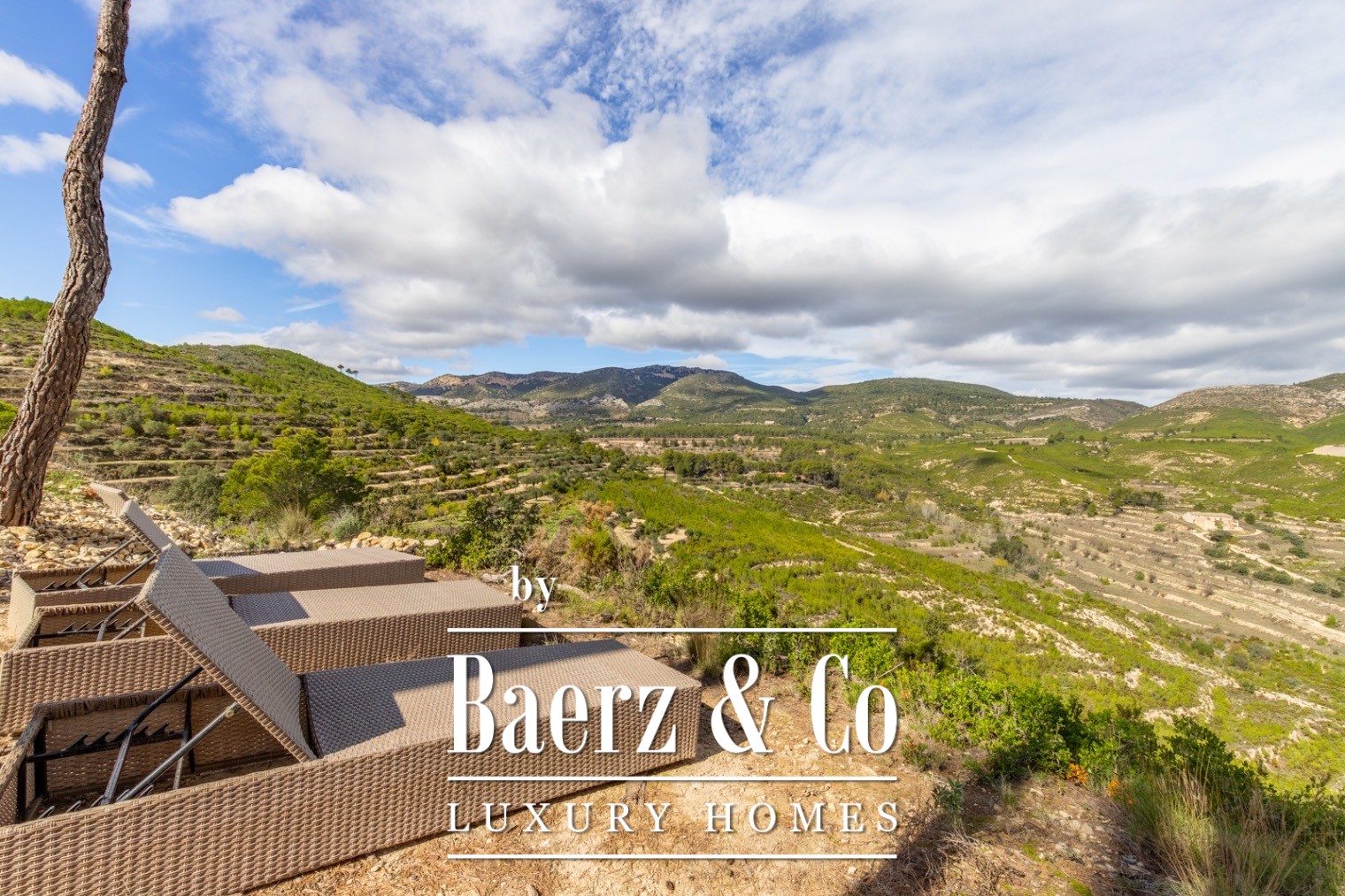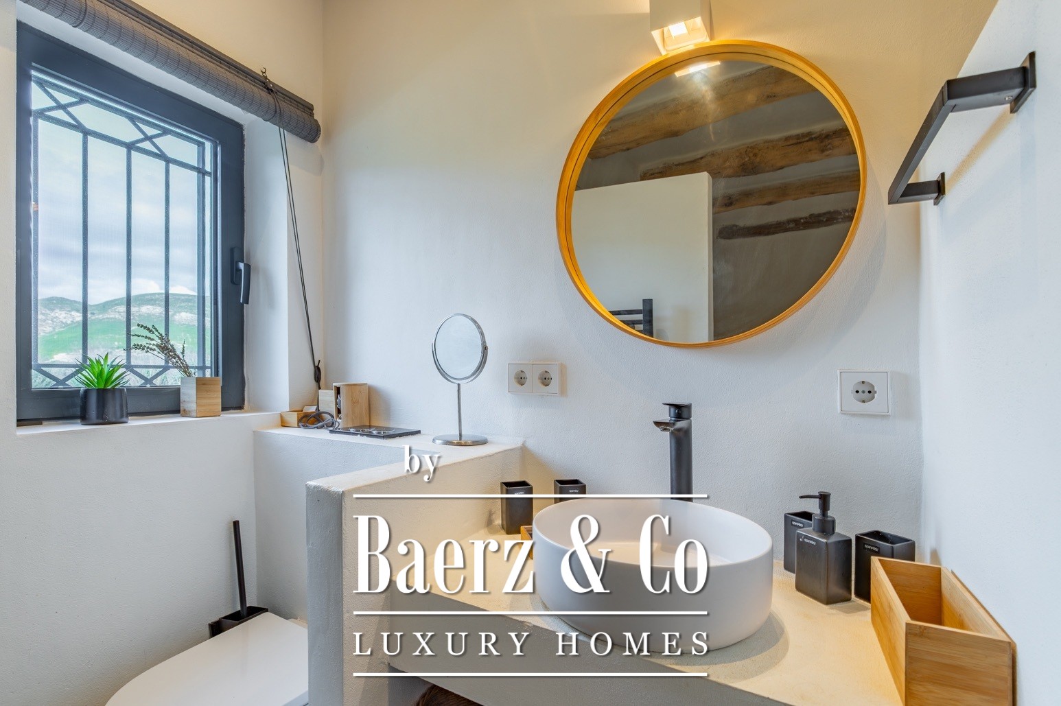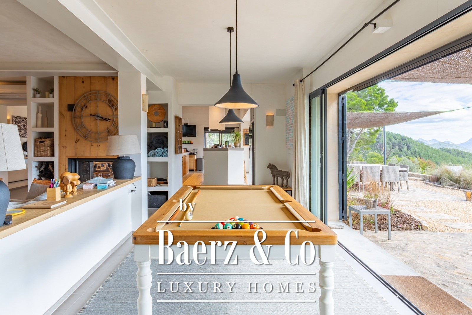 Finca Torremanzanas stands as a rare property type in one of Spain’s most tranquil inland regions. Set on 18 hectares of lush, Mediterranean land at 850 meters altitude, this beautifully revived estate is just 3 km from the village of Torremanzanas and offers panoramic views of Puig Campana. Thoughtfully renovated in 2022, the 450 m² main house merges refined modern finishes with authentic Mediterranean character. Each living space is bright and elegantly restrained, opening to a landscape planted with olive, almond and walnut trees.