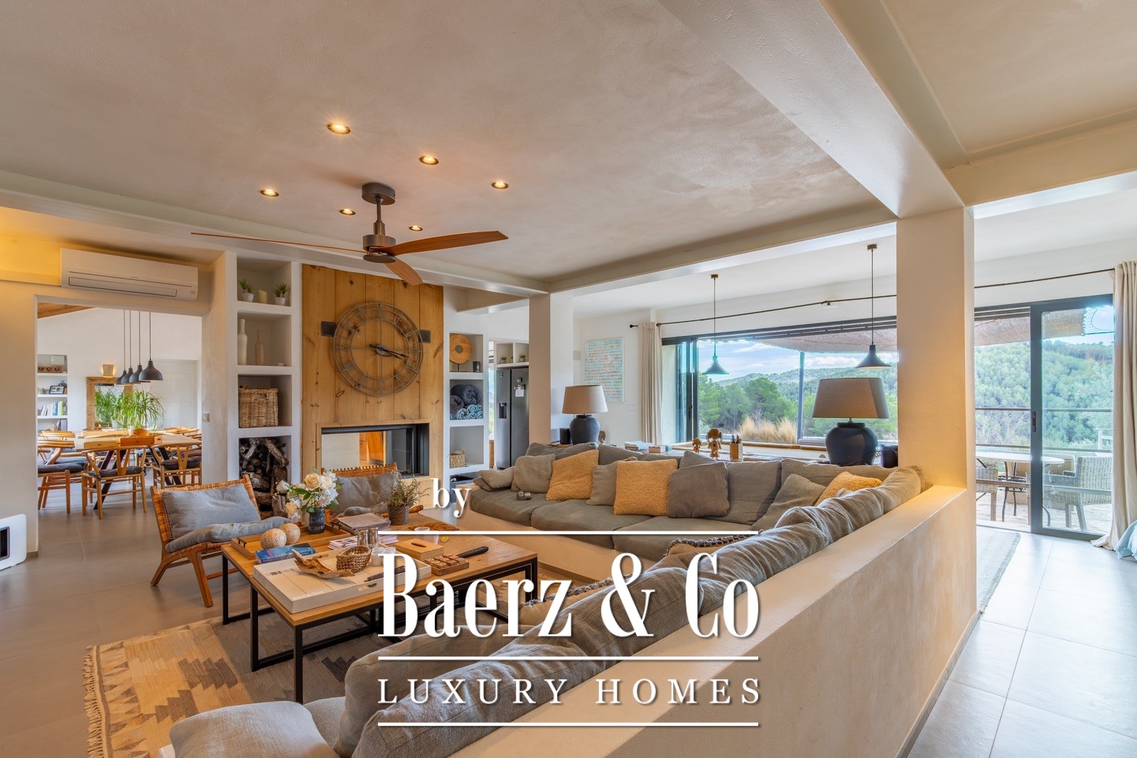 Seven bedrooms and five bathrooms ensure comfort and privacy, including two en-suite and an additional outdoor bathroom. The kitchen is equipped with Miele and Smeg appliances. Light filters through spacious terraces, while a large heated pool and fully fenced areas reinforce an atmosphere of security and calm. The estate’s infrastructure offers genuine independence, with natural spring water storage of 21,500 liters, 35 solar panels with advanced lithium batteries, and a 23 kVA emergency generator.