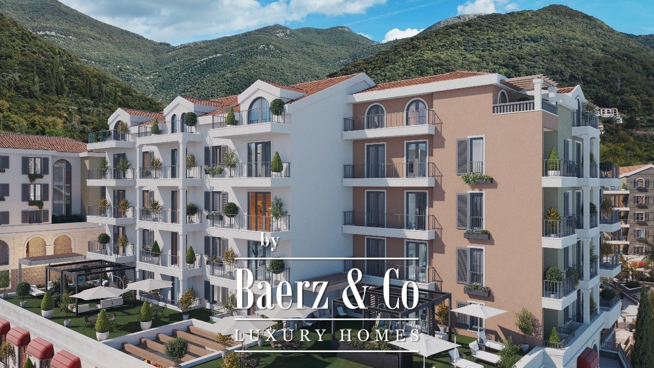 Apartment Tivat offers a composed retreat just 500 metres from the Adriatic shoreline and close to the city’s heart. This apartment, occupying 63 m² on the fifth floor of a new five-storey development, comprises two bedrooms, one bathroom, a hallway, a living room with bed, kitchen and dining area, and a terrace. The interior will be delivered with finished floors and tiles, a fully equipped bathroom, and air conditioning, meeting practical needs with enduring materials.