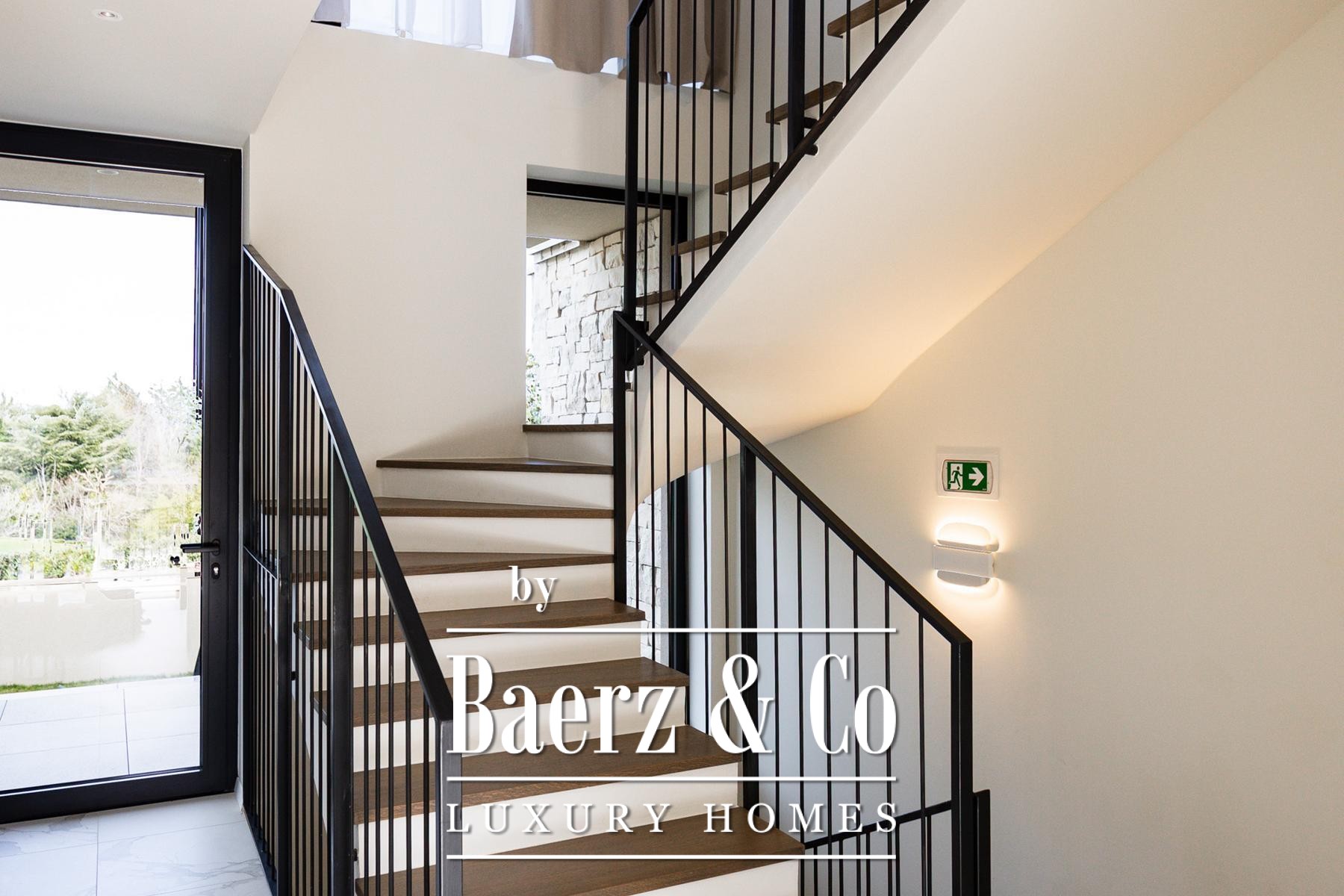 The villa’s layout is crafted to balance comfort and functionality. The basement opens to a hallway, entertainment area, two bedrooms, bathroom, storage, and technical spaces. The ground floor welcomes you with two additional bedrooms, two bathrooms, plentiful storage, and balcony access. Ascending to the first floor, a light-filled open living room, kitchen and dining area connect seamlessly with a generous terrace, inviting relaxed outdoor living and cinematic views.