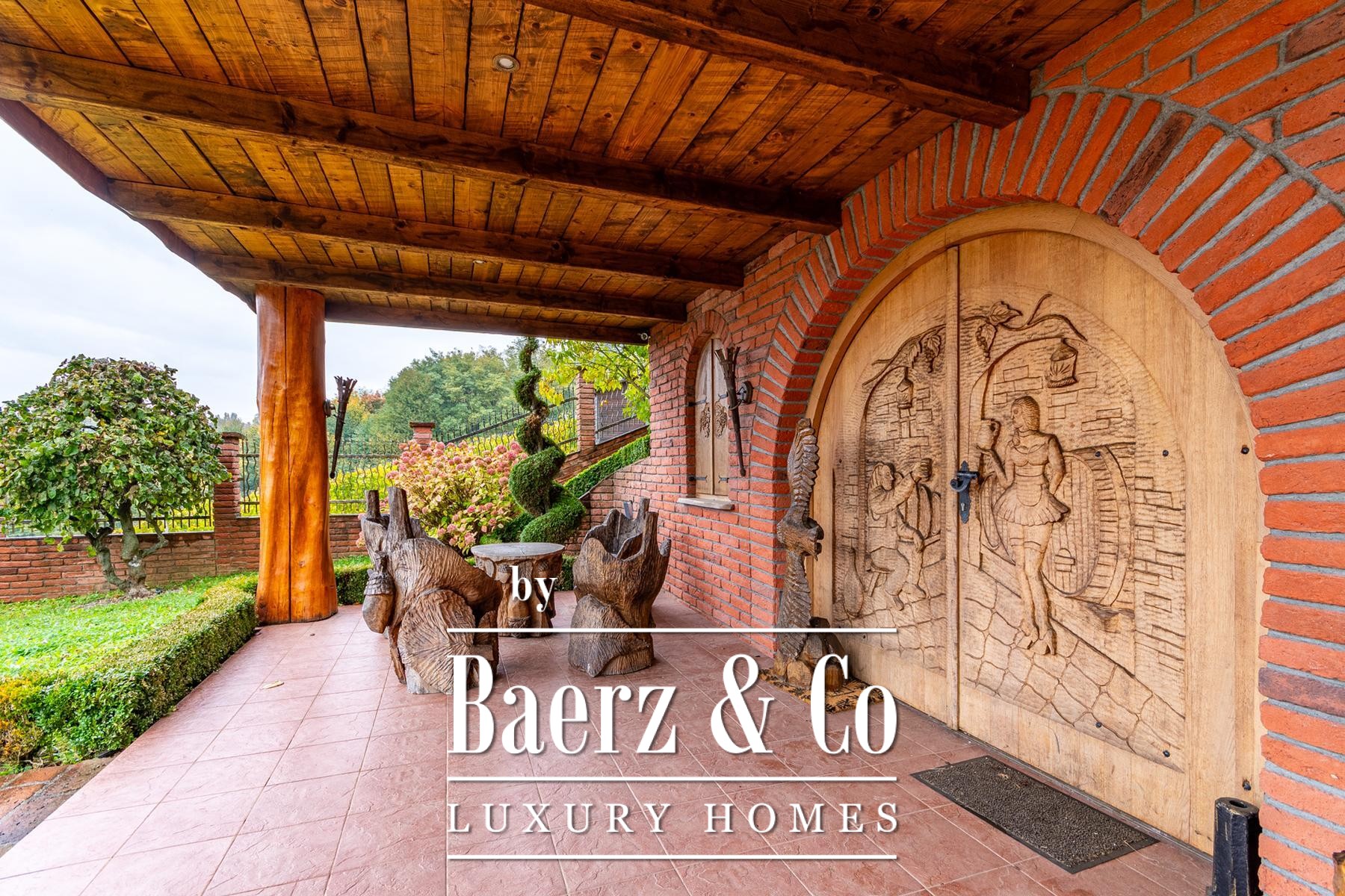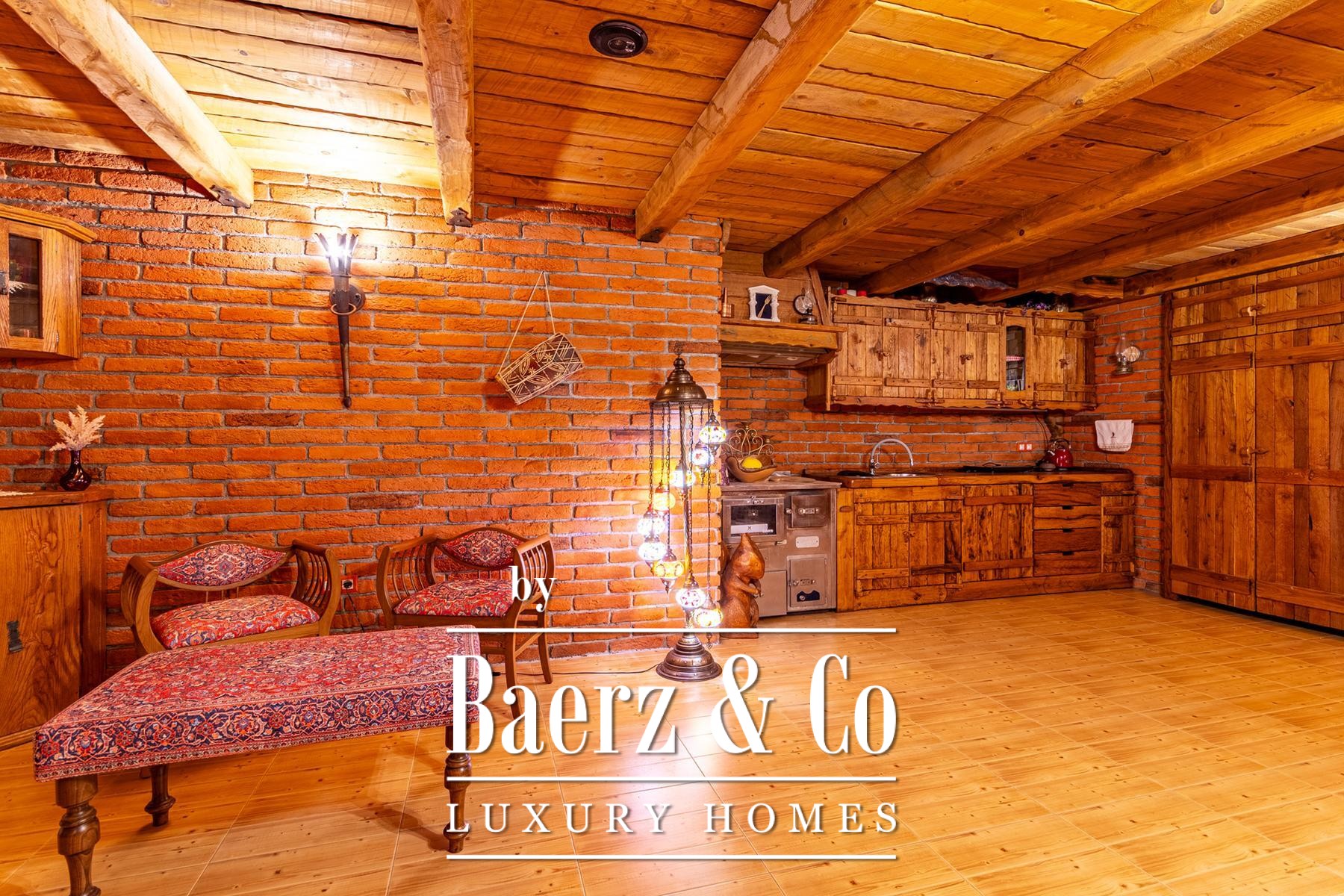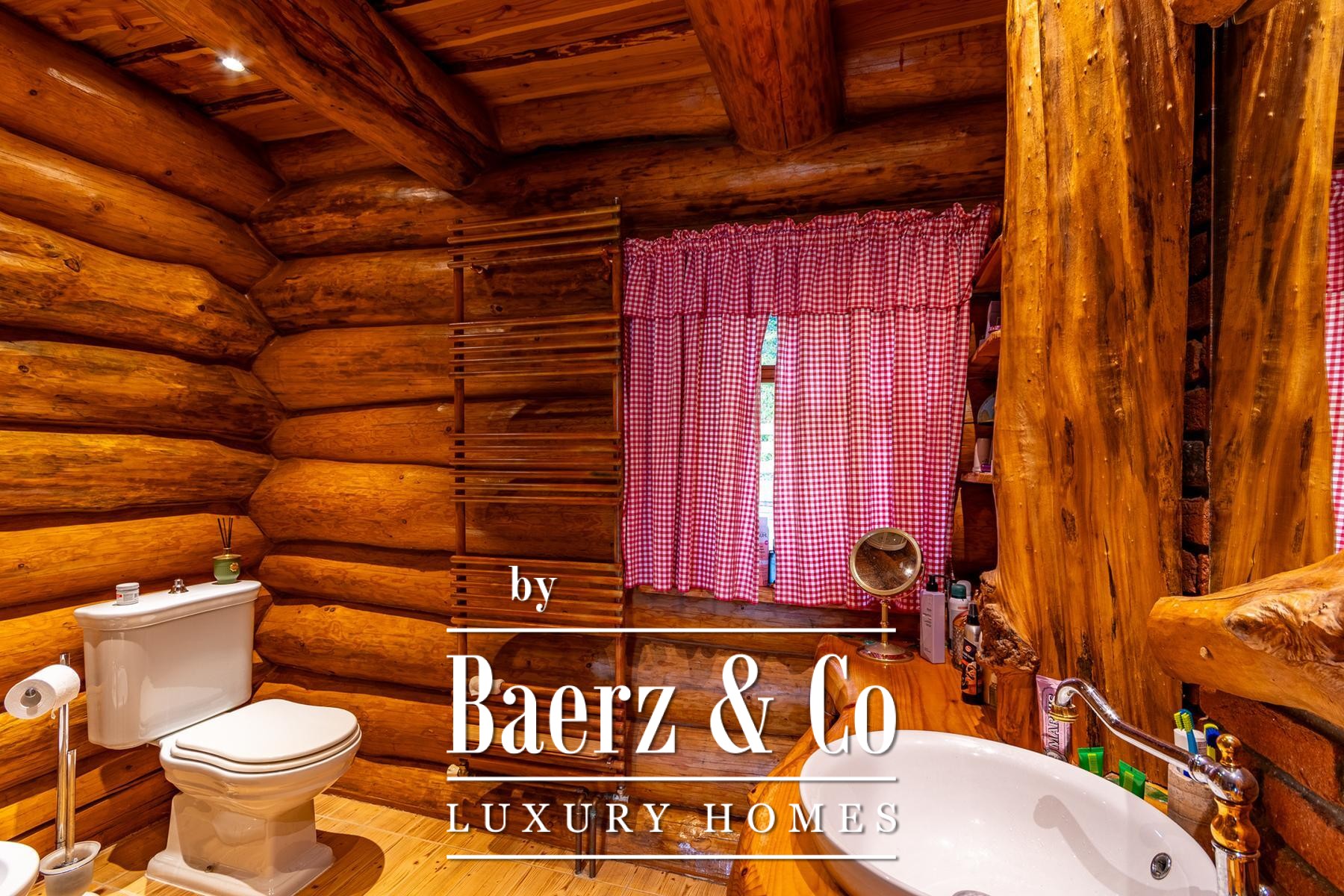 an outdoor toilet. This unique log house, considered by many as one of the most beautiful in Europe, offers more than just a property - it provides an experience.Set on a 3,500 m² plot surrounded by forest and vineyards, the property boasts carefully landscaped grounds. It offers complete privacy, breathtaking panoramic views, and a lush green oasis with a variety of fruit trees - apples, plums, figs, aronia, raspberries, and many more.For more information or to arrange a viewing, please feel free to contact us.