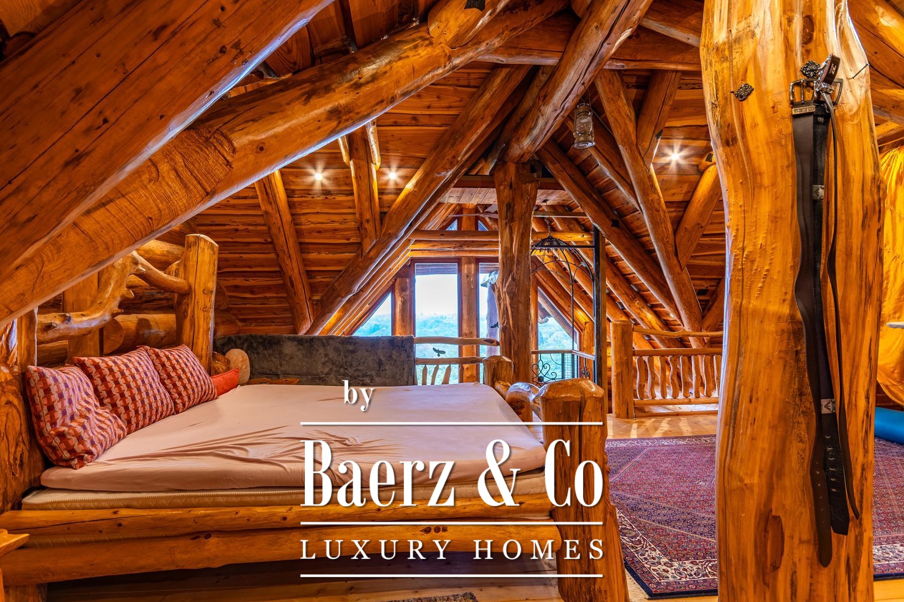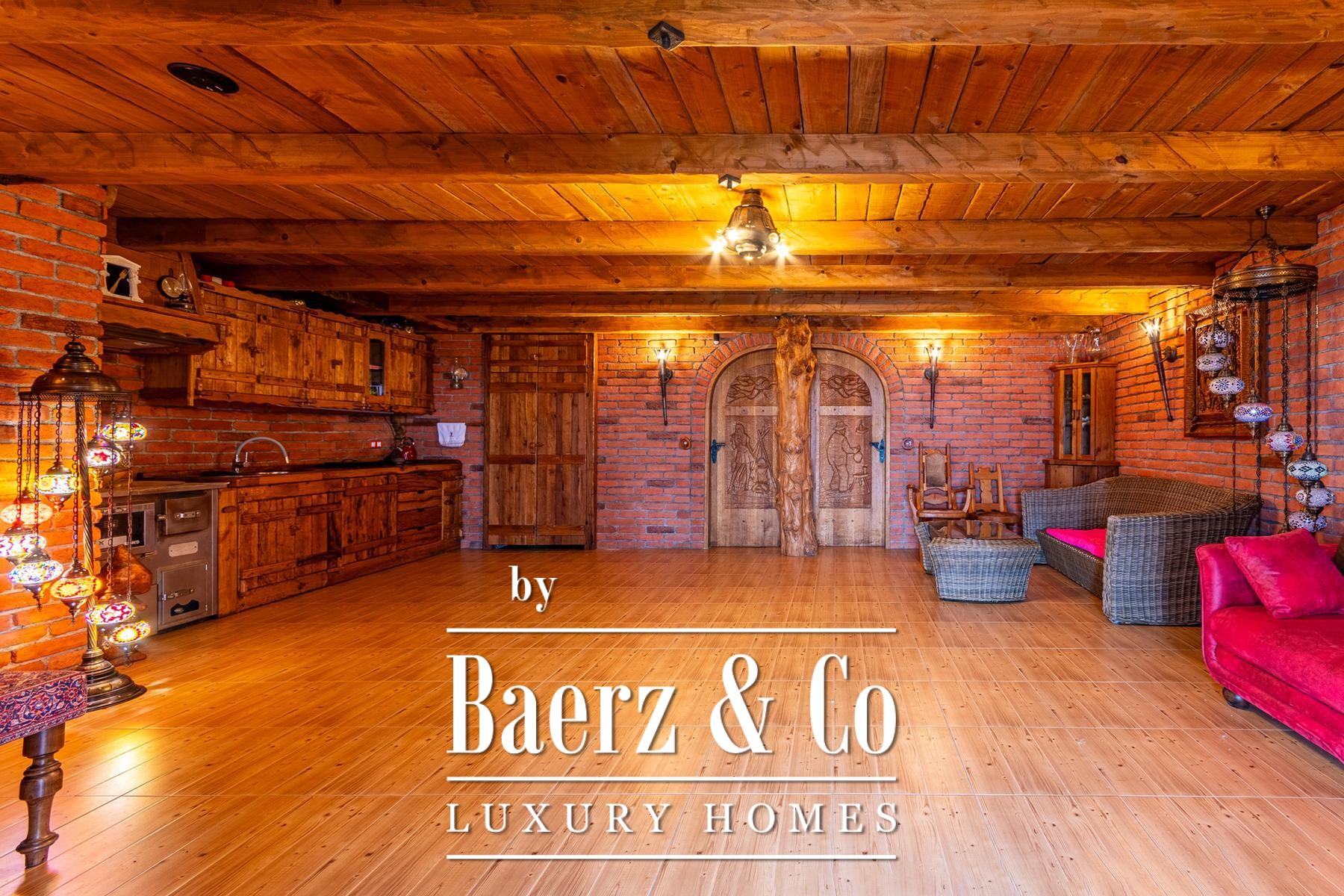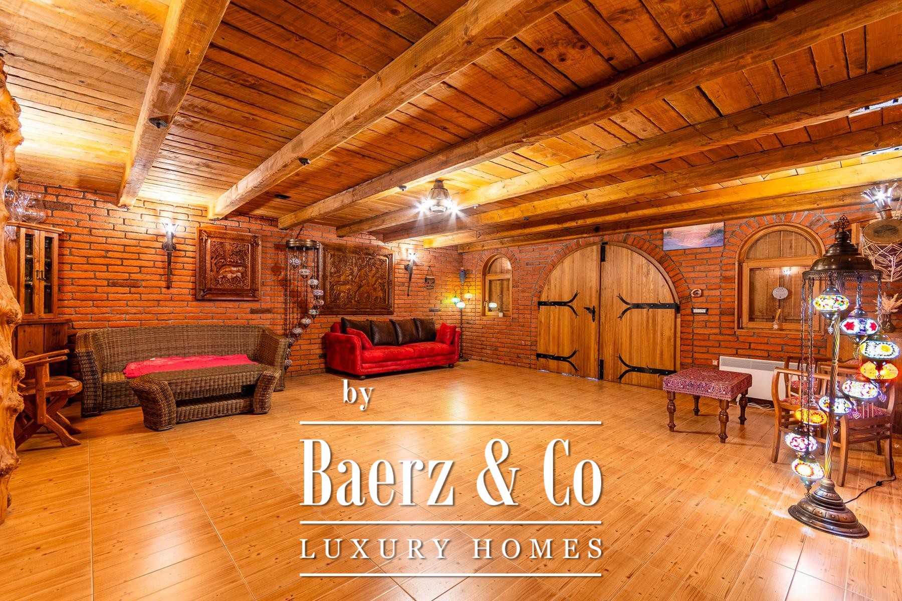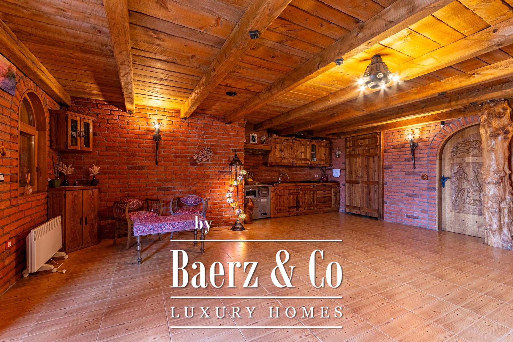 an outdoor toilet. This unique log house, considered by many as one of the most beautiful in Europe, offers more than just a property - it provides an experience.Set on a 3,500 m² plot surrounded by forest and vineyards, the property boasts carefully landscaped grounds. It offers complete privacy, breathtaking panoramic views, and a lush green oasis with a variety of fruit trees - apples, plums, figs, aronia, raspberries, and many more.For more information or to arrange a viewing, please feel free to contact us.