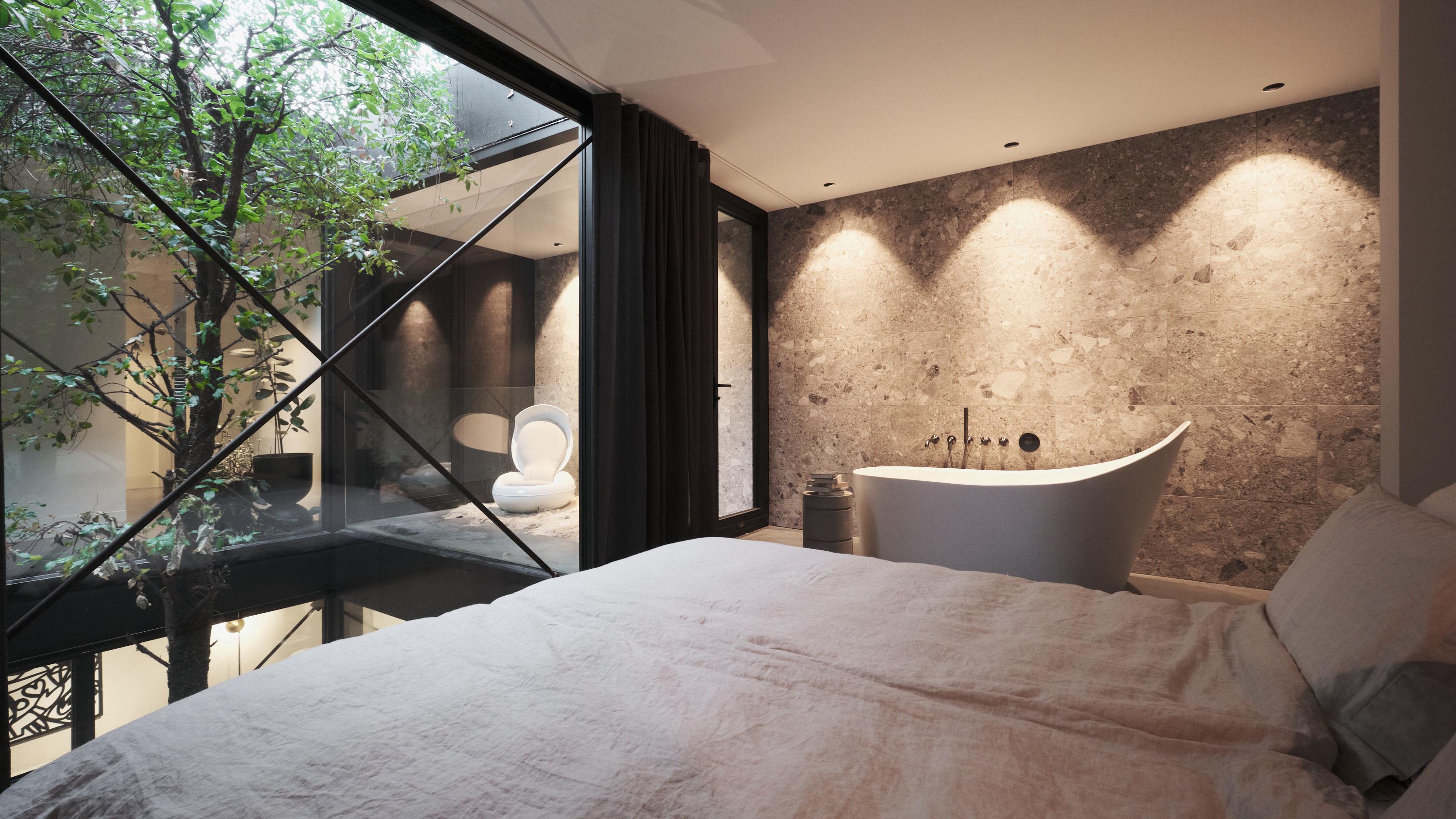 What makes this project particularly special is that the residence and presentation space share the same design mentality, yet were consciously designed as two independent entities. They function completely separately, each with its own character, rhythm, and purpose.
