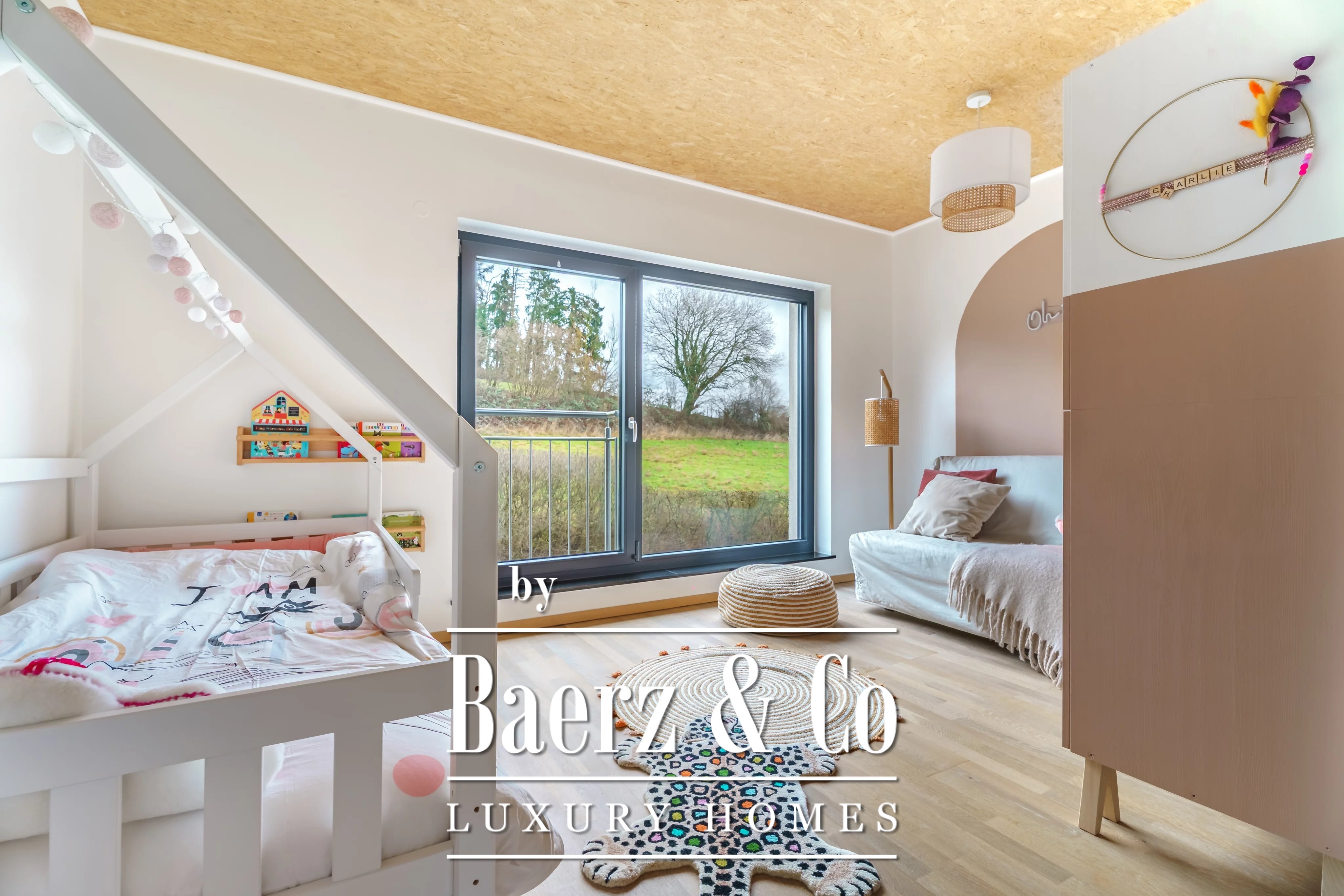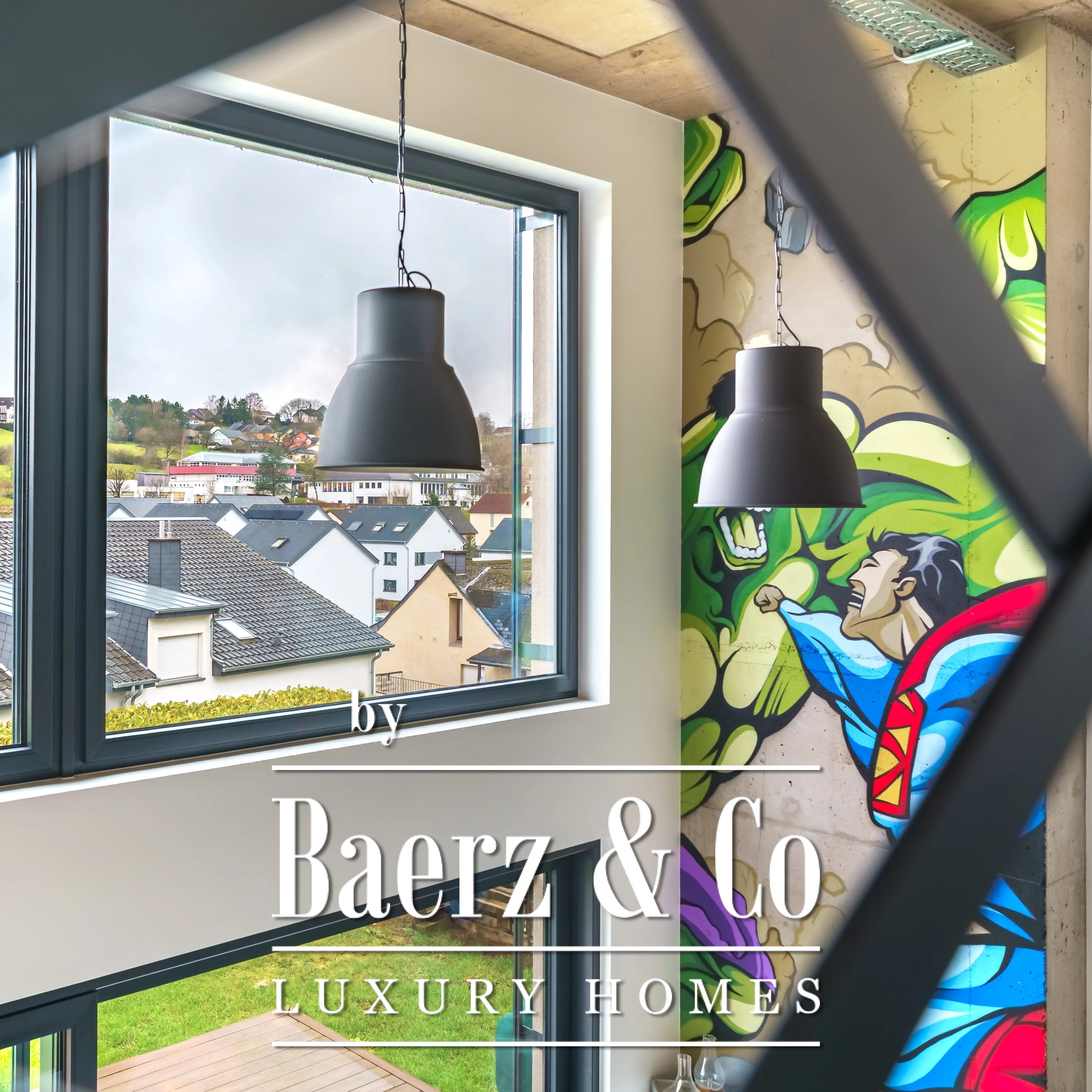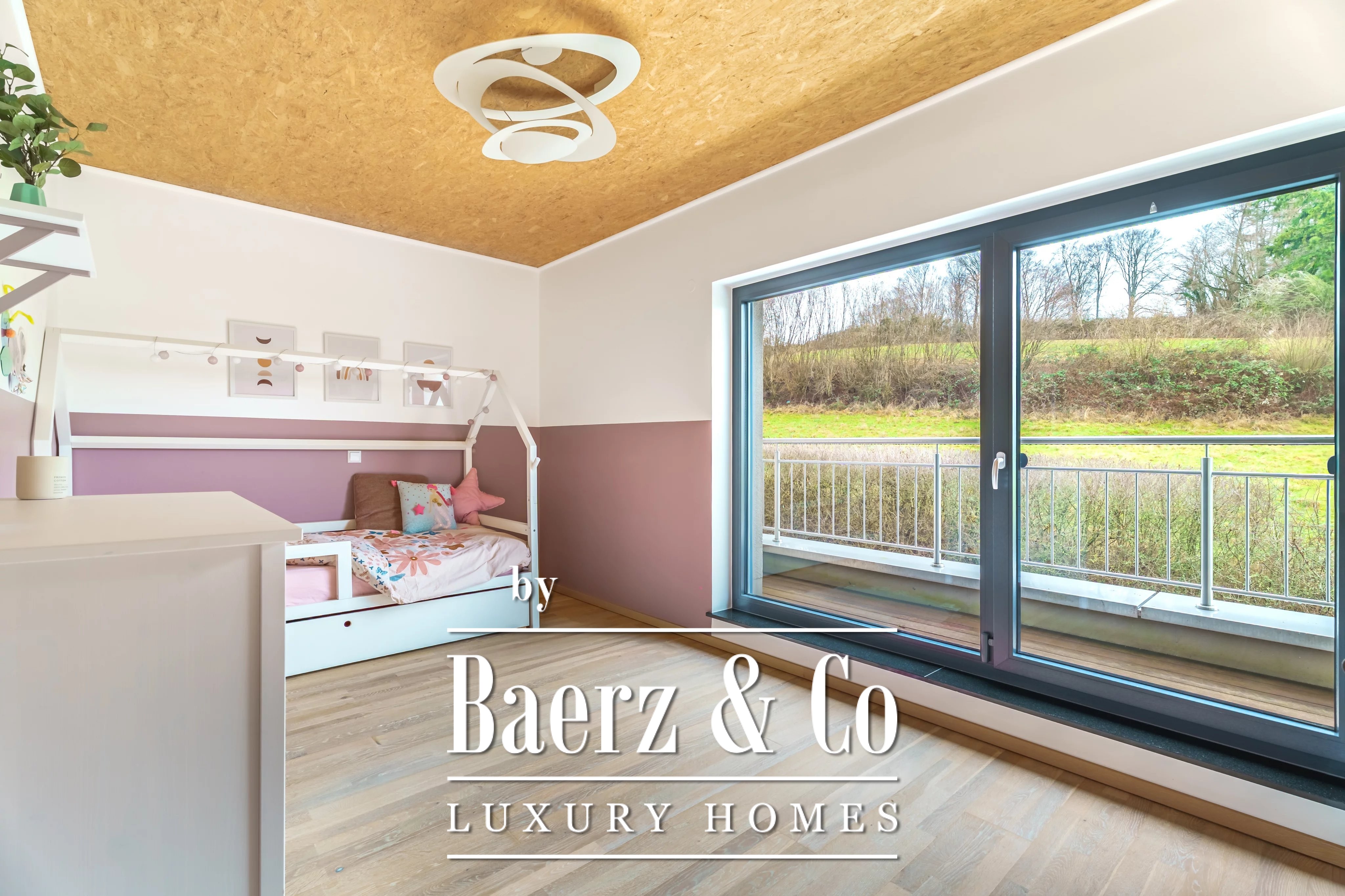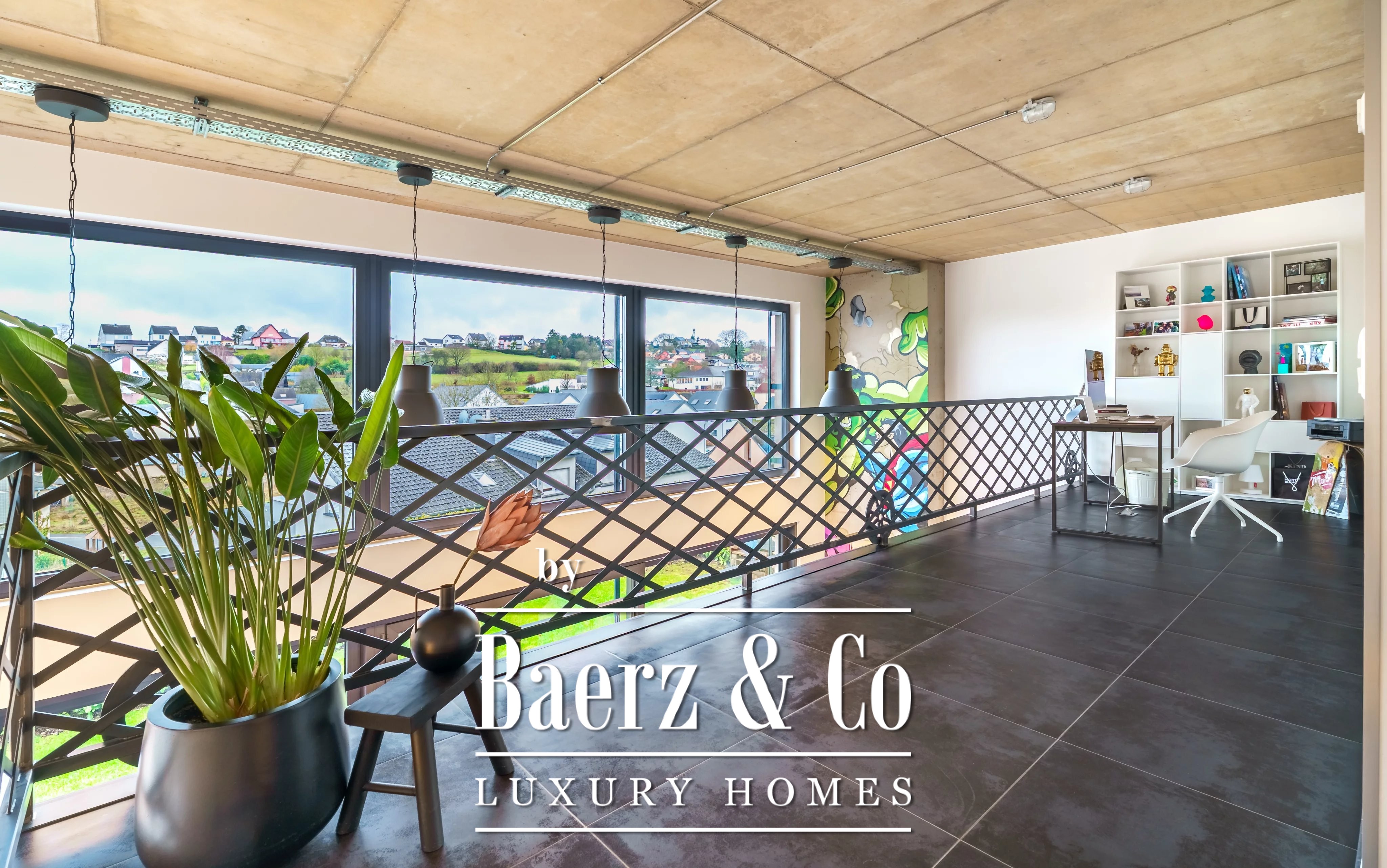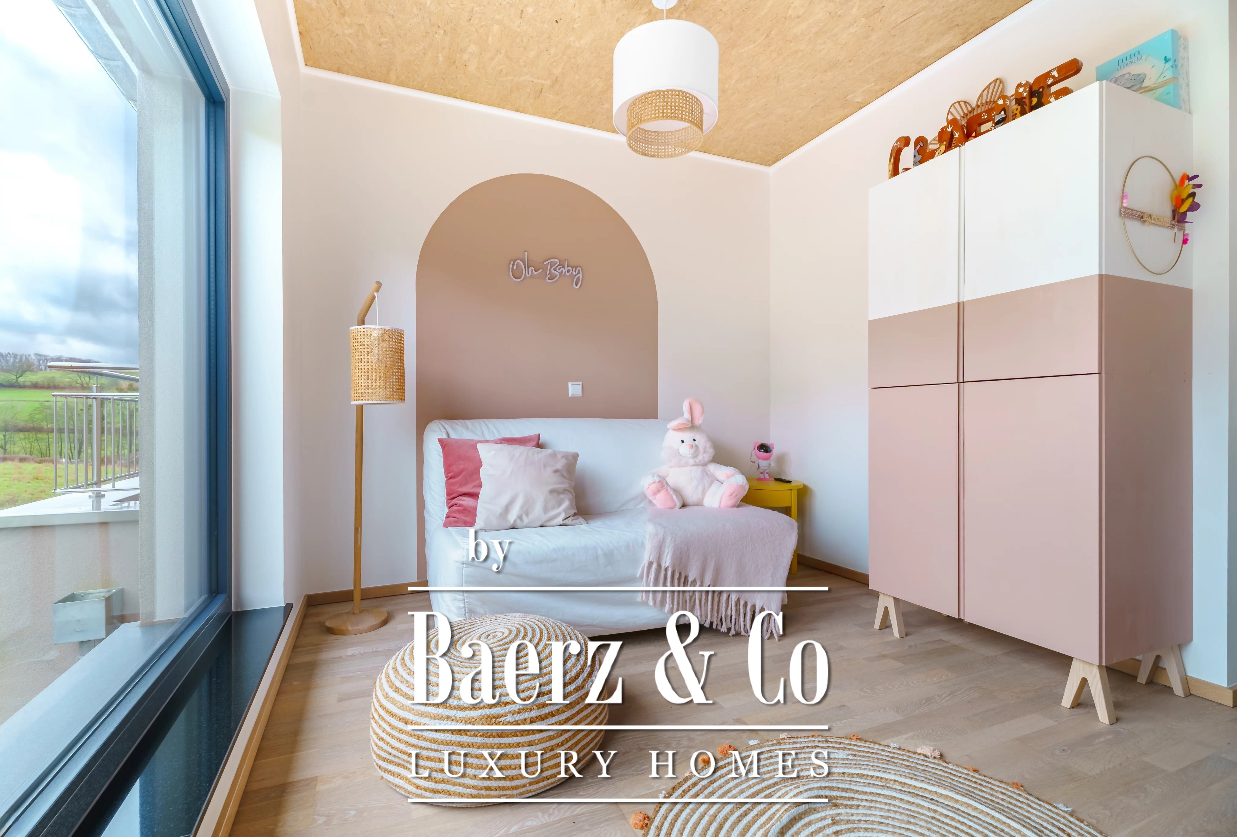 Privacy and security are paramount, further underscored by optical fiber and outdoor lighting. Set on a 348 m² plot with village views, the residence articulates light, space, and discretion for those seeking a prestigious modern retreat in Luxembourg.