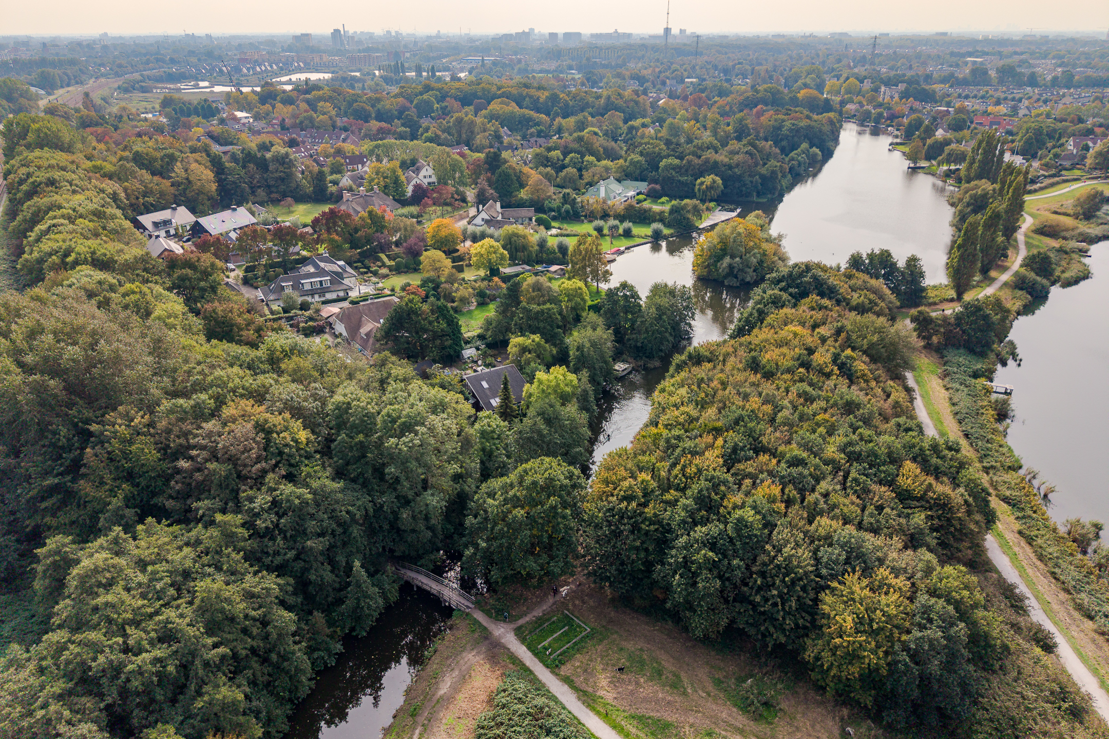 This is a perfect spot for mooring your boat and swimming in peace. There is no through passage, and the property is nestled behind the island. Several other villas are nestled in the greenery surrounding the lake, and only at the other end is there a passage to the Kaag River and the canal leading to Leiden's city center.