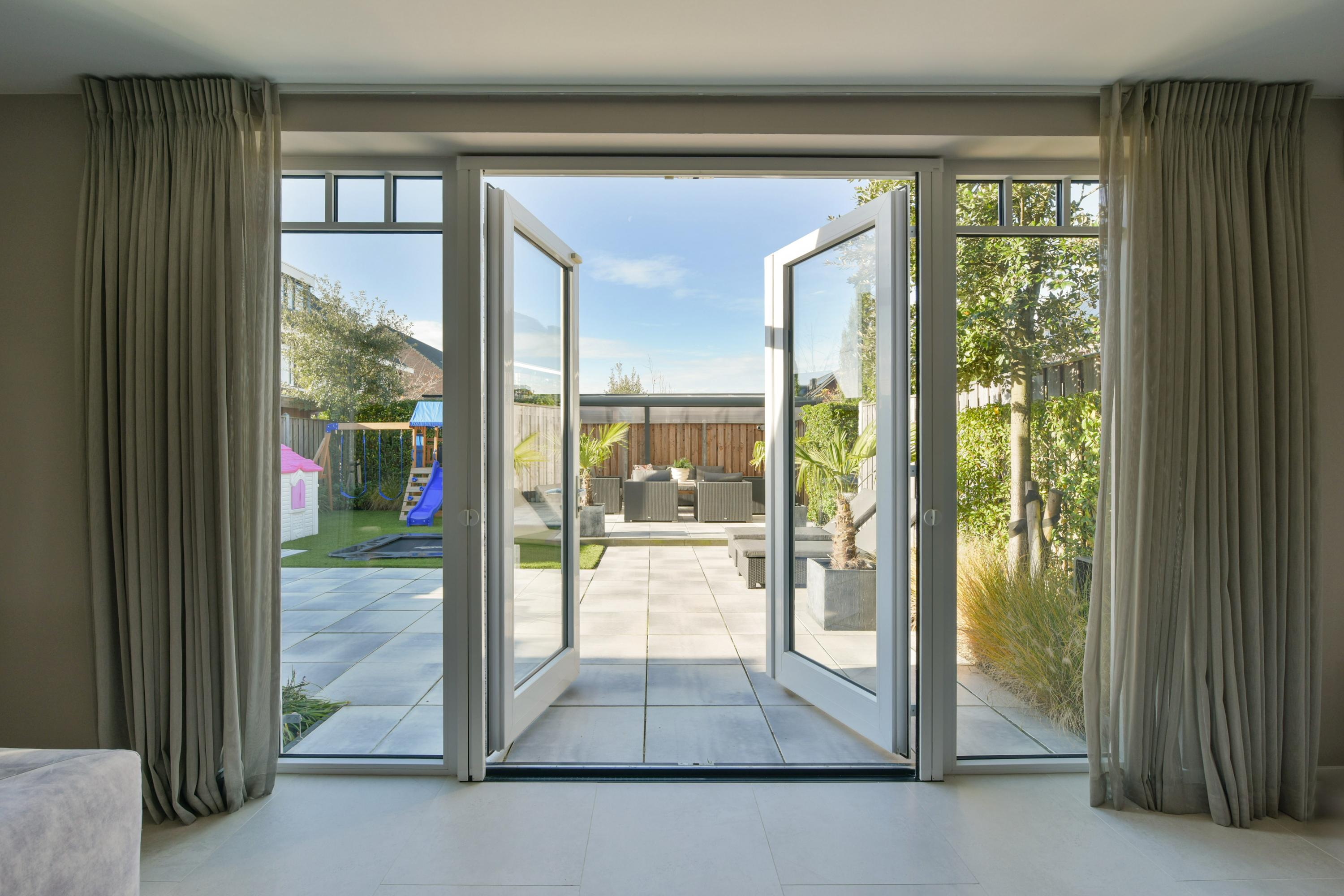 + West-facing garden with veranda, built-in trampoline, multiple terraces, and full irrigation system.