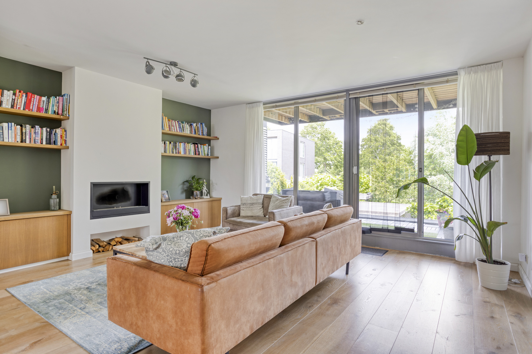 The living spaces are generously proportioned and filled with natural light thanks to large windows. Each residence has its own living room with views of the greenery surrounding the house. The kitchens are practically designed and connect well with the living areas. In total there are three modern bathrooms, and thanks to the distribution over four living levels there is always a quiet place to be found. The bedrooms are spread across all floors, offering space for large beds, desks and wardrobes. The current owners have maintained the property very well; the finish is sleek and contemporary. Thanks to HR++ glazing, aluminium window frames, roof, wall and floor insulation, and 12 solar panels, this home is also energy efficient (energy label A).