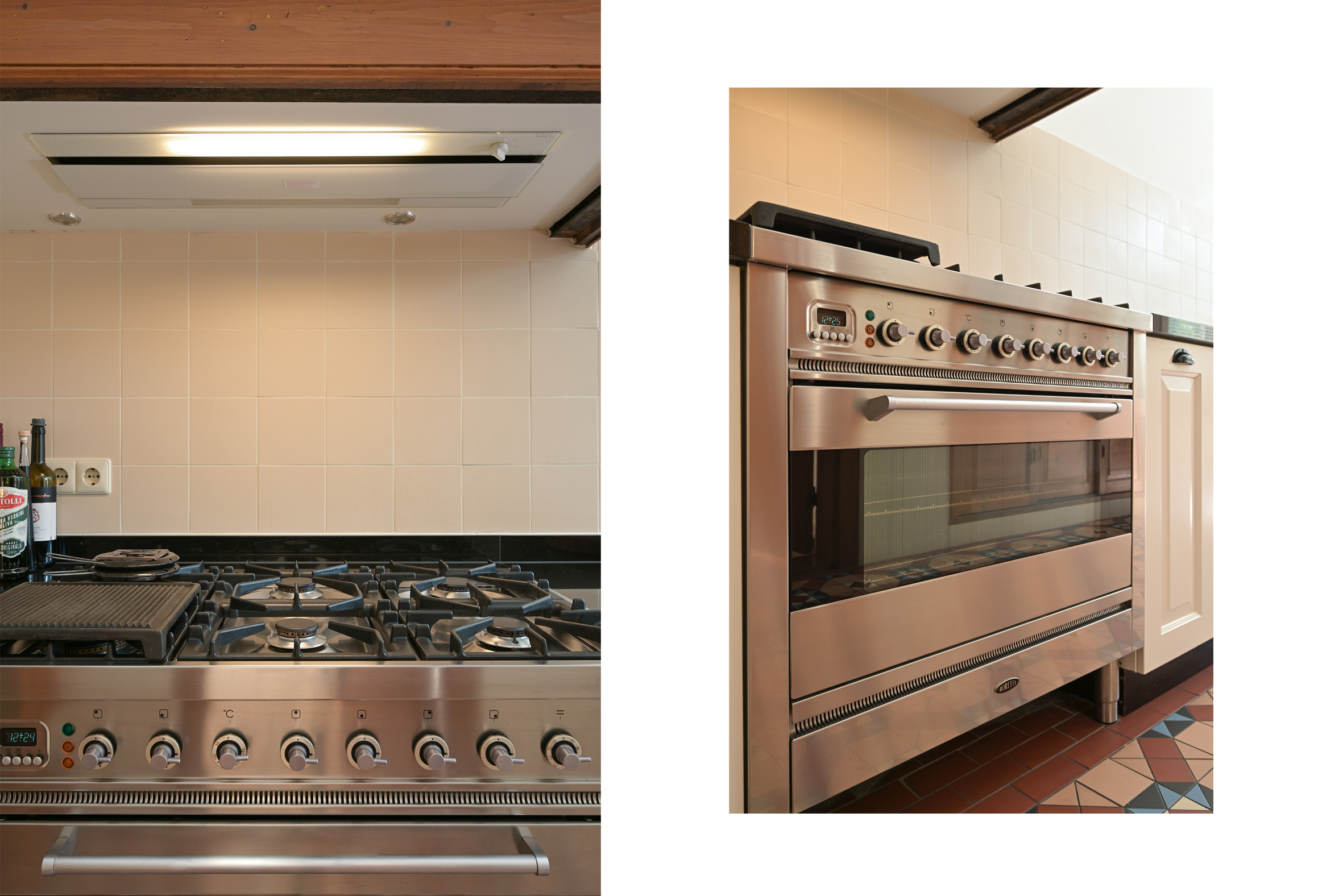 Indeling: entree, ruime hal met marmeren vloeren, tochtseparatie, brede gang met marmeren vloerdelen, fraai trappenhuis met spijltjes, open ruimte onder de trap, moderne wc met fonteintje. Royale brede kamers met marmeren schouwen (met in de voorkamer een houthaard), hoge geornamenteerde plafonds, suite separatie met schuifdeuren en vaste kasten en fraaie parketvloeren. De achterkamer heeft dubbele deuren naar de serrekamer en is eveneens in verbinding met de royale moderne keuken voorzien van (inbouw)apparatuur aan de ene zijde en een prachtige originele ingebouwde servieskast aan de andere zijde. Zowel de keuken als de serrekamer bieden toegang tot de ruime zonnige achtertuin met diverse schuurtjes en een achteringang (afsluitbare toegangsdeur aan de straat). Onder de keuken ligt een praktische kelderruimte van ca. 14 m2 en 1,81m hoog.