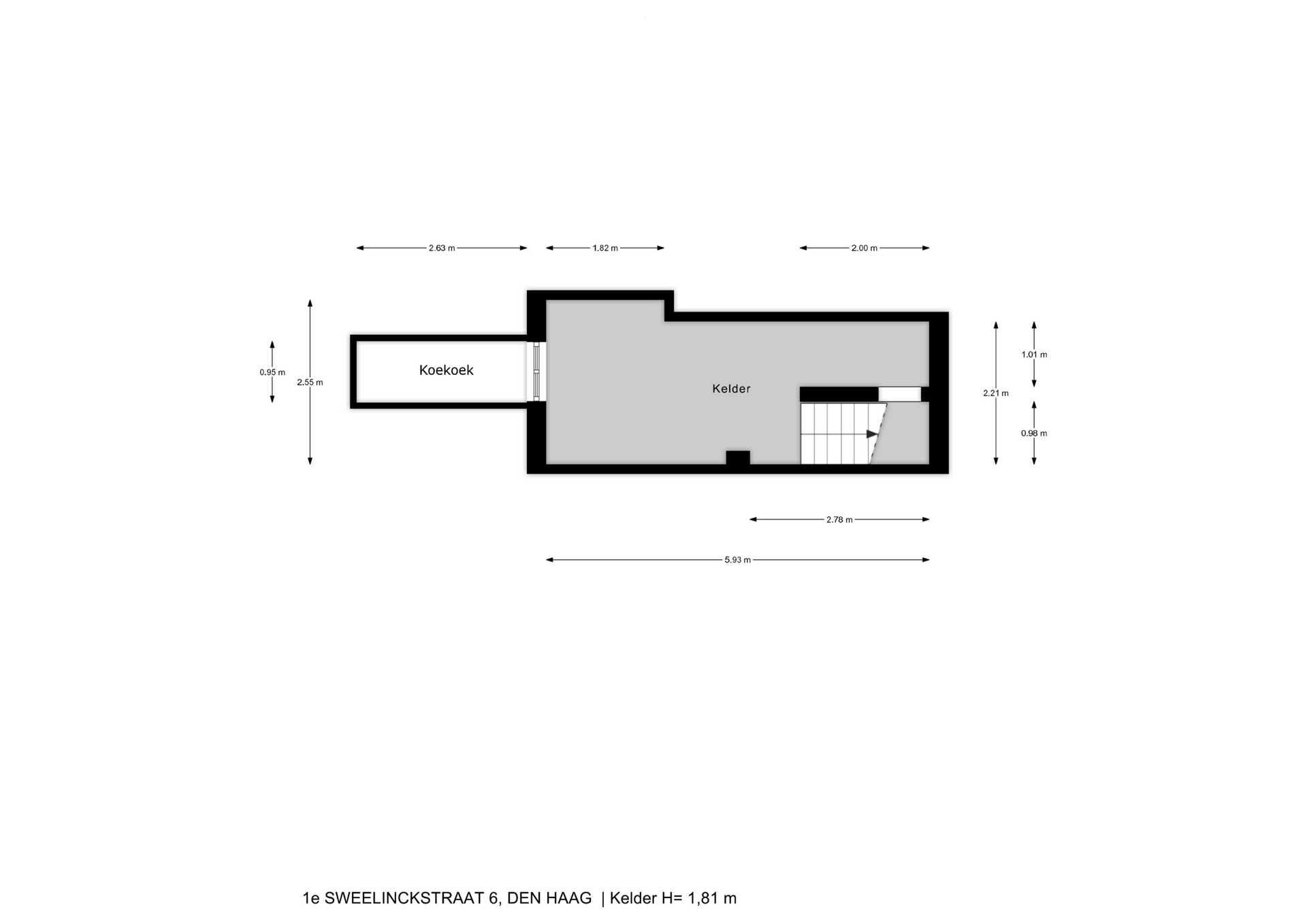 - Kelder stahoogte (ca. 1,81 meter)
