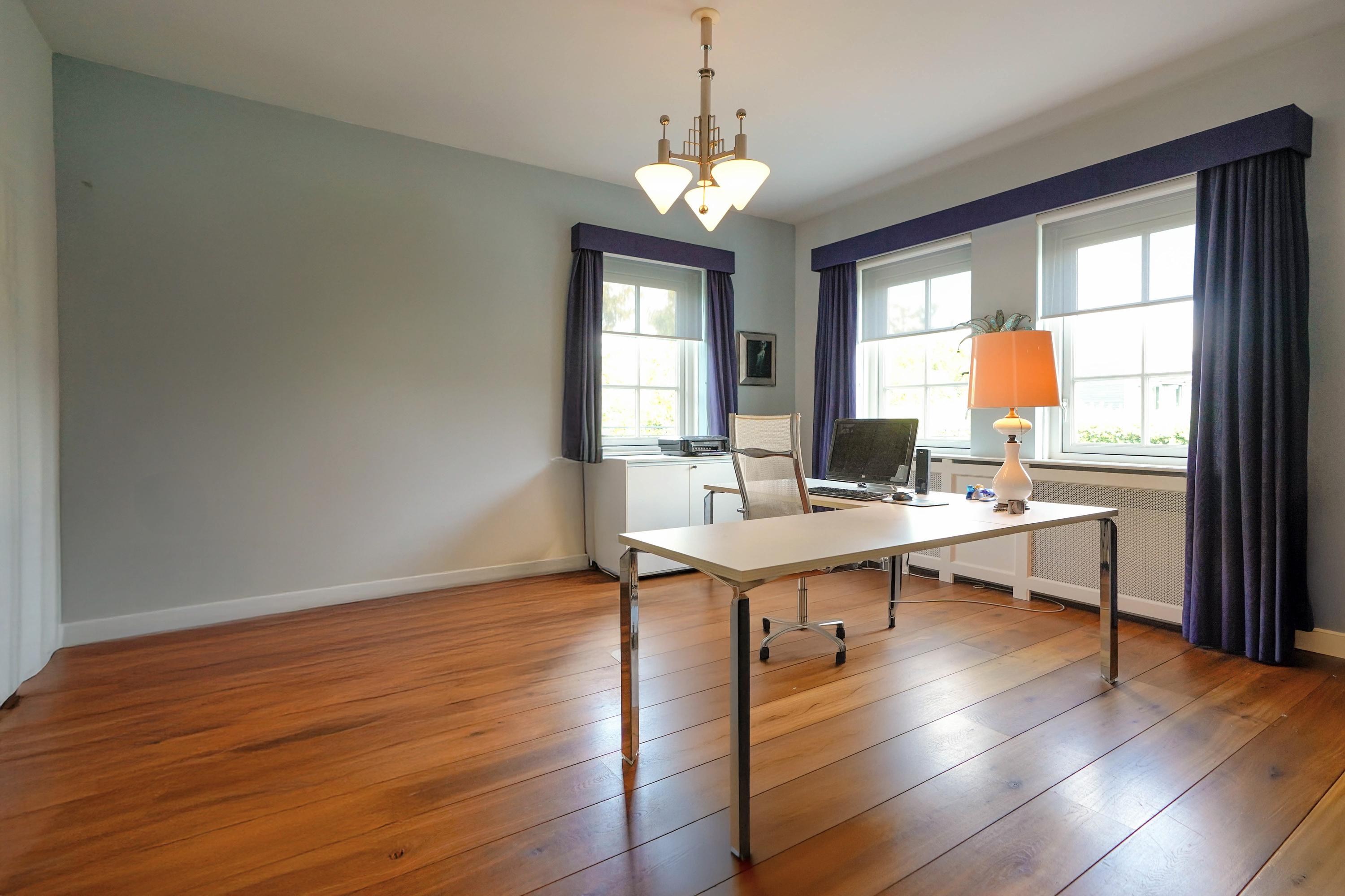A spacious landing gives access to all rooms. The ceiling height is 2.9 meters throughout. Solid wood flooring (except in bathroom and toilet) is laid over the concrete subfloor across all rooms.