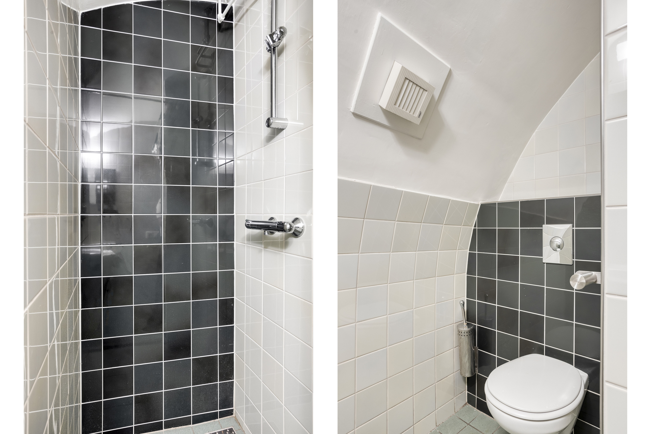 Hier bevinden zich nog eens twee ruime slaapkamers, beide vergroot middels een dakkapel. Daarnaast is er een separaat toilet en een derde badkamer met elektrische vloerverwarming, ligbad/douchecombinatie, wastafel en een aansluiting voor de wasmachine aanwezig. Vanuit de hal is via de vlizotrap de ruime bergzolder te bereiken. Hier bevind zich de CV ketel en een luik, dat toegang geeft tot het dak voor onderhoud.