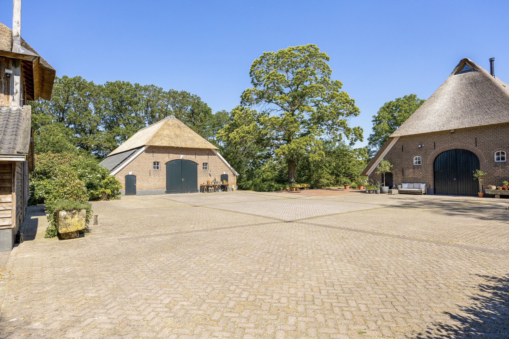 Deze prachtige boerderij, met een woonoppervlakte van 438 m² en een inhoud van ruim 2.500 m³, vormt met de omliggende landerijen van circa 7,5 ha een ronduit imposant ensemble. Er is veel afwisseling in het beeld; een eikenbos, een beukenbos, grasland, bloemenweide, een vistrap, een droom van een siertuin… En, het gerucht gaat zelfs dat er een amoureus beverkoppeltje een liefdesnest aan het water hebben gebouwd. Romantiek ten top! In het hart ligt de fraaie hoeve, met het uitzicht op de Berkel.