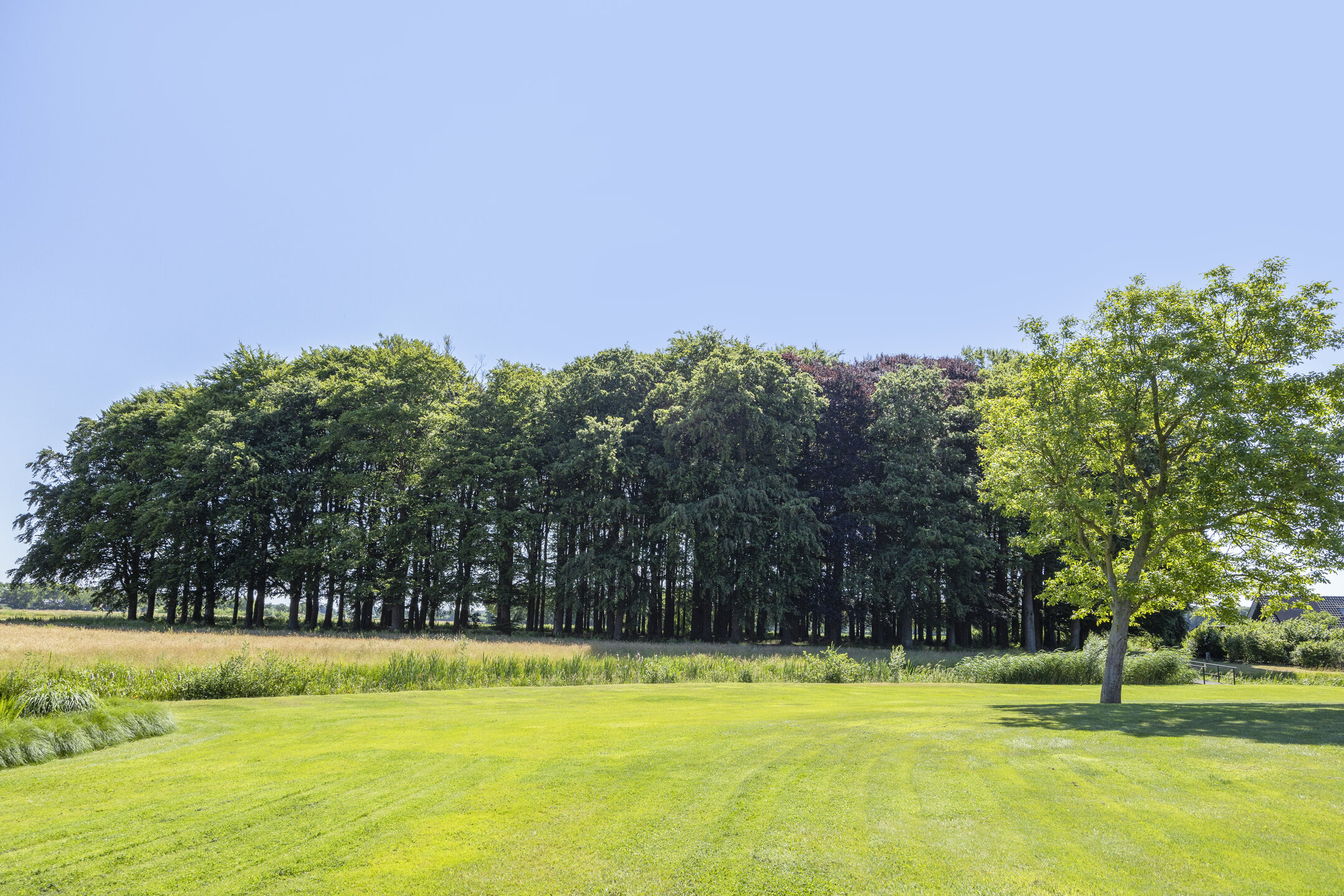 Wanneer een bureau als Eelerwoude zich met de groeninrichting bemoeit, dan weet je gewoon zeker dat het goedkomt. En zo geschiedde. De tuinen rondom het huis worden weer omzoomd door de gracht, waar het glasheldere water van de Berkel vrolijk doorheen klatert. Vanuit het huis is het wonen gericht op de Berkel en het dorpje verderop. Aan de rechterzijde heeft u uitzicht op het beukenbos, waar u via het bruggetje naartoe kunt om een wandeling te maken; tussen de bomen ligt een pad.