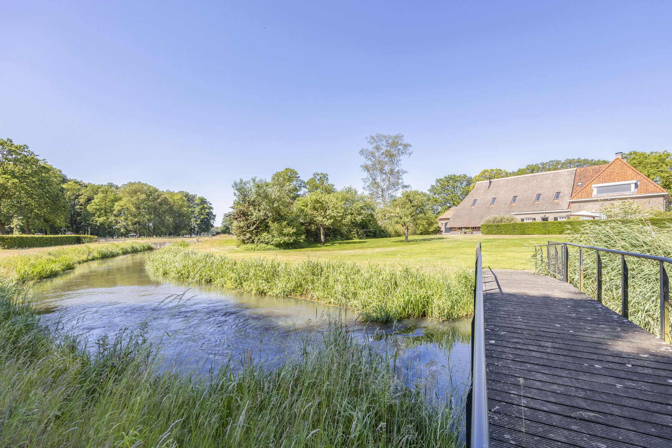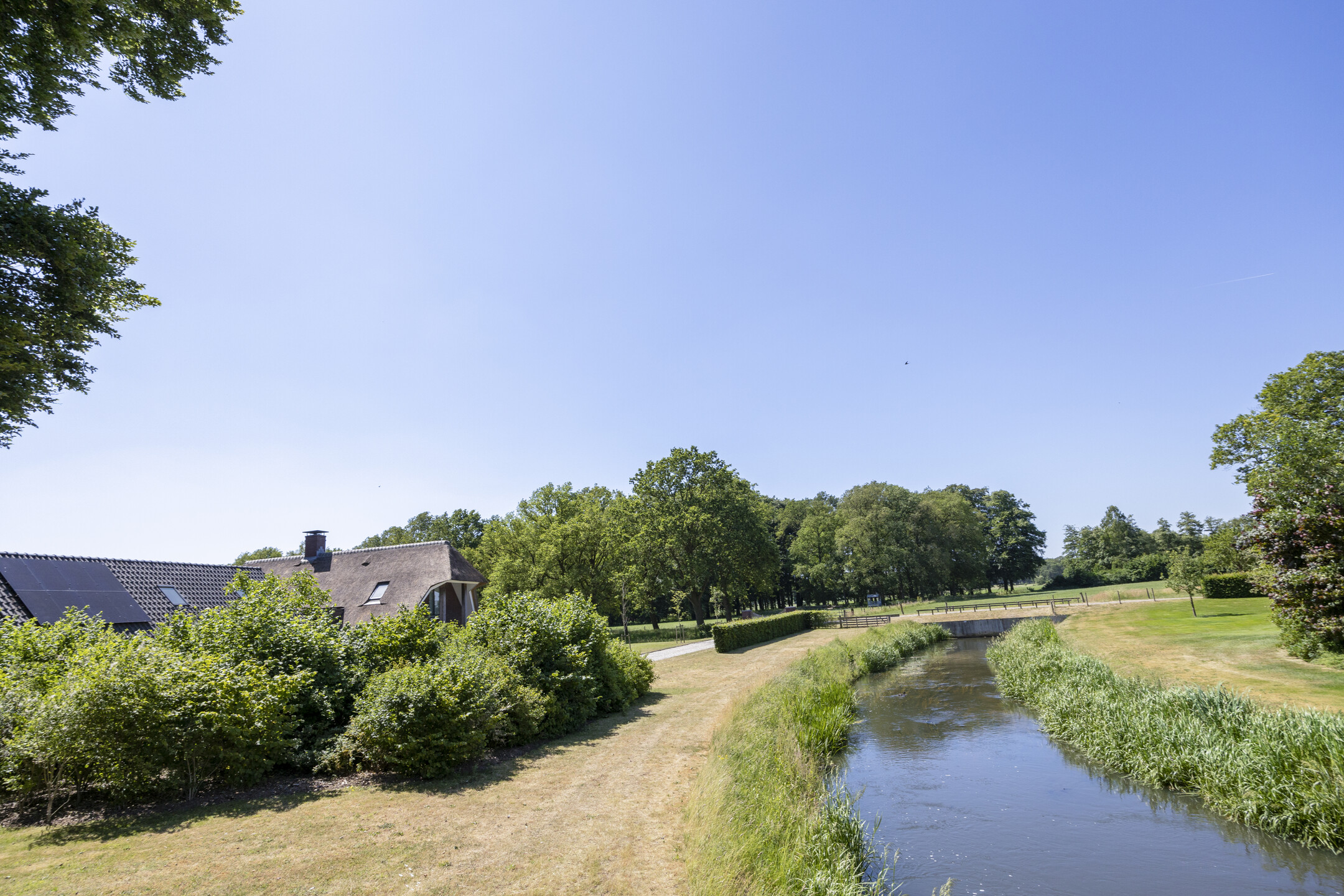 Na een lang leven – eeuwenlang – werd in 2011 deze fraaie hoeve omgebouwd tot een hoogwaardig afgewerkt en optimaal verduurzaamd woonhuis. Omdat de agrarische bestemming eraf ging, werd ook landschappelijk de omgeving anders ingevuld. Zo besloot men destijds om de historische gracht in ere te herstellen en weer rondom het huis te leiden.