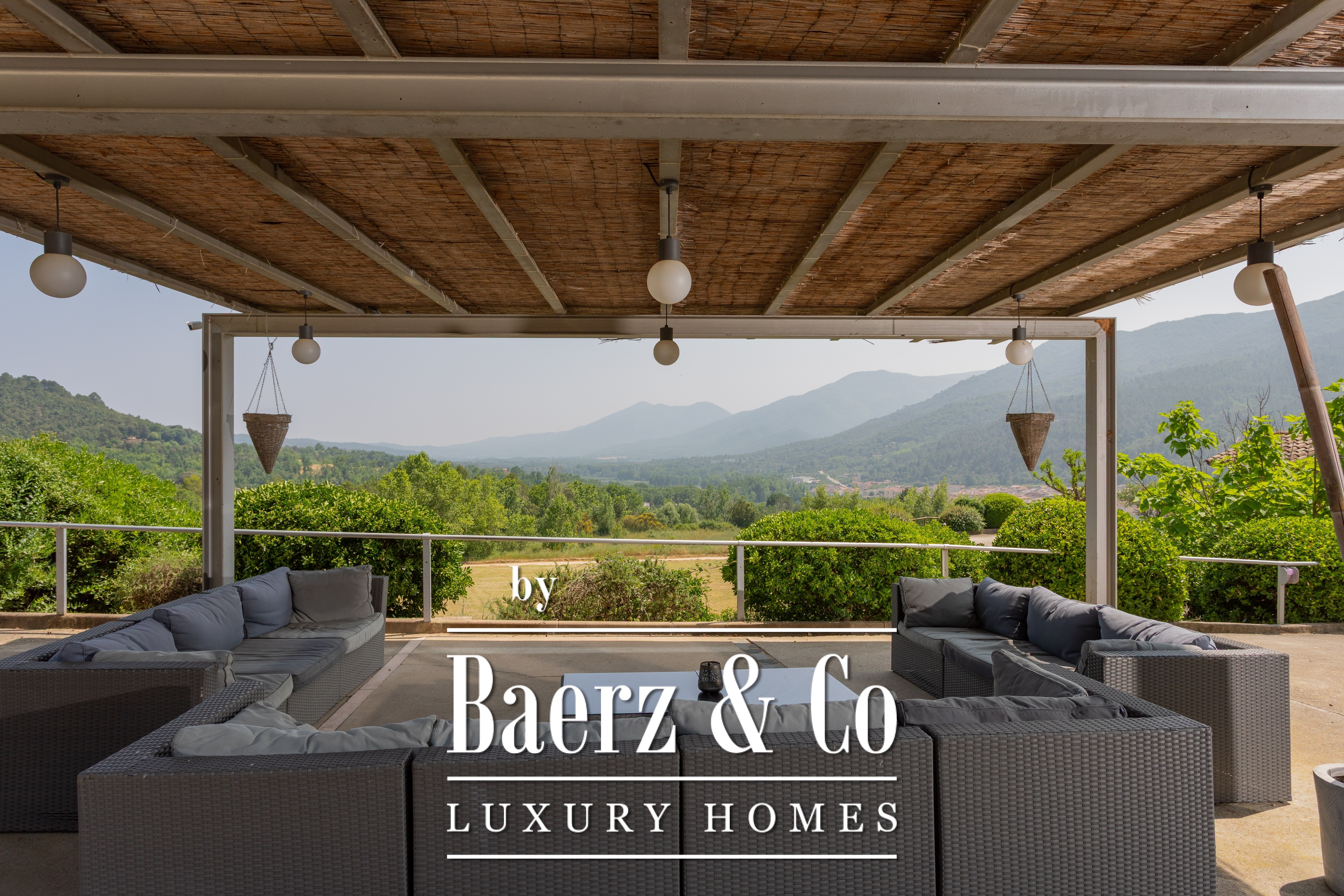 Masia te koop in Amer biedt een zeldzame kans om een authentiek stuk Catalaanse geschiedenis te verwerven. Deze indrukwekkende masia uit 1720 is met grote zorg gerestaureerd en ligt op een privélandgoed van 20.245 m², verheven boven de Amer-vallei met een weids uitzicht op La Selva en de omliggende bergen. De sfeer wordt bepaald door natuursteen, licht en ruimte, terwijl er reeds een zorgvuldig uitgewerkt hospitalityconcept operationeel is, waardoor zowel een gerieflijke levensstijl als bedrijfsmatige continuïteit is gegarandeerd. De hoofdwoning beschikt over vijf stijlvolle slaapkamers en zes badkamers, verfijnde leefruimtes en een professionele keuken. Hedendaags comfort en historisch erfgoed gaan moeiteloos samen dankzij airconditioning, verwarming en snel Wi-Fi in het gehele pand. Een wellnesssuite met jacuzzi en aparte relaxzones biedt extra ontspanning, aangevuld met diverse terrassen en een groot verlicht zwembad dat naadloos overgaat in de fraai aangelegde tuinen.