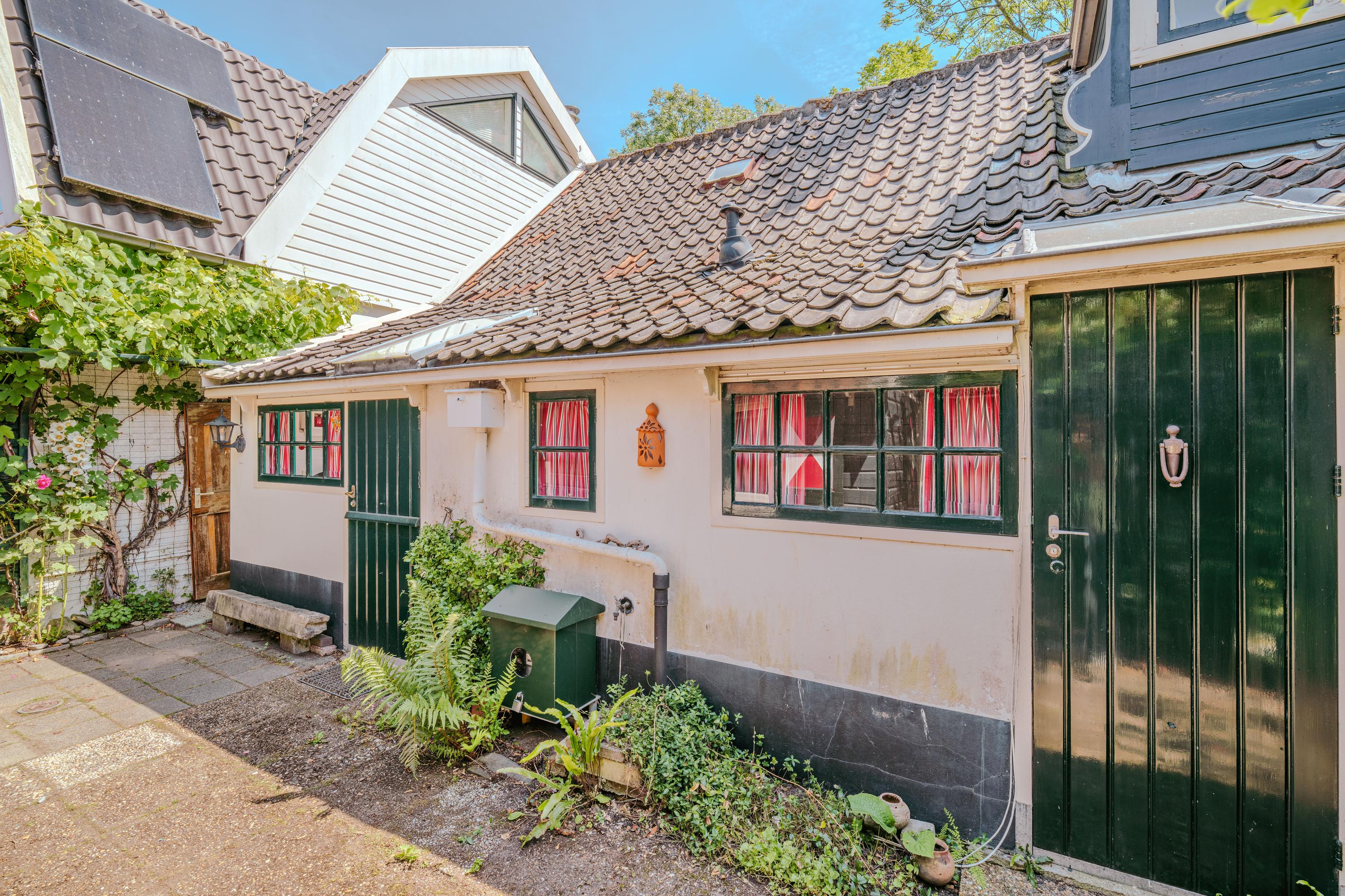 Deze authentieke woning biedt een unieke kans voor wie op zoek is naar een karakteristiek huis op een bijzondere locatie, dat geheel naar eigen wens kan worden gerenoveerd. Aan de Amsteldijk ligt de woning iets lager dan de weg en deels verscholen tussen het groen. Via een trap daalt u af vanaf de dijk naar de voortuin – een groene plek die rust en privacy biedt. Aan de rechterzijde van de woning loopt een smal pad langs de zijkant naar de voordeur, die subtiel is weggewerkt in de gevel.