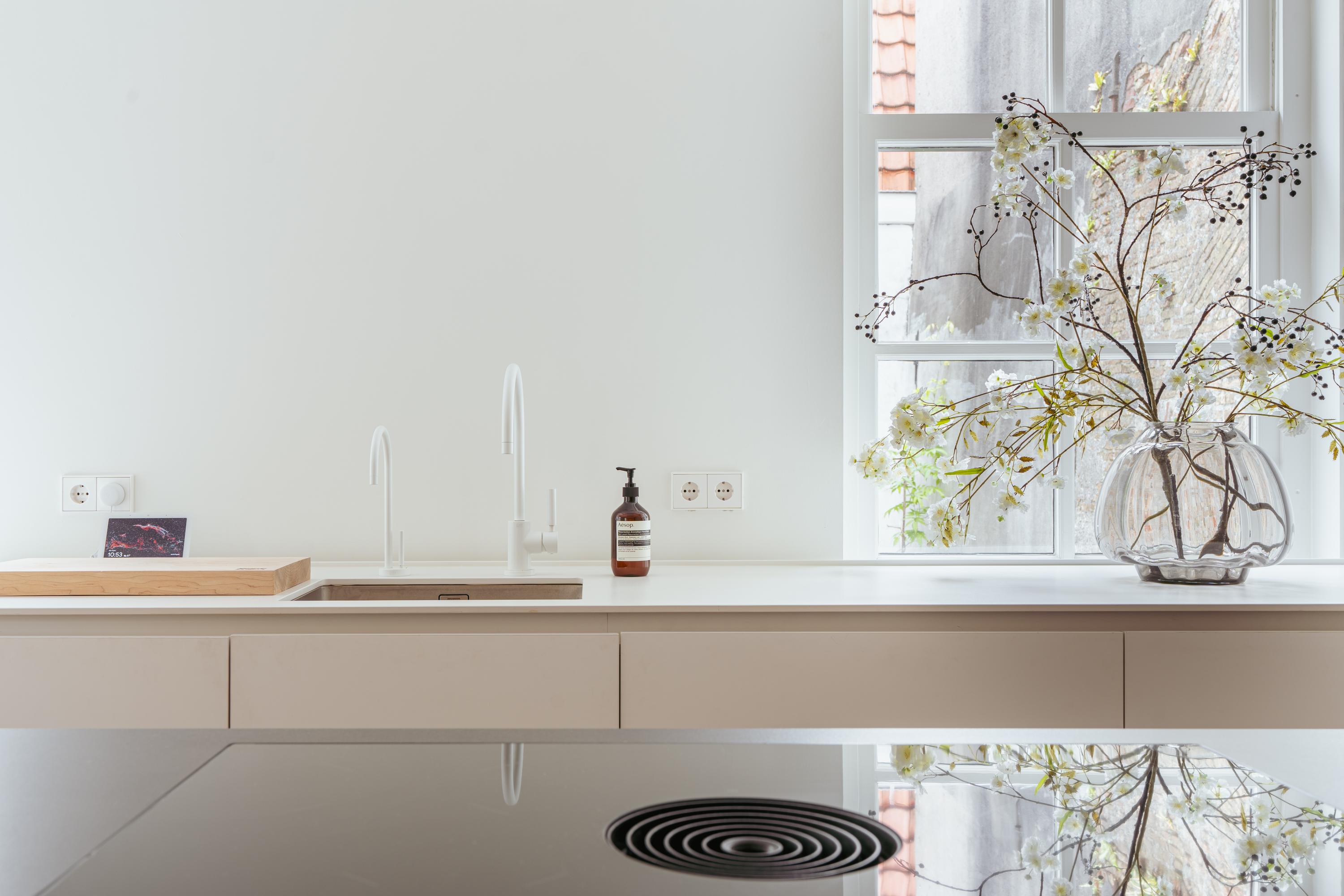 De tweede verdieping van het pand is volledig ingericht als royale leefruimte, met een prachtige balans tussen comfort, luxe en karakter. Aan de achterzijde bevindt zich de modern uitgevoerde woonkeuken, waar koken en samenkomen centraal staan. De keuken is uitgerust met hoogwaardige inbouwapparatuur: een koelkast, vriezer, combi-oven en magnetron, een spoelbak met Quooker-kraan en een strakke inductiekookplaat met geïntegreerd afzuigsysteem. De vele opbergmogelijkheden zorgen voor een opgeruimde, minimalistische uitstraling. Blikvanger is het centraal geplaatste kookeiland met een gezellig bargedeelte. Aan de voorzijde van de verdieping vindt u het zitgedeelte, waar de grote raampartijen zorgen voor een weids uitzicht over de gracht. De overvloed aan daglicht in combinatie met de warme houten vloer en de rustige afwerking creëren een aangename, uitnodigende sfeer. Via openslaande deuren bereikt u de hal waar zich een separaat toilet bevindt. Vanuit deze hal leidt een vaste trap naar de derde verdieping.