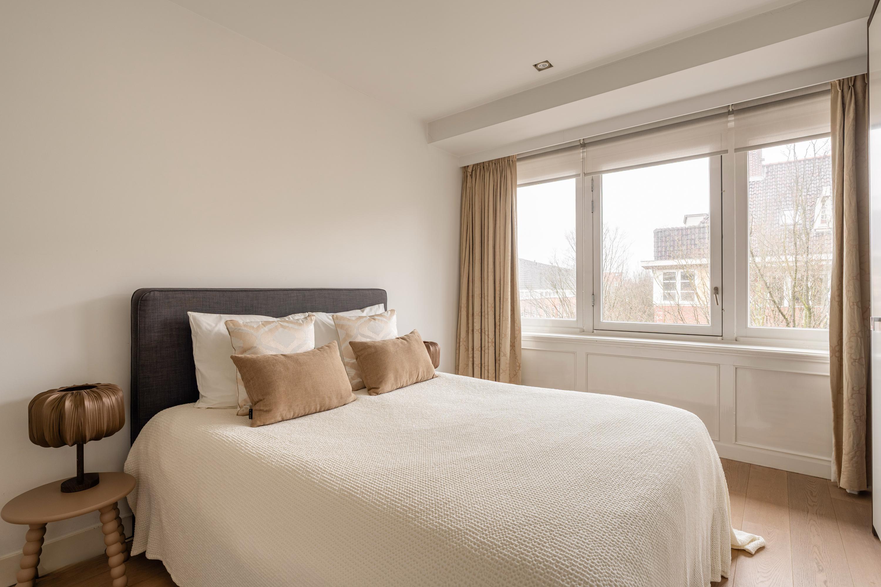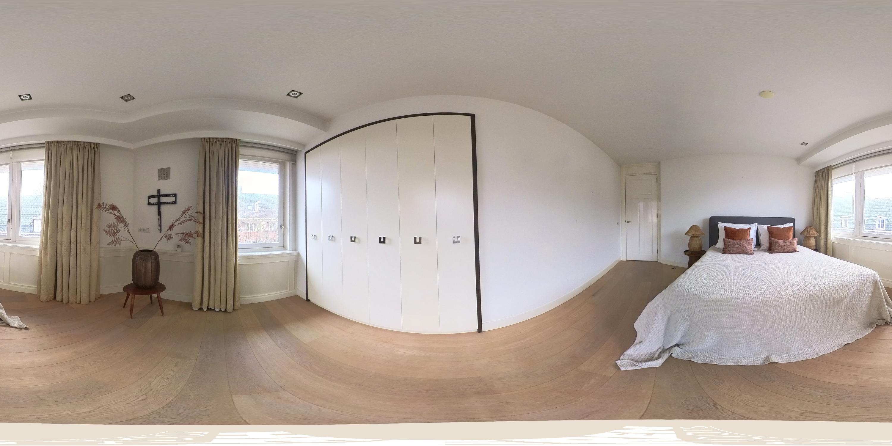 Via de trap in de woonkamer bereikt u de derde en tevens bovenste verdieping van het appartement. Hier bevinden zich twee goed bemeten slaapkamers, beide voorzien van grote raampartijen en maatwerk inbouwkasten. De master bedroom beschikt bovendien over een stijlvol geïntegreerde televisie in de kastenwand. De moderne badkamer is uitgerust met een ruim ligbad, een dubbele wastafel met meubel en een toilet. Tevens bevinden zich hier de aansluitingen voor wasmachine en droger.