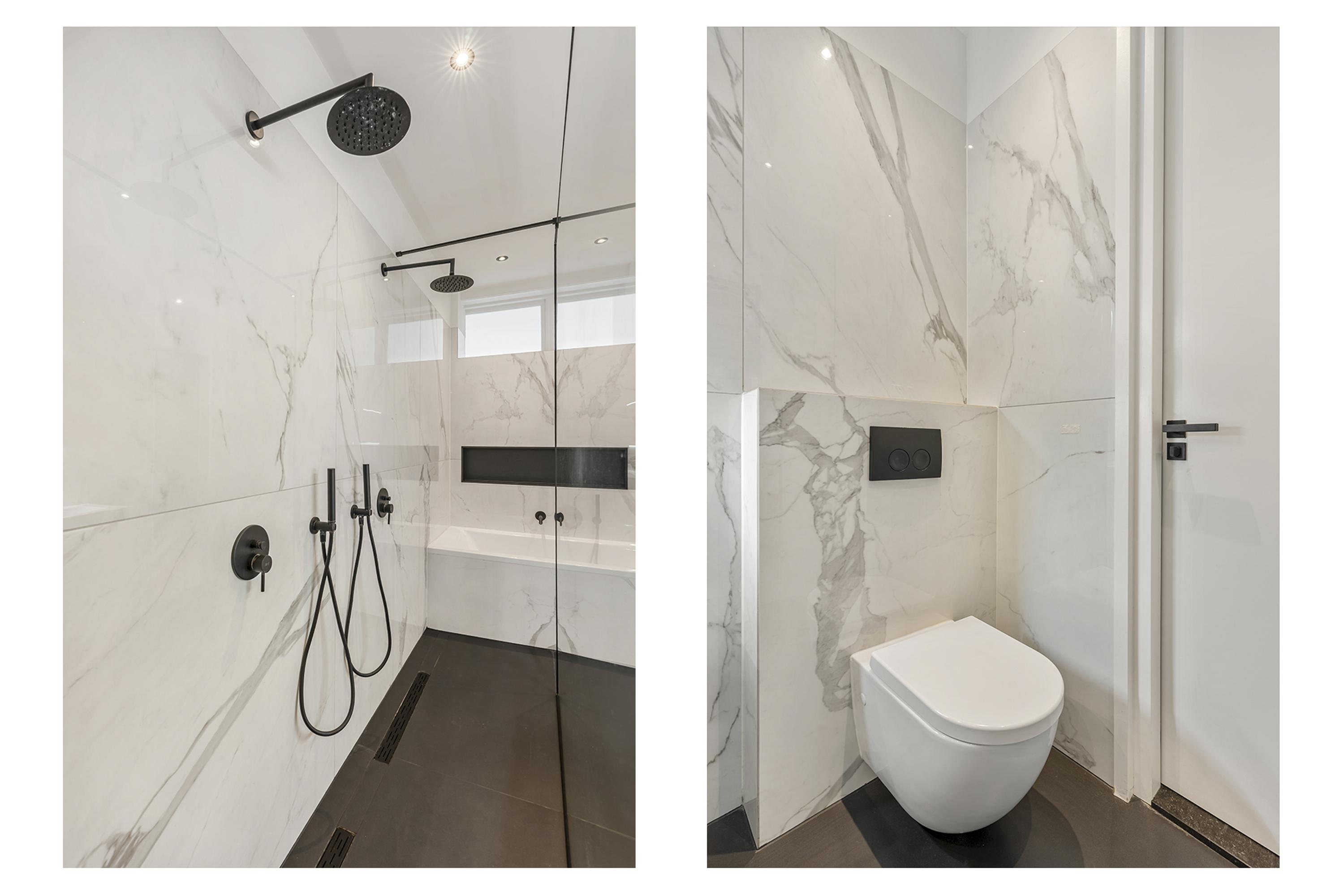 Eigen voordeur, middels tochtportaal toegang tot de royale hal van het huis. Bijzonder lichte doorzon woonkamer met aan de voorzijde en speelse erker. Aan de achterzijde de open keuken voorzien van alle gemakken (koelkast, vriezer, voetwasser, oven, magnetron) en toegang tot het terras dat direct aan prachtig onderhouden zichttuin is gelegen. Vanuit de hal zijn beide ruime slaapkamers bereikbaar. De masterbedroom is aan de achterzijde gelegen, heeft toegang tot een walk-in closet en een riante badkamer (ook bereikbaar vanaf de hal) met dubbele regendouche, ligbad, dubbele wastafel en toilet. Het gastentoilet is separaat bereikbaar vanaf de hal. Vanaf de hal is er tevens toegang tot de wasmachinekast en naastelegen bergkast. In de onderbouw van het complex beschikt het appartement nog over een ruime berging.