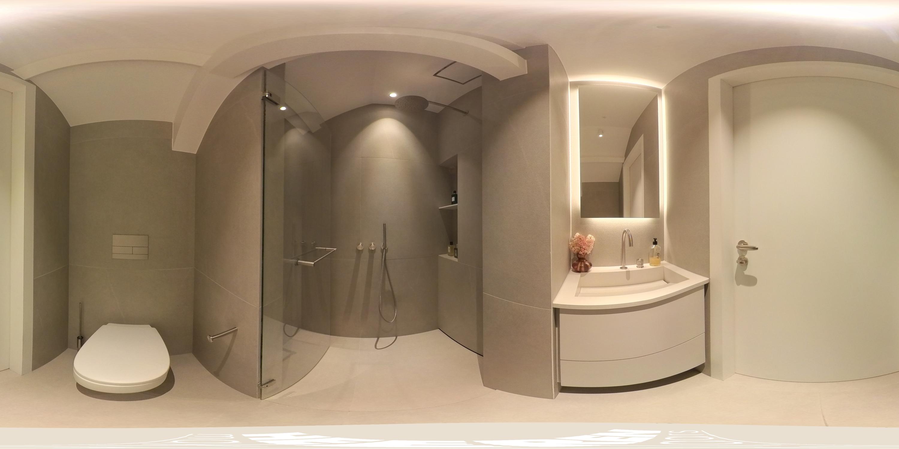 Aan de voorzijde van het appartement bevindt zich de tweede slaapkamer voorzien van een inbouwkast. Momenteel is deze ingericht als kinderkamer maar dit is een volwaardige slaapkamer met plek voor een tweepersoonsbed. Tegenover deze kamer ligt de tweede badkamer die net zoals de hoofdbadkamer met dezelfde kwaliteit en hoogwaardig is afgewerkt en uitgerust met een inloopdouche, wastafel en toilet.