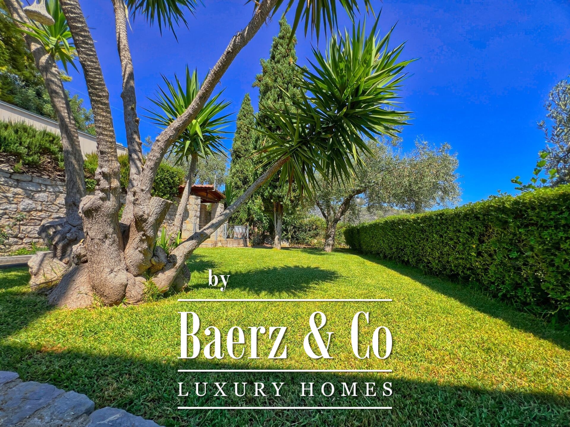 De aangelegde tuin is omheind met natuurstenen muren en beschikt over een zwembad van 70 m² met weids uitzicht, cipressen, olijfbomen en zorgvuldig ontworpen buitenruimtes. Extra voorzieningen zijn onder meer een stenen kapel, overdekte parkeergelegenheid voor drie auto’s en energiezuinige vernieuwingen zoals nieuwe aluminium kozijnen, dubbele beglazing, een zonneboilersysteem, een modern alarmsysteem en vloerverwarming. Drie grote watertanks dragen bij aan duurzaamheid en comfort.