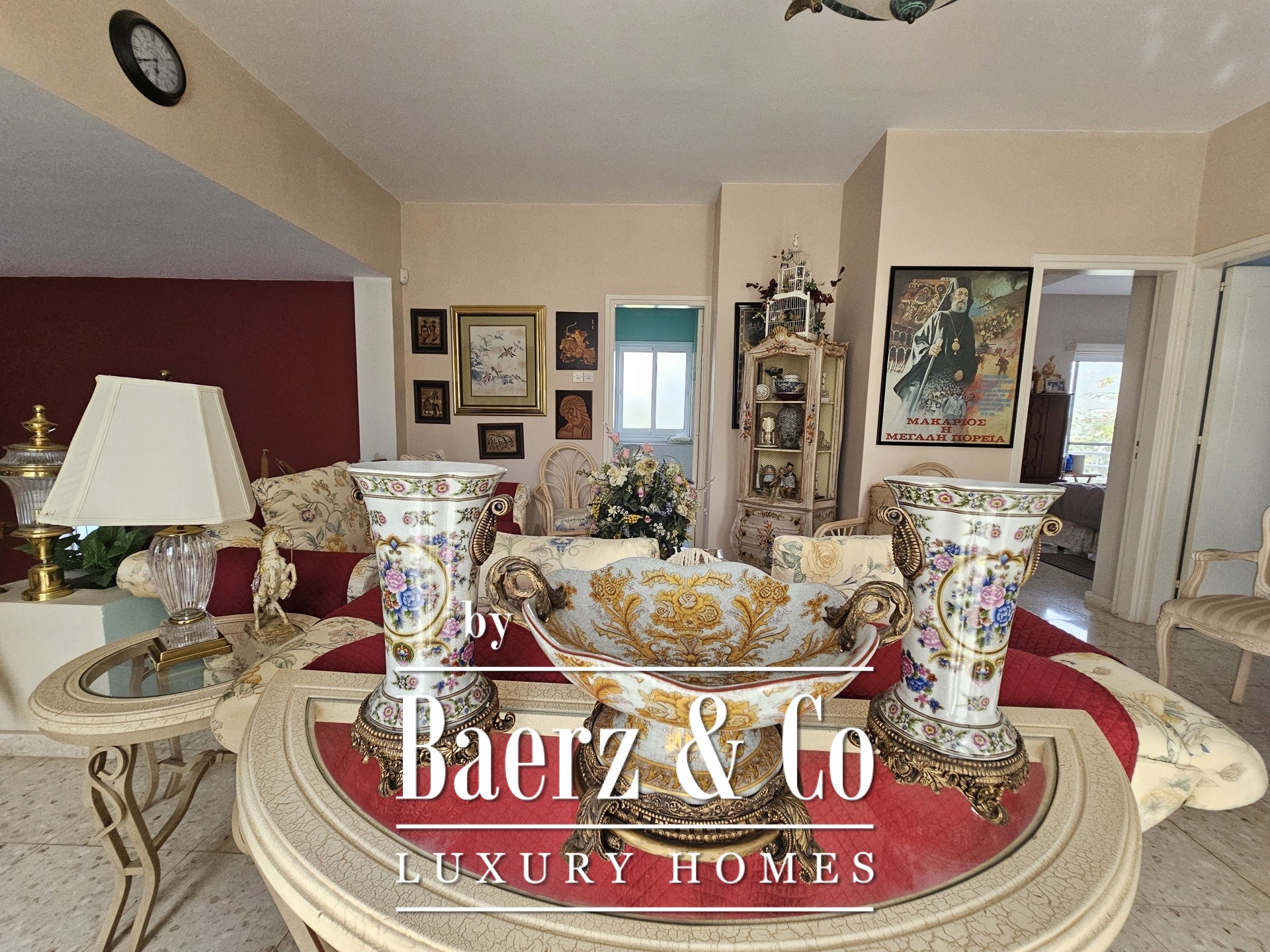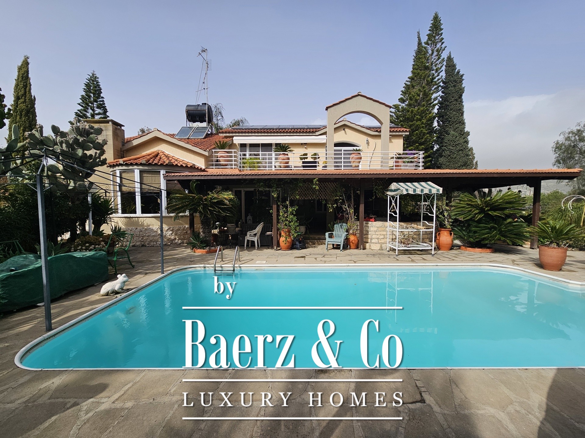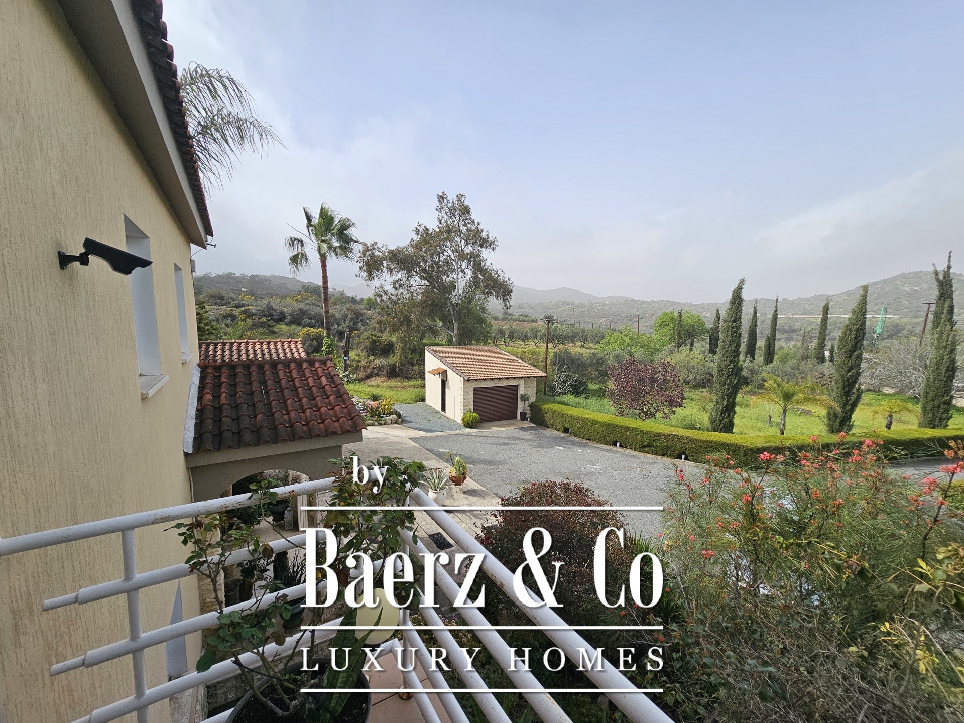 Vrijstaande villa in Asgata, Cyprus, gesitueerd op een riant perceel van 18.025 m² in een rustige, natuurlijke omgeving. De woning is verhoogd gelegen en biedt daardoor panoramisch en onbelemmerd uitzicht op de bergen. Dit neoklassieke huis kenmerkt zich door een balans tussen tijdloze proporties en verfijnde bouwkunde. De overdekte woonoppervlakte van 460 m² is verdeeld over twee verdiepingen, met zowel binnen als buiten ruimte voor privacy én gastvrijheid.