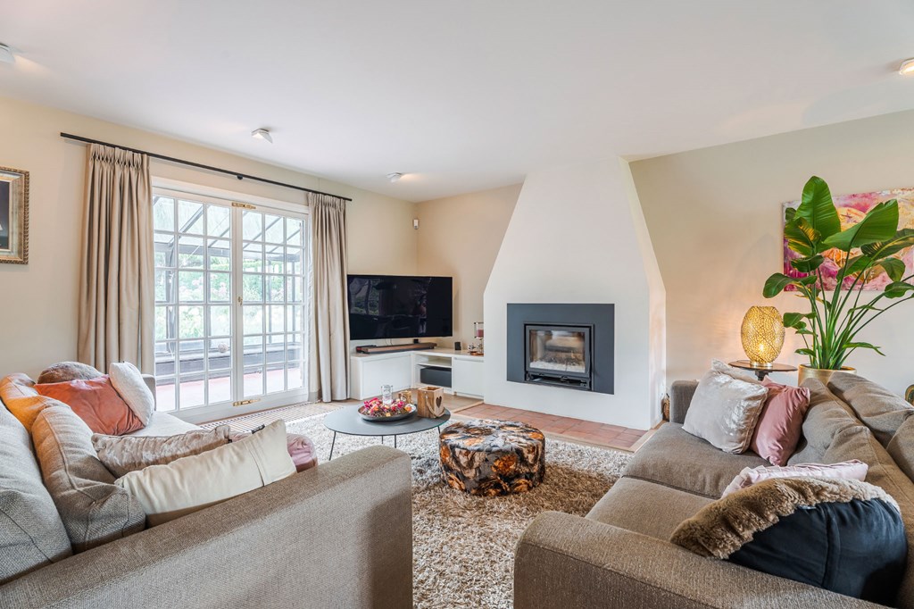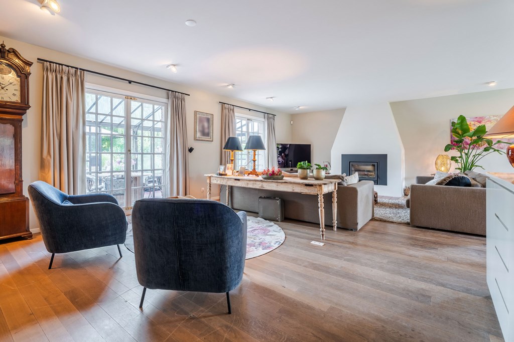 De ruim opgezette L-vormige living is voorzien van een parketvloer, een ingebouwde houtkachel en heeft een directe verbinding met de serre. Door de grote raampartijen is er veel natuurlijke daglichttoetreding in de ruimte. Vanwege het lichtinval zijn er diverse gezellige hoekjes te creëren. Aansluitend heeft u toegang tot het kloppende hart van deze woning, de leefkeuken.