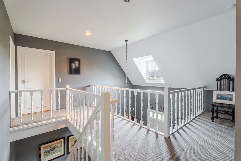 Middels de vaste trapopgang in de hal bereikt u de overloop, slaapkamers en badkamers op de verdieping.